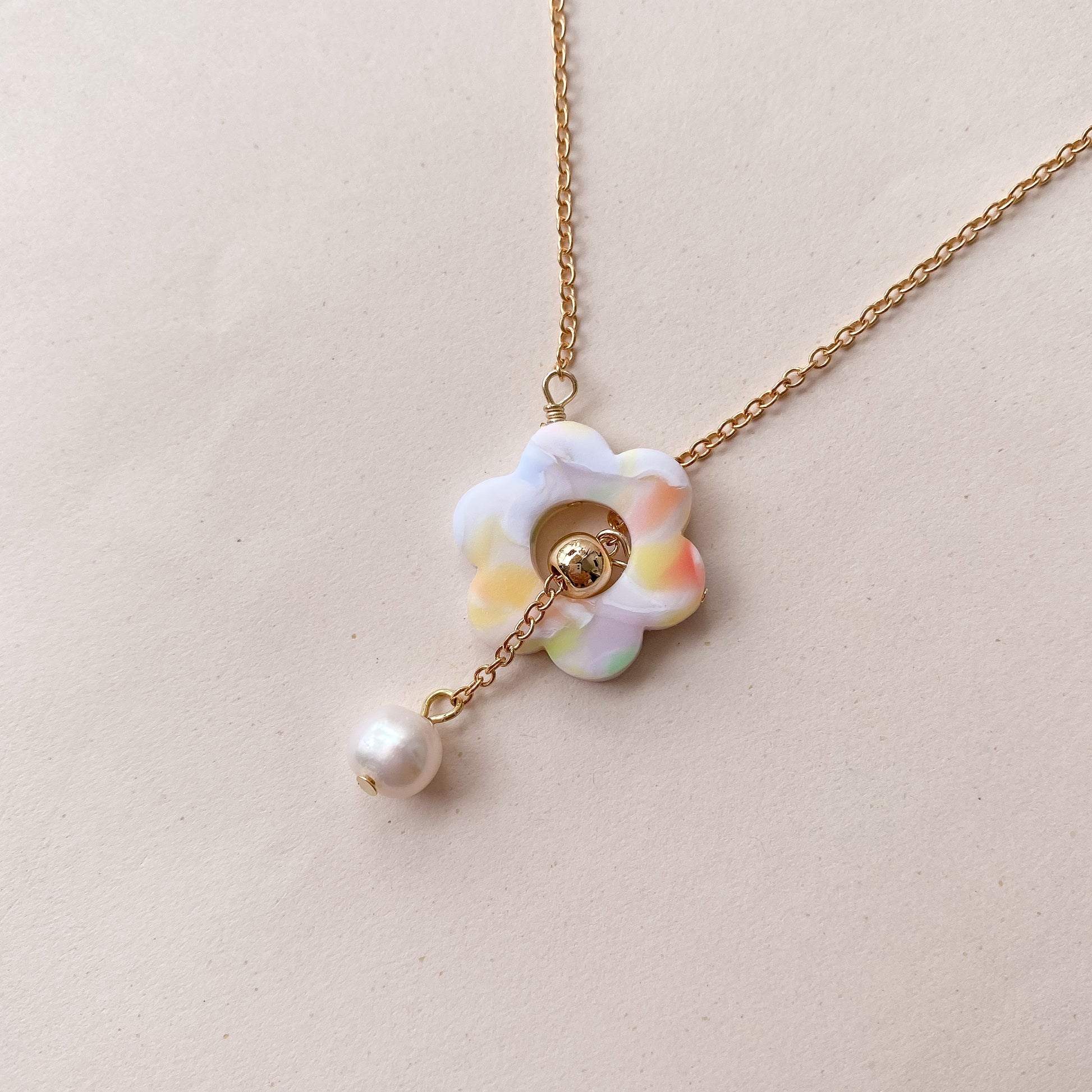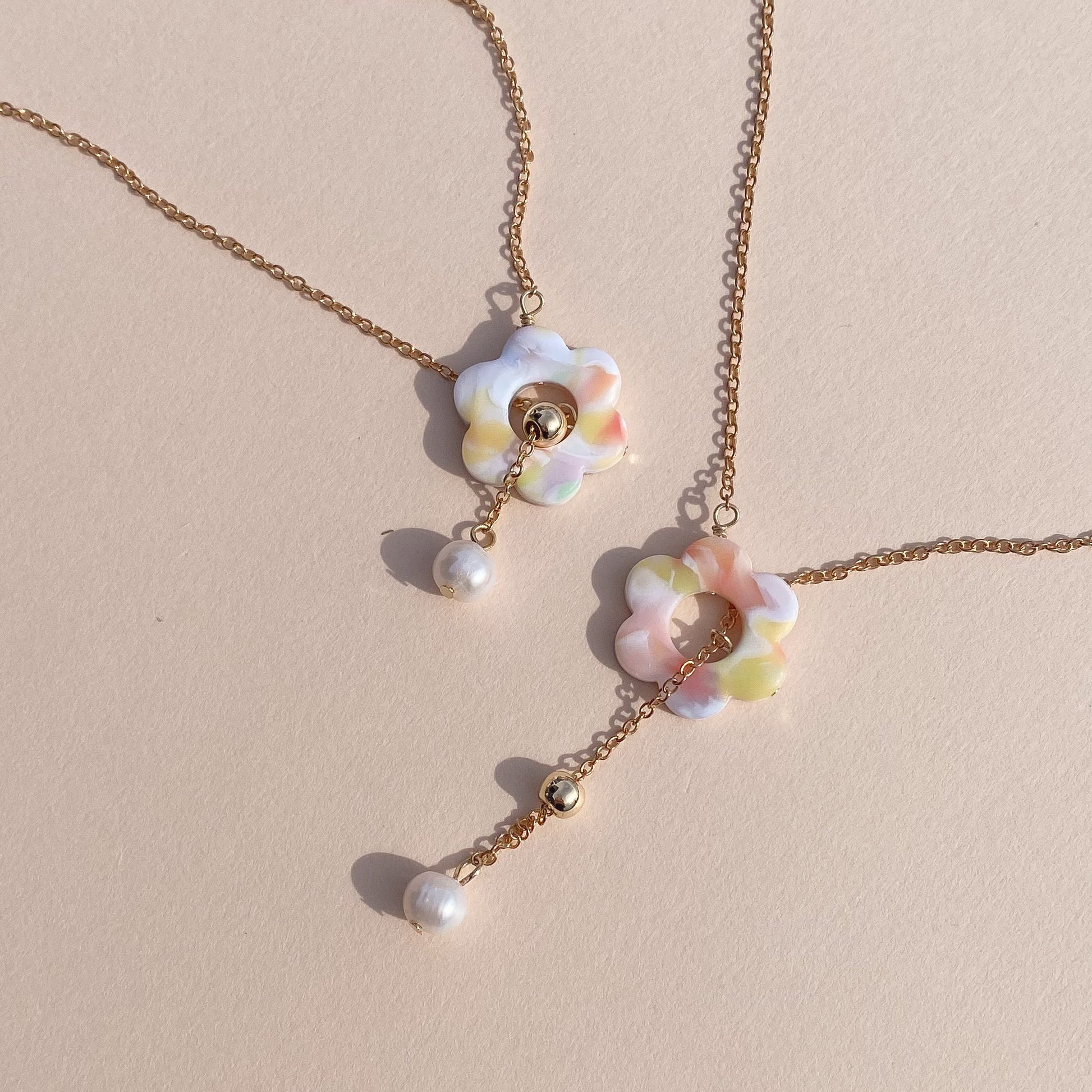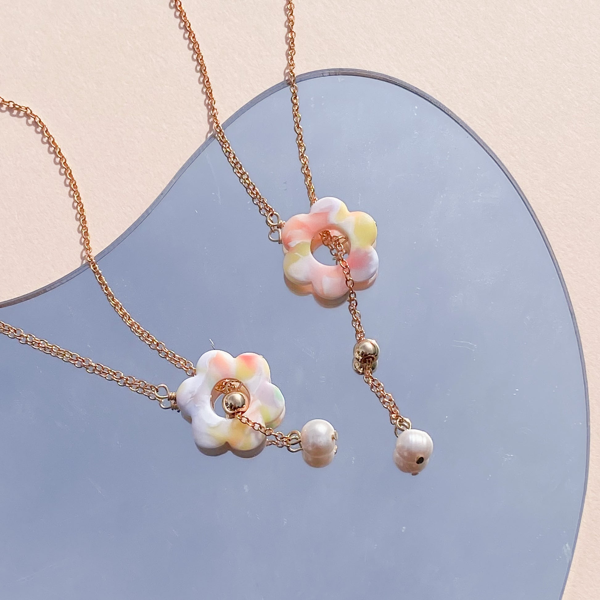 ⋆ Made from polymer clay, freshwater pearls and 14K gold plated copper chain