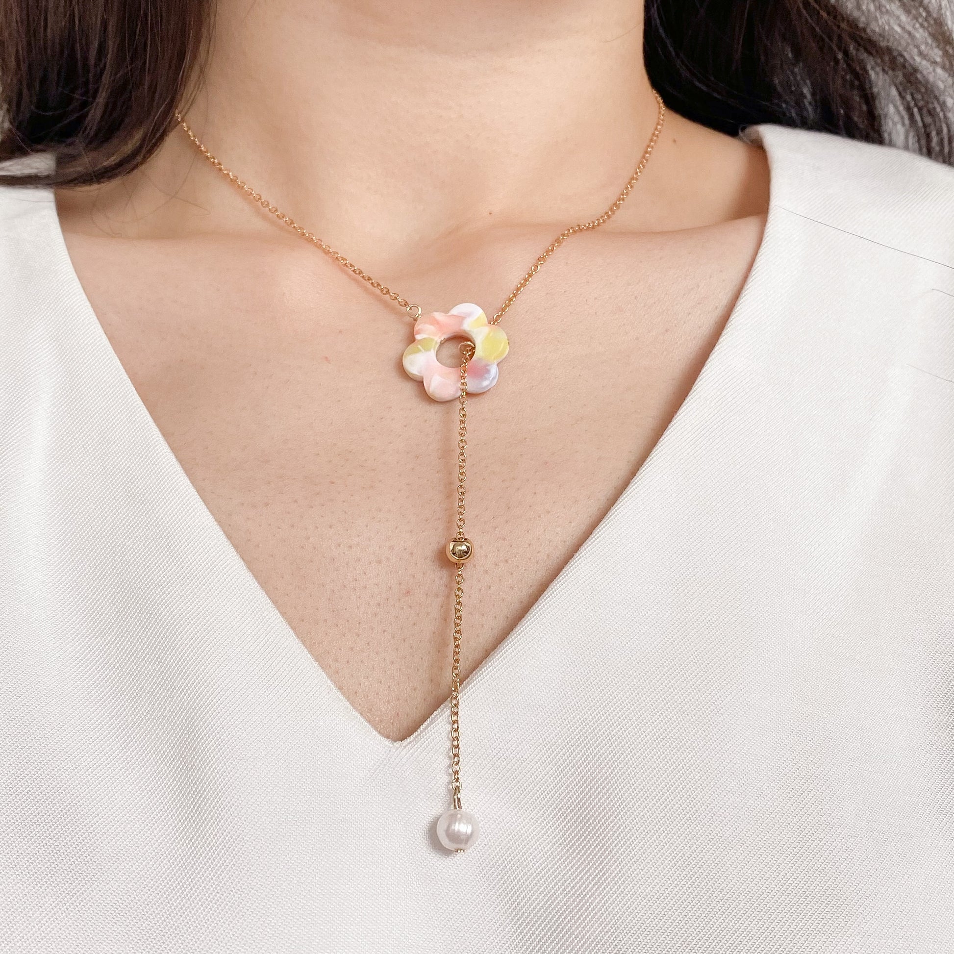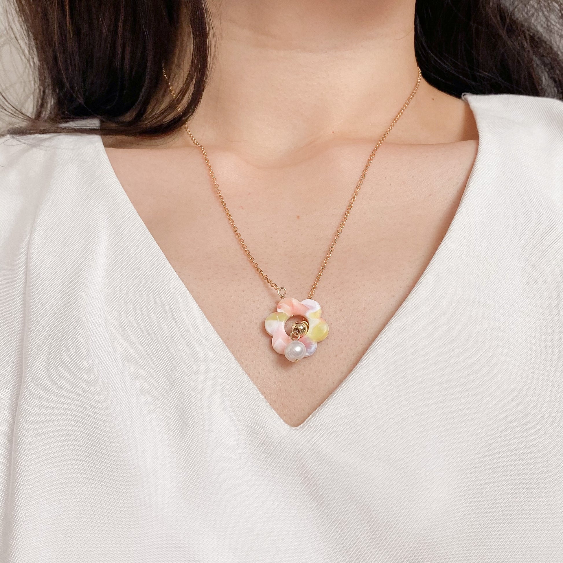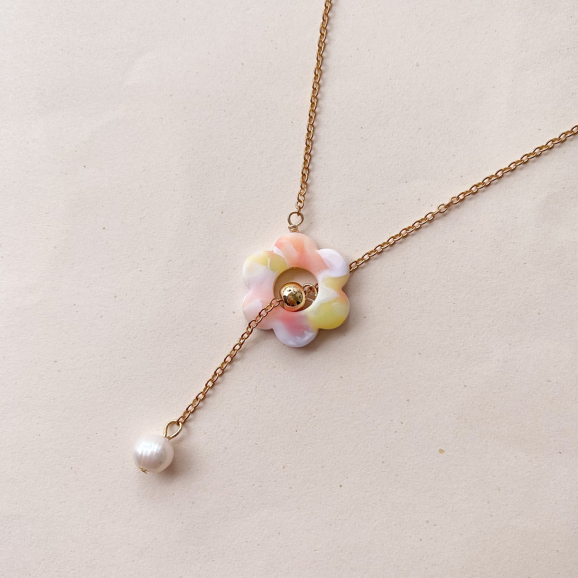⋆ Made from polymer clay, freshwater pearls and 14K gold plated copper chain
