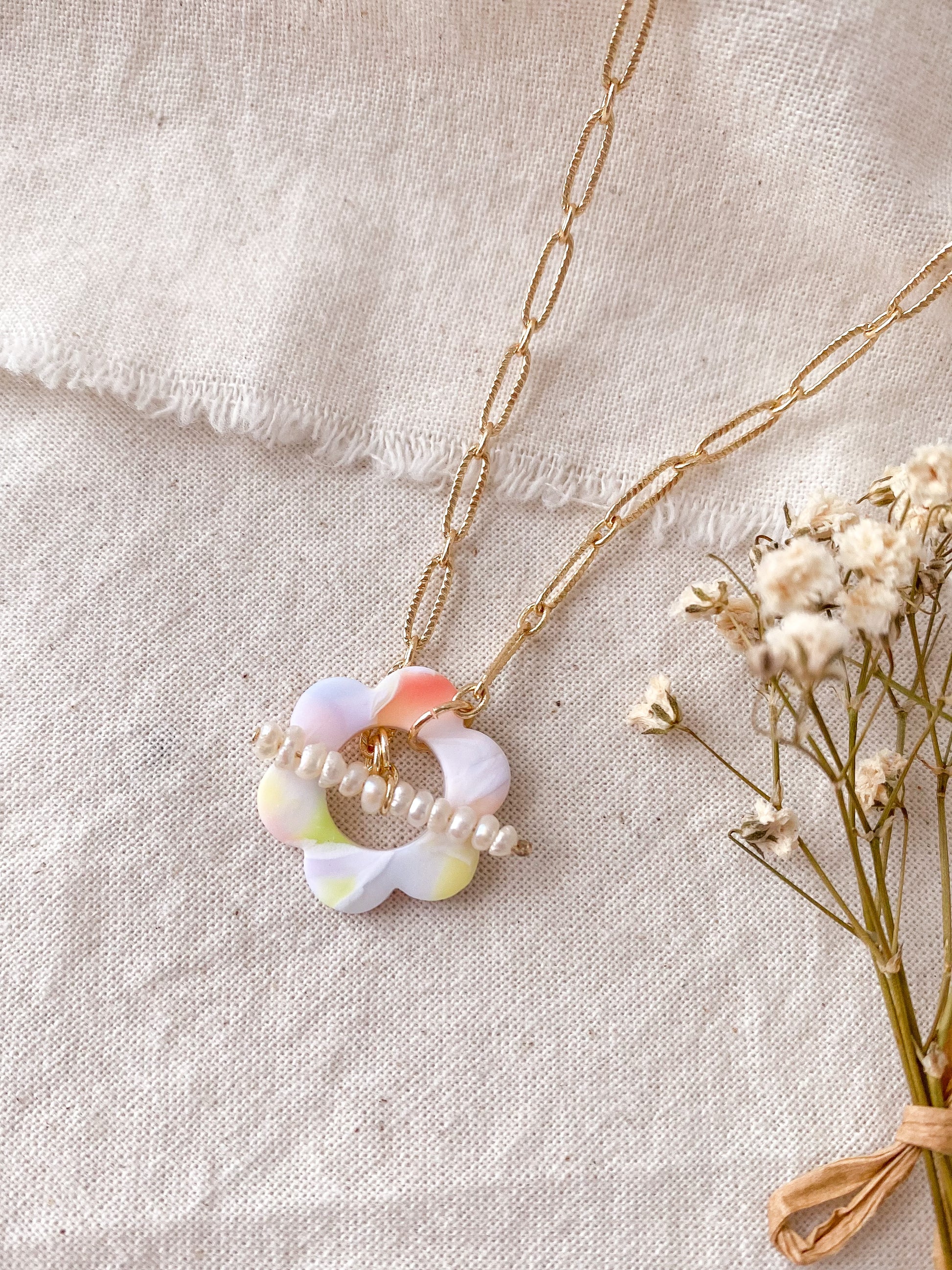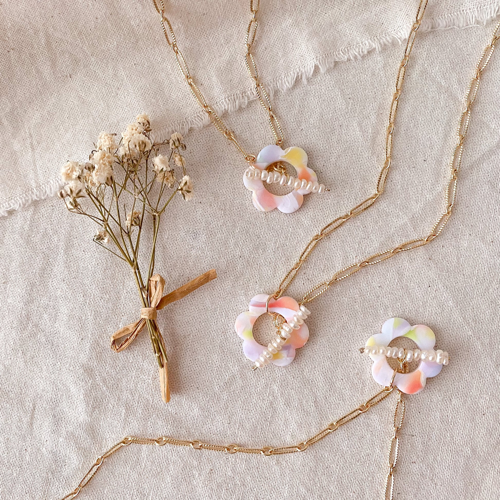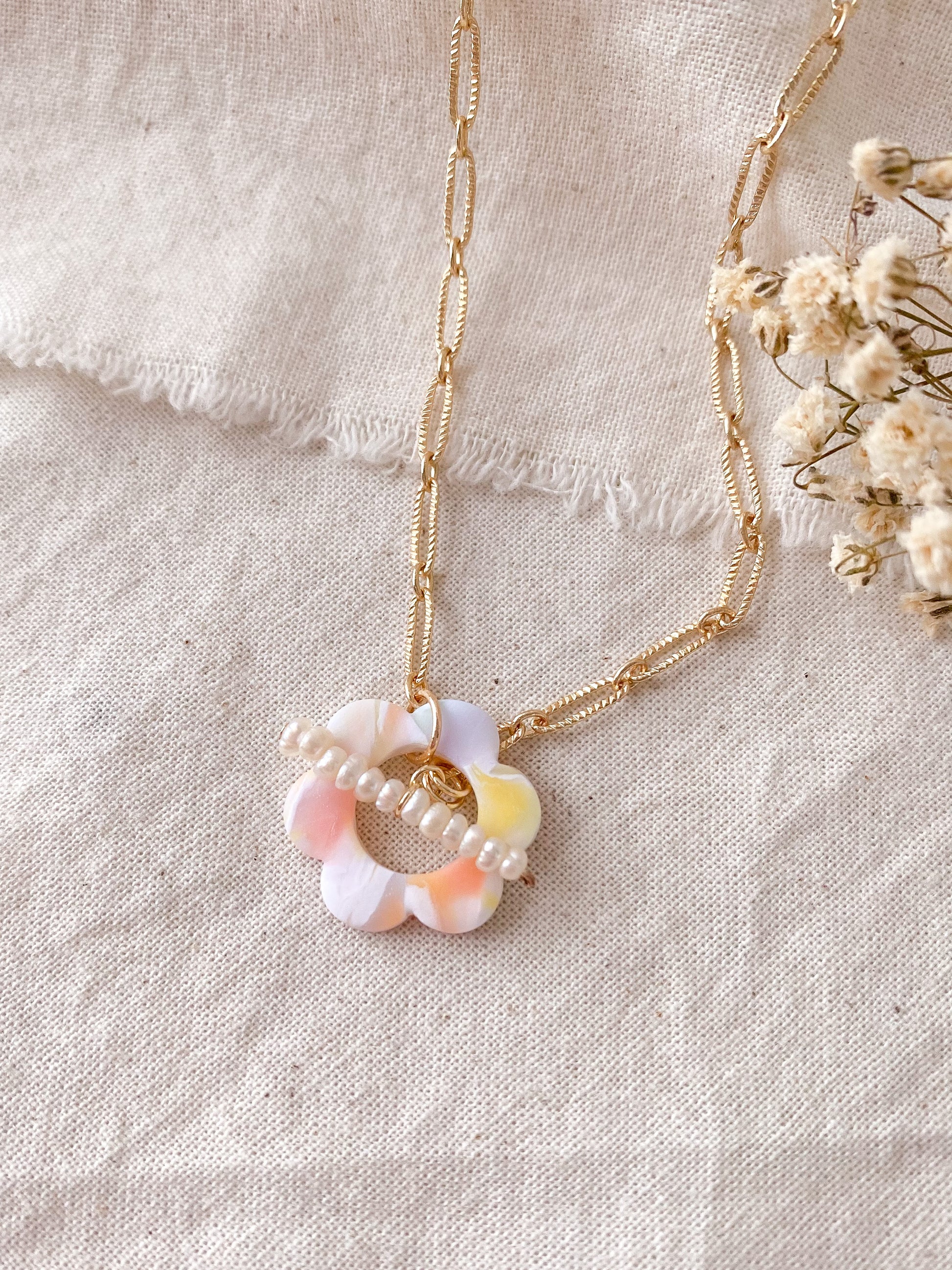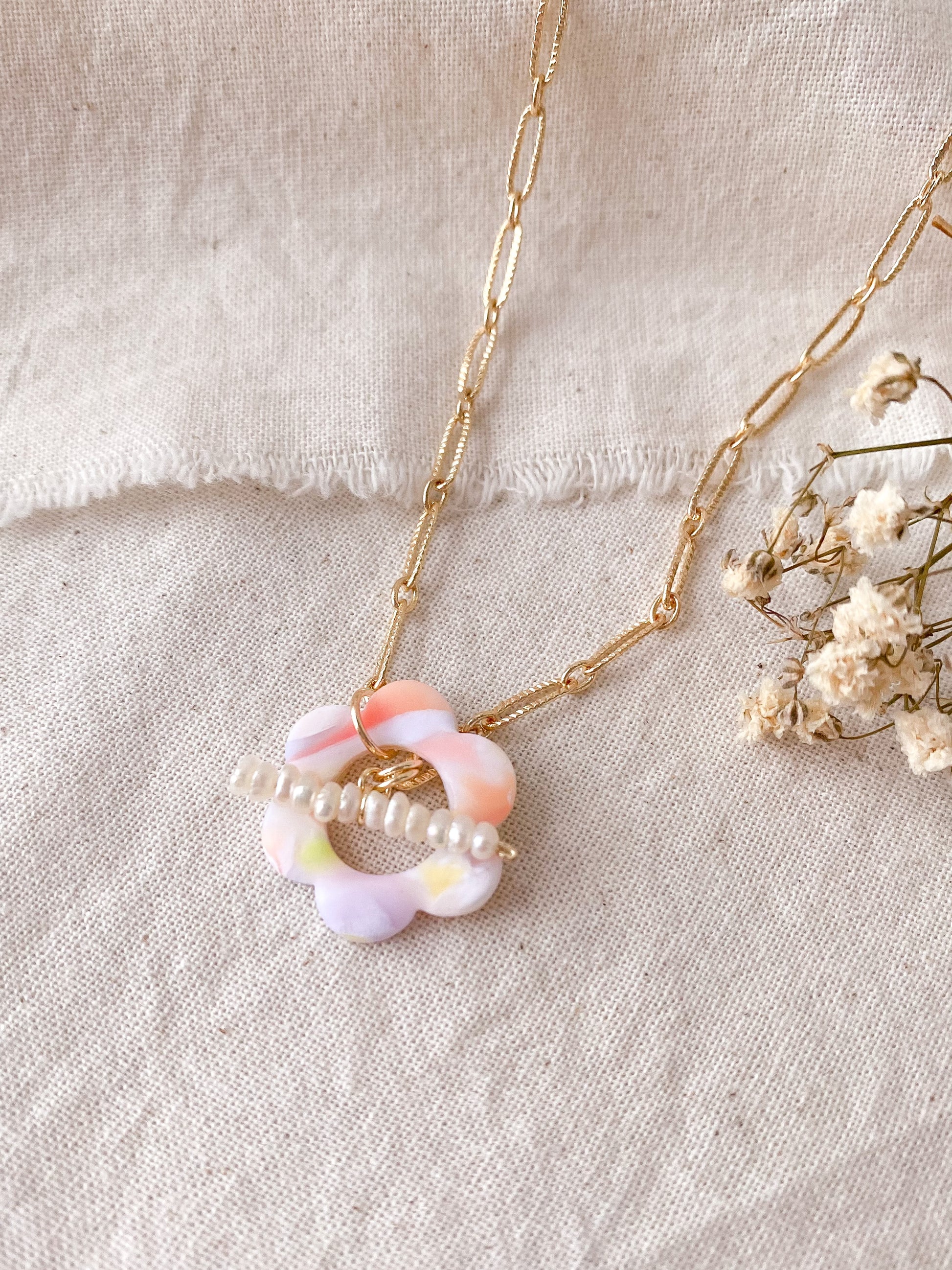⋆ Made from polymer clay, freshwater pearls and 14K gold plated copper chain