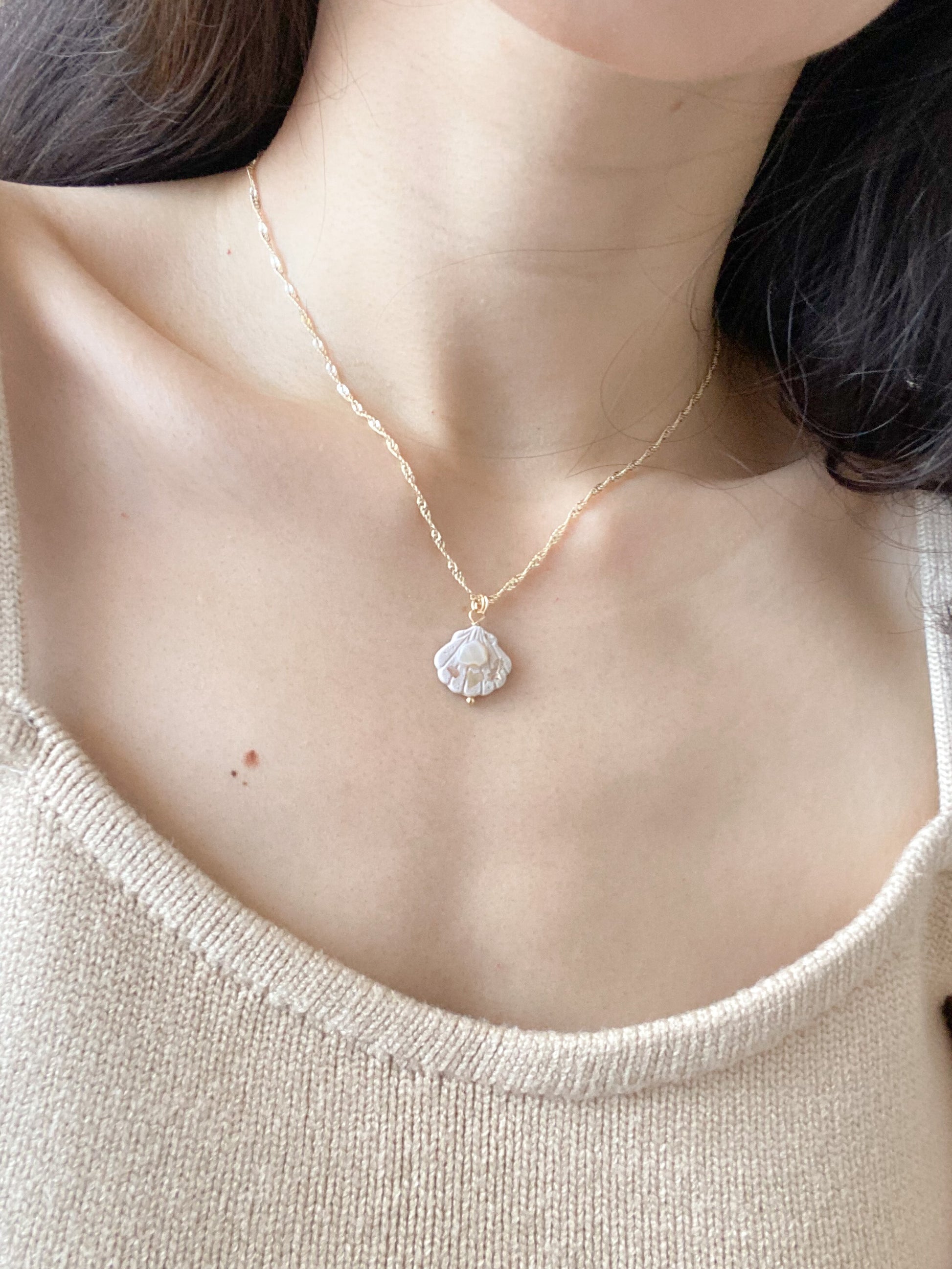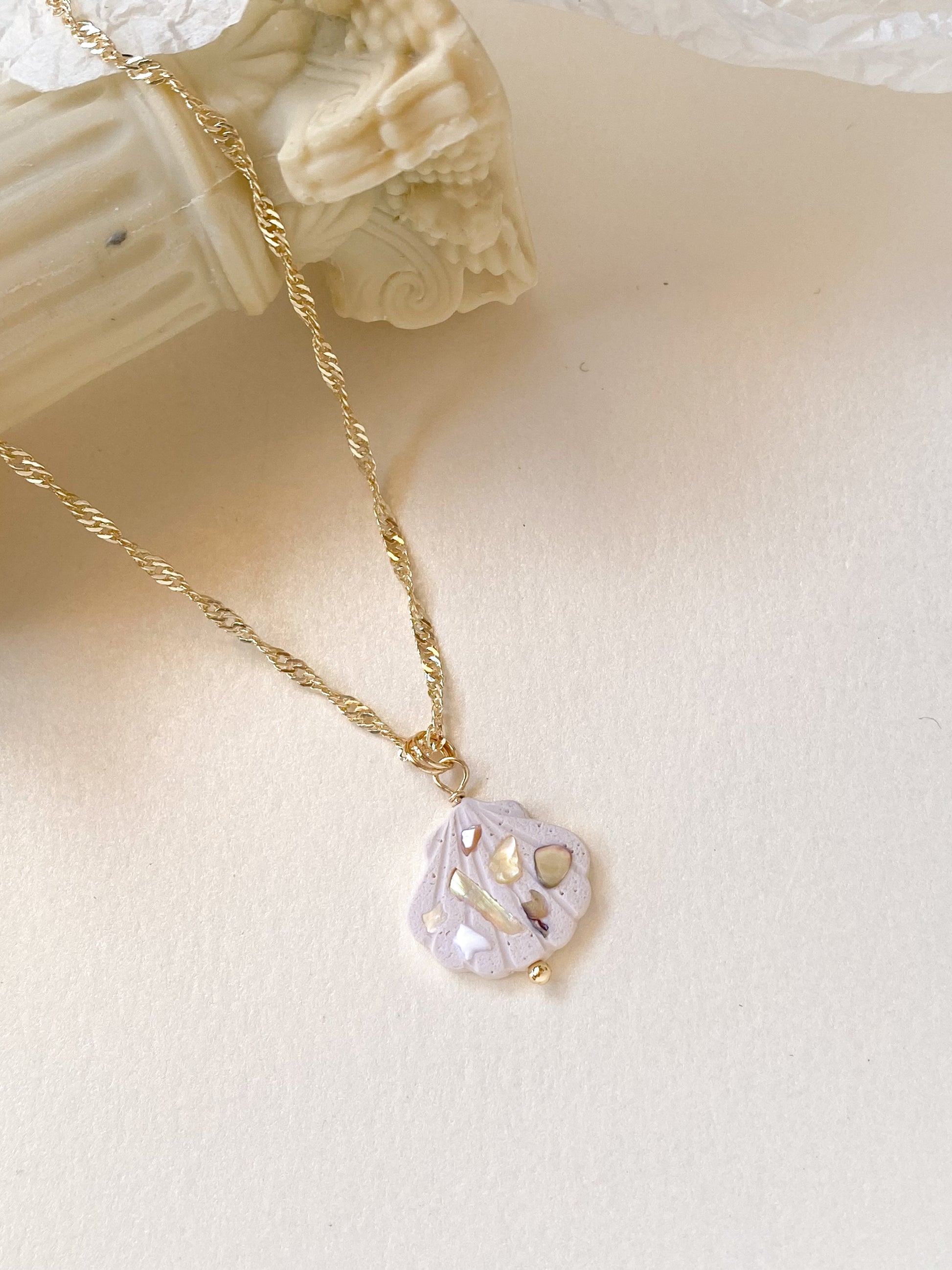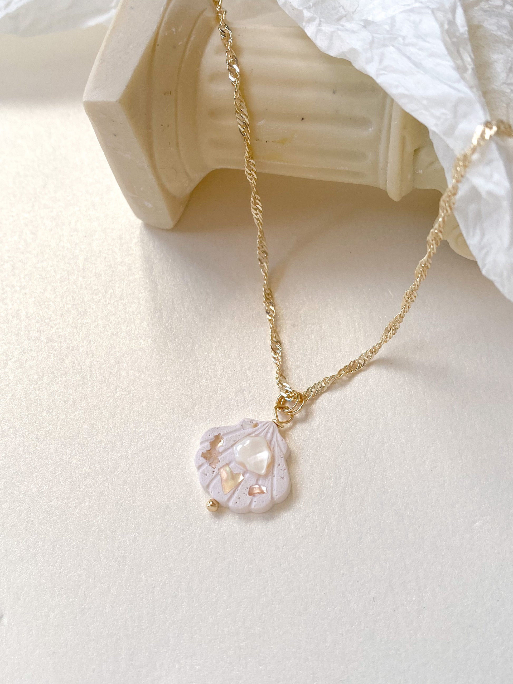 ⋆ Polymer Clay Shell Charm(1.5cm Width) & 14K gold plated Twist chain, attached to spring ring clasp