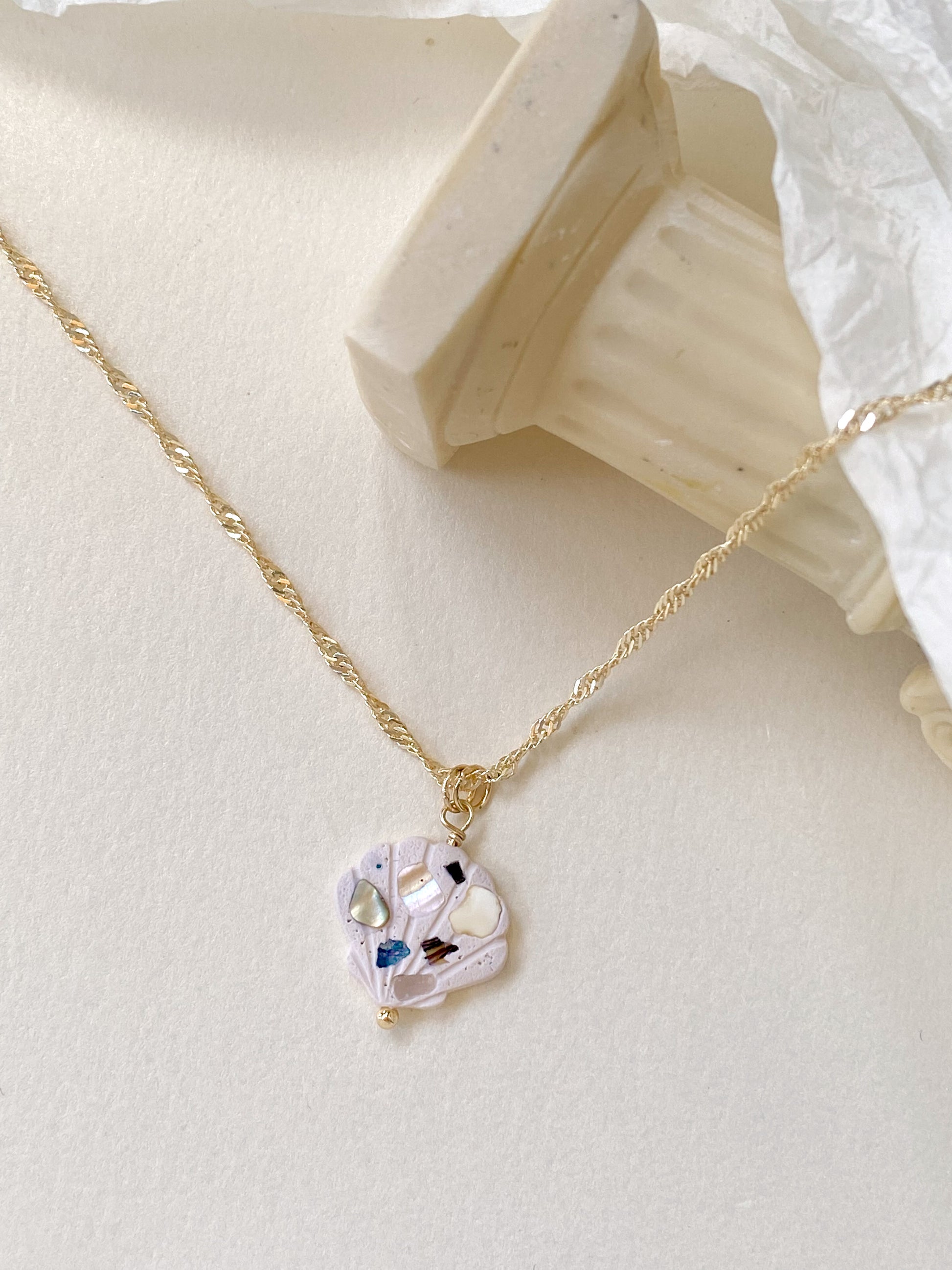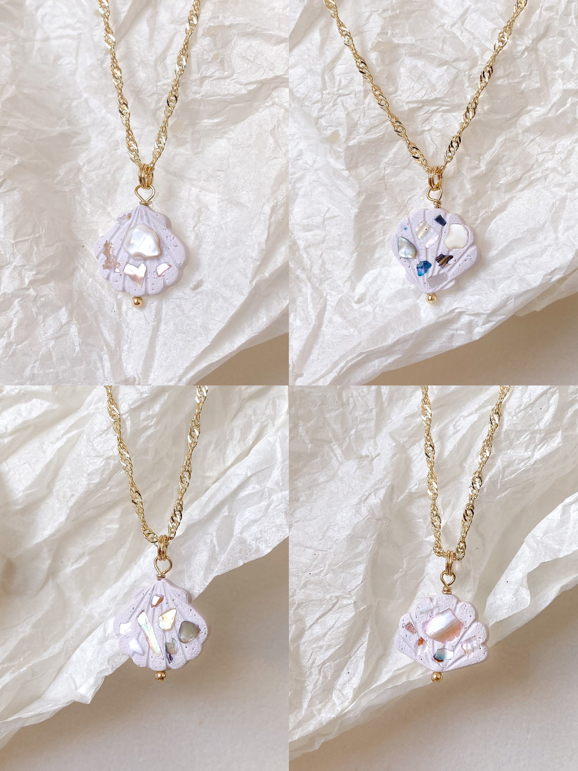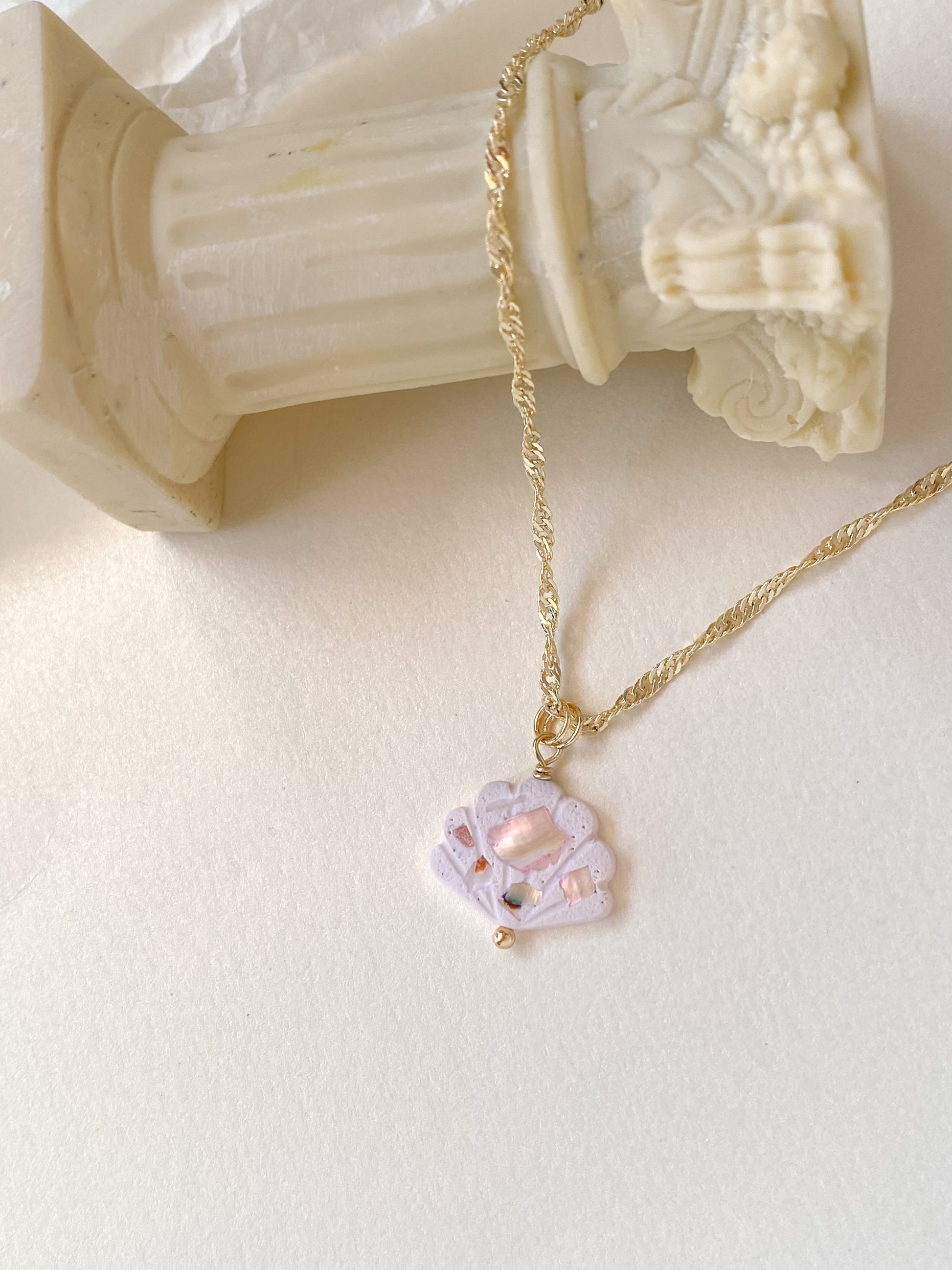 ⋆ Polymer Clay Shell Charm(1.5cm Width) & 14K gold plated Twist chain, attached to spring ring clasp
