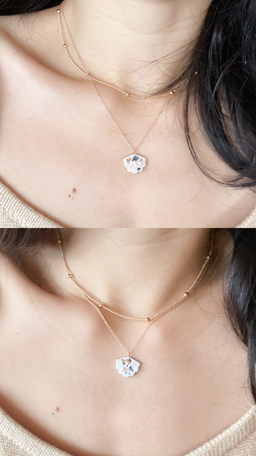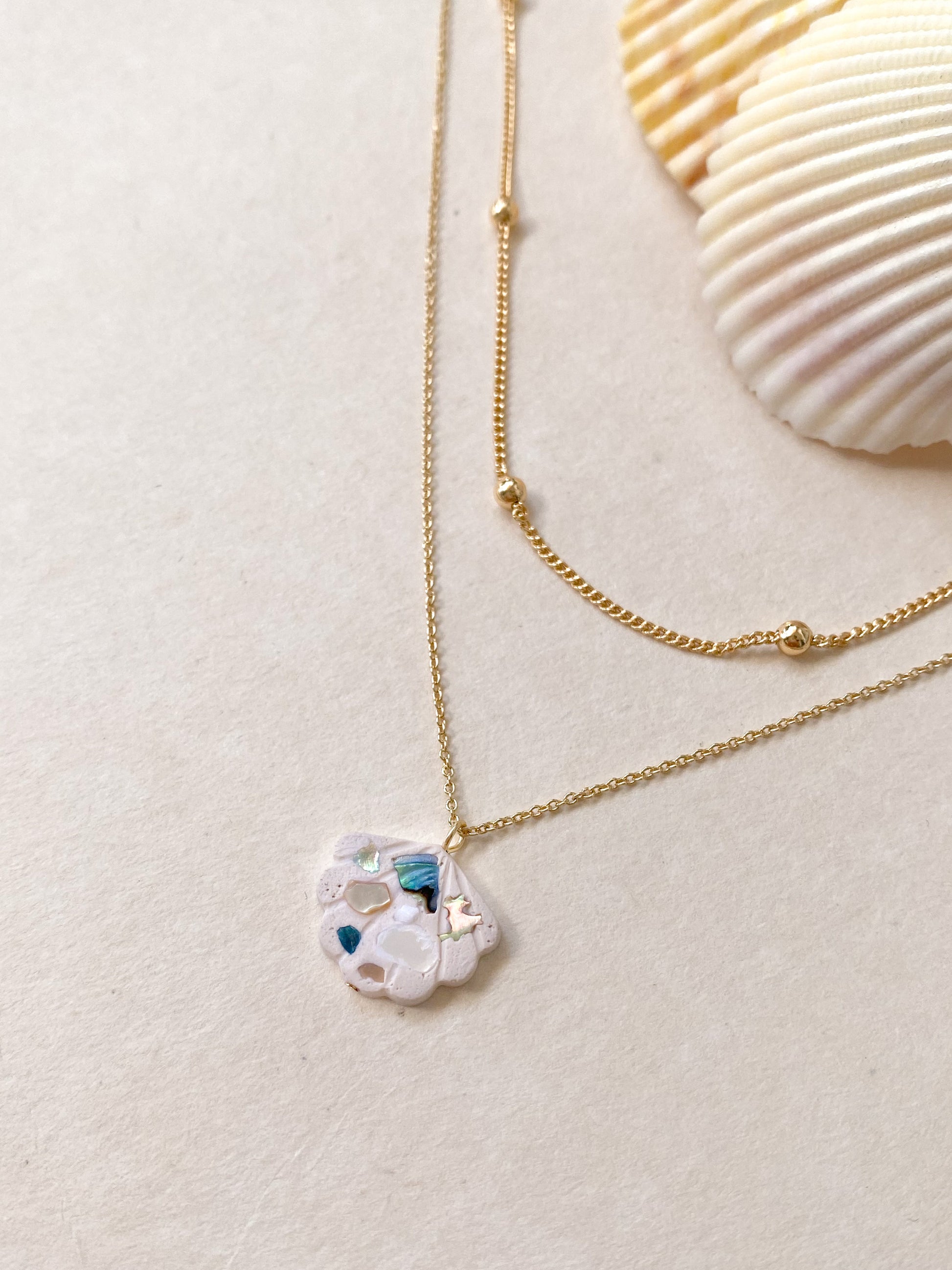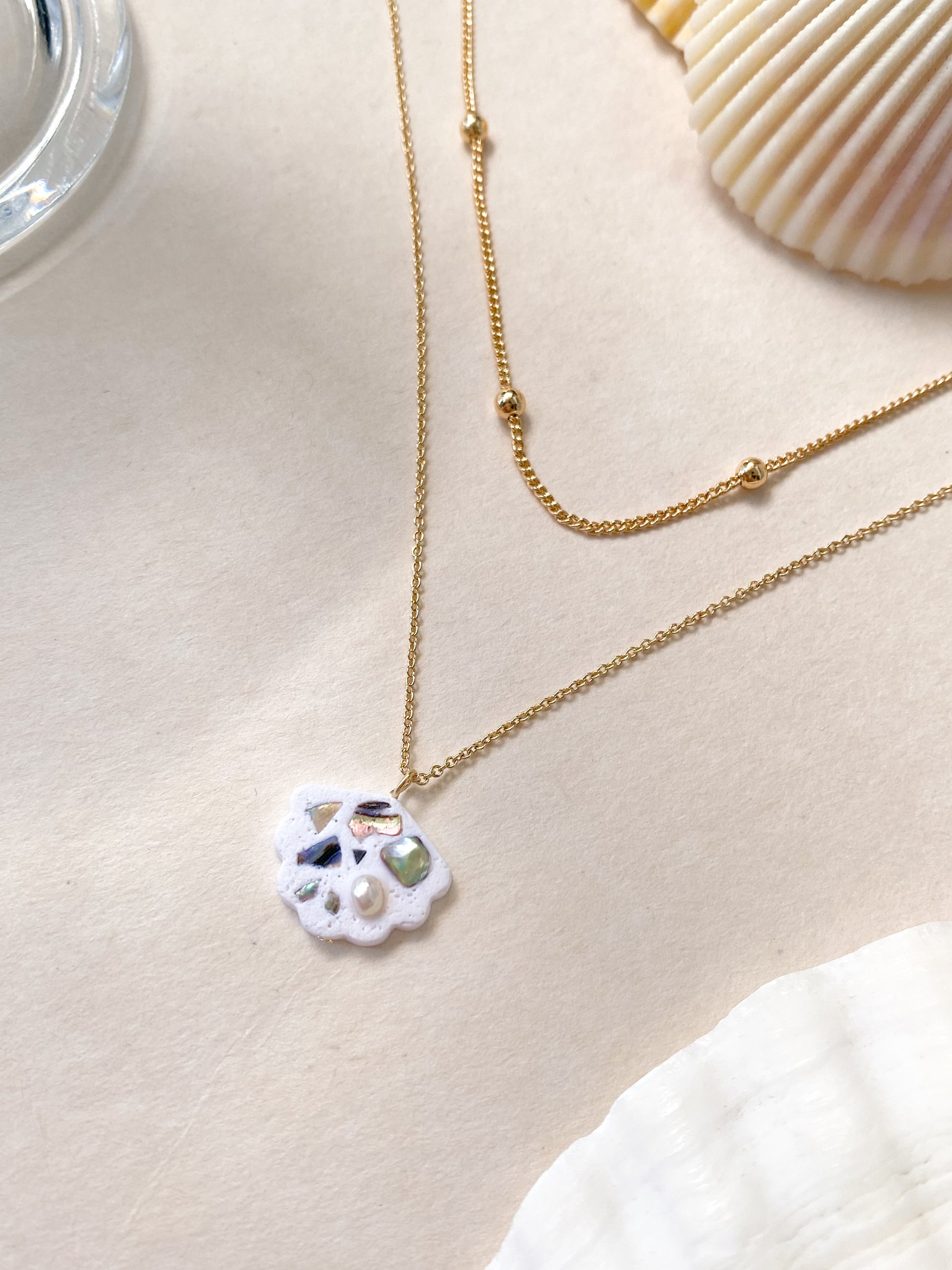 ⋆ Polymer Clay Shell Charm(1.5cm Width) & 14K gold plated chains, attached to lobster clasp
