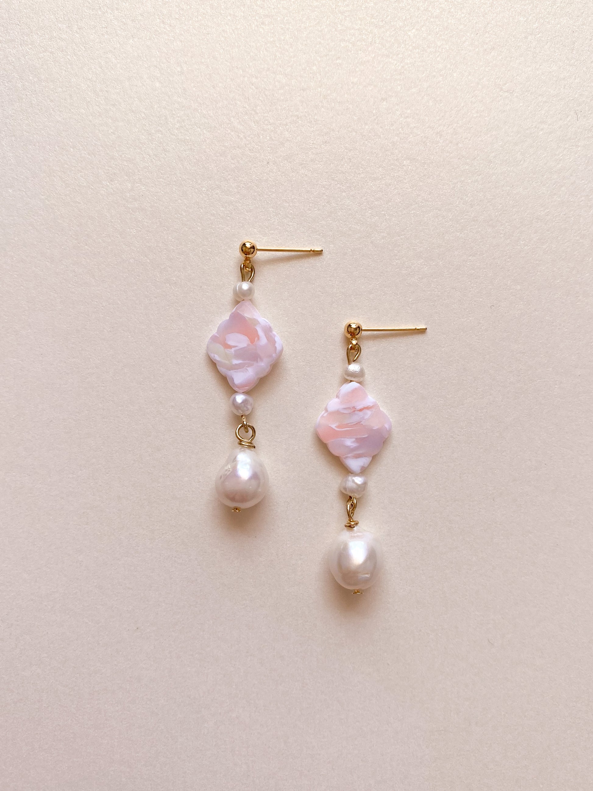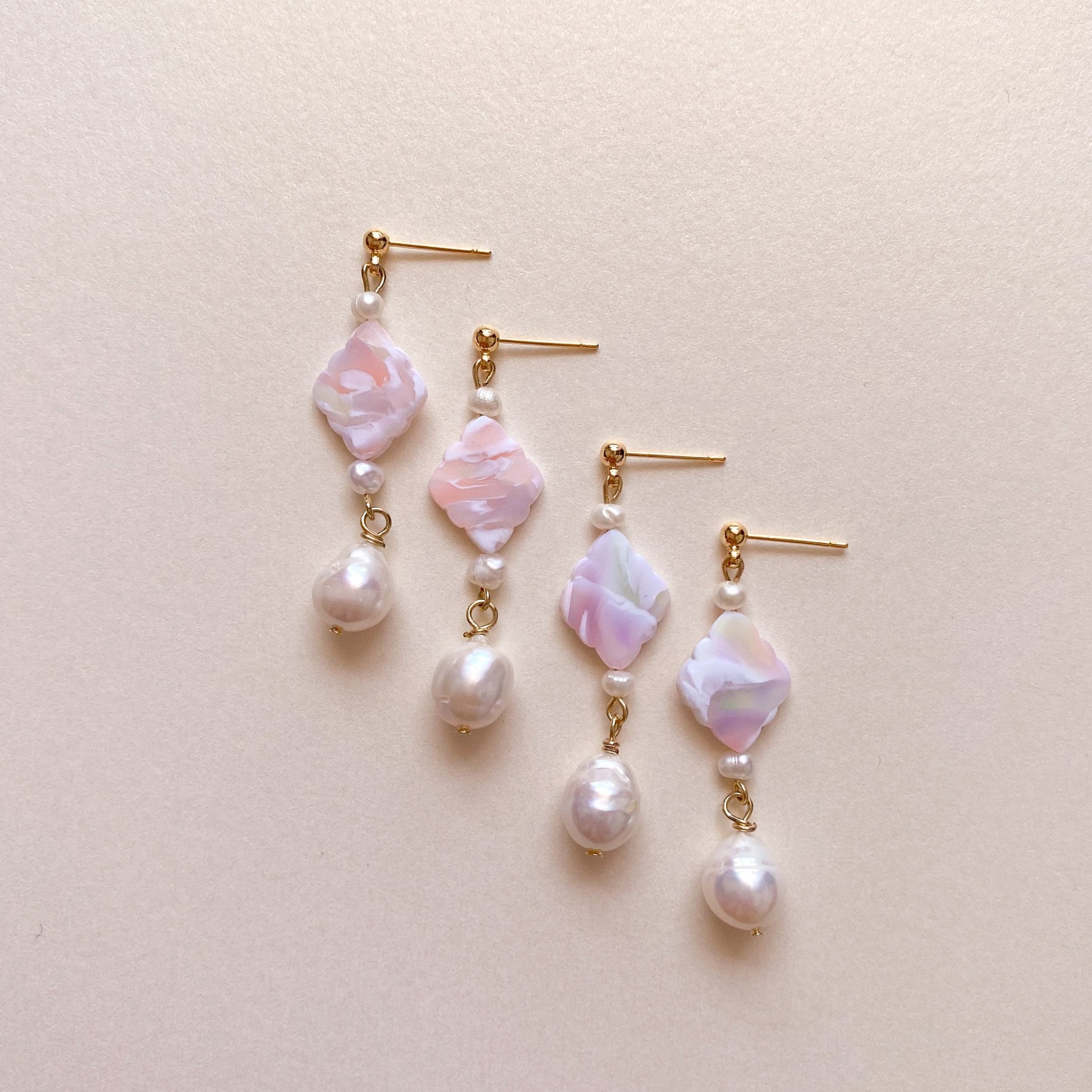 ⋆ Made from polymer clay, genuine freshwater pearls and 14K gold plated ball studs