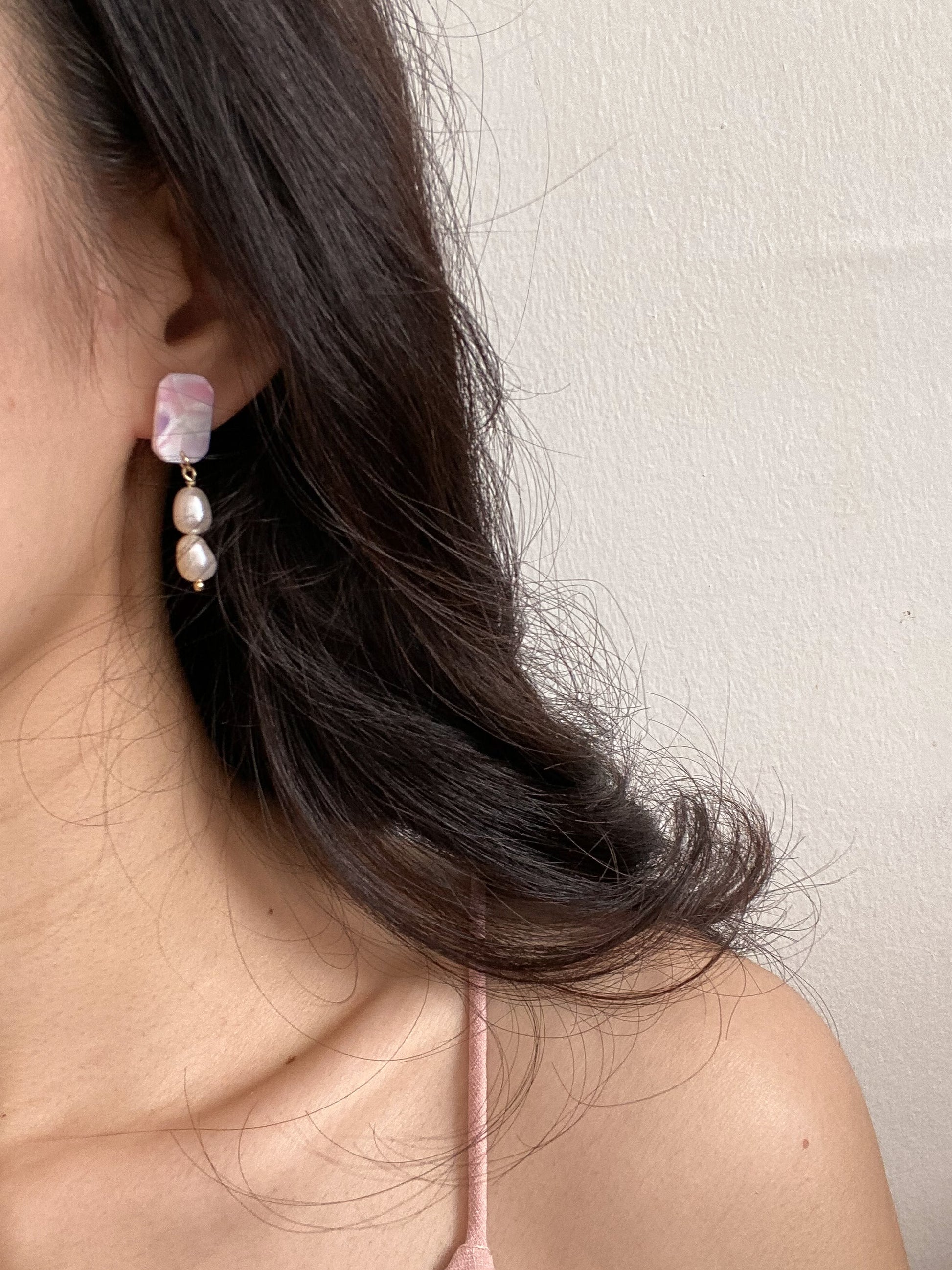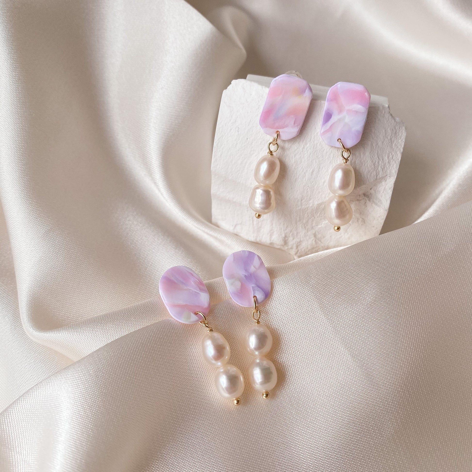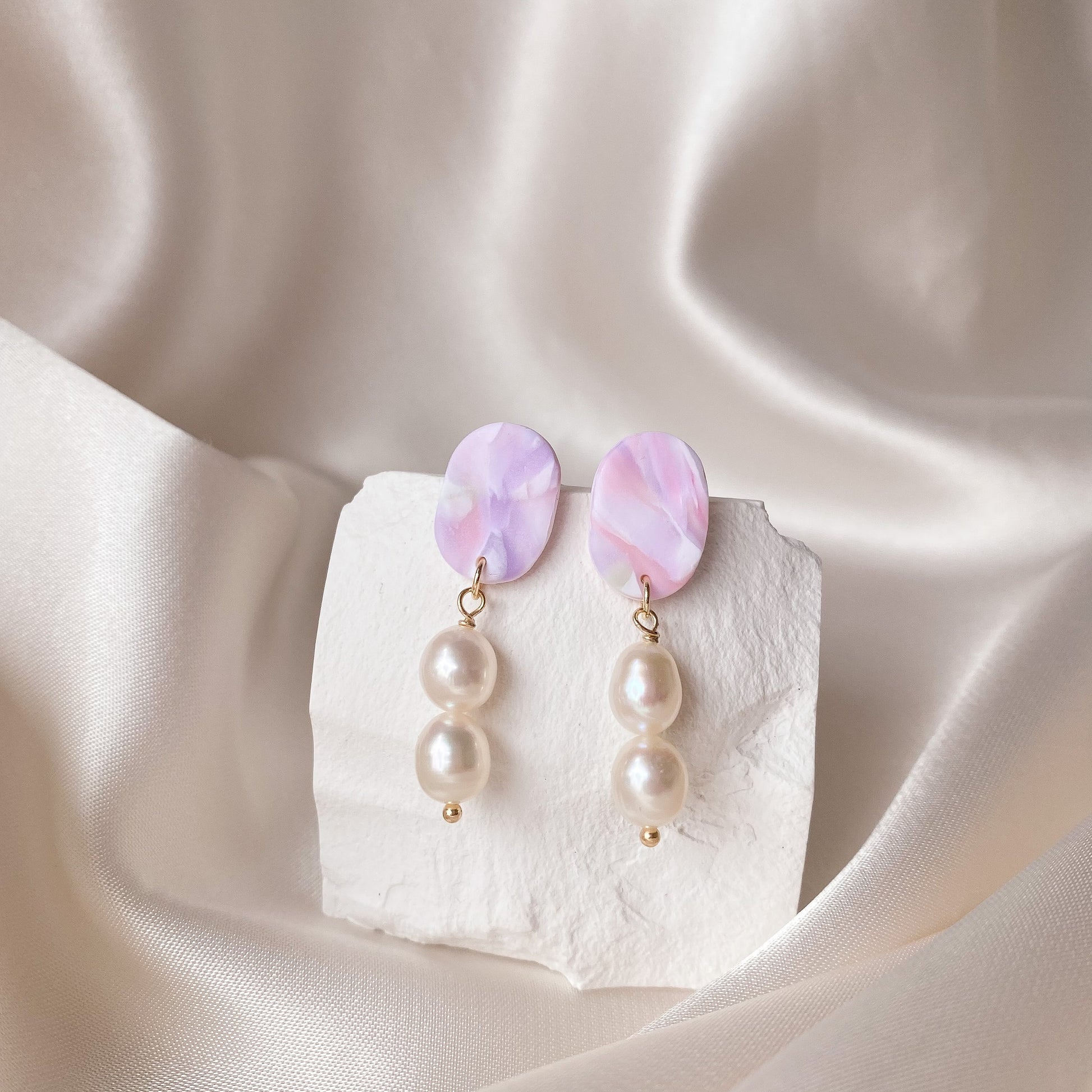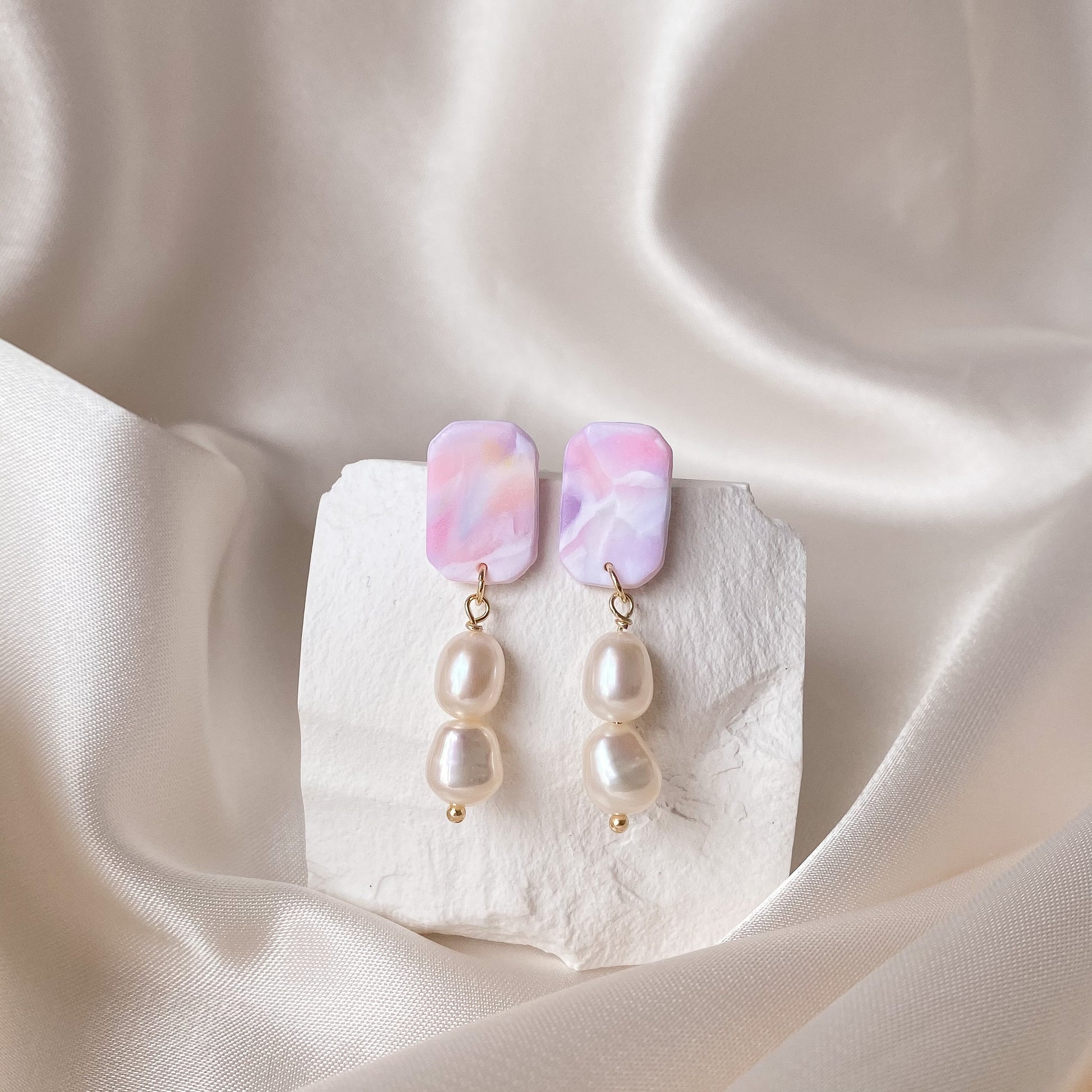 ⋆ Made from polymer clay, genuine freshwater pearls and 14K gold plated studs