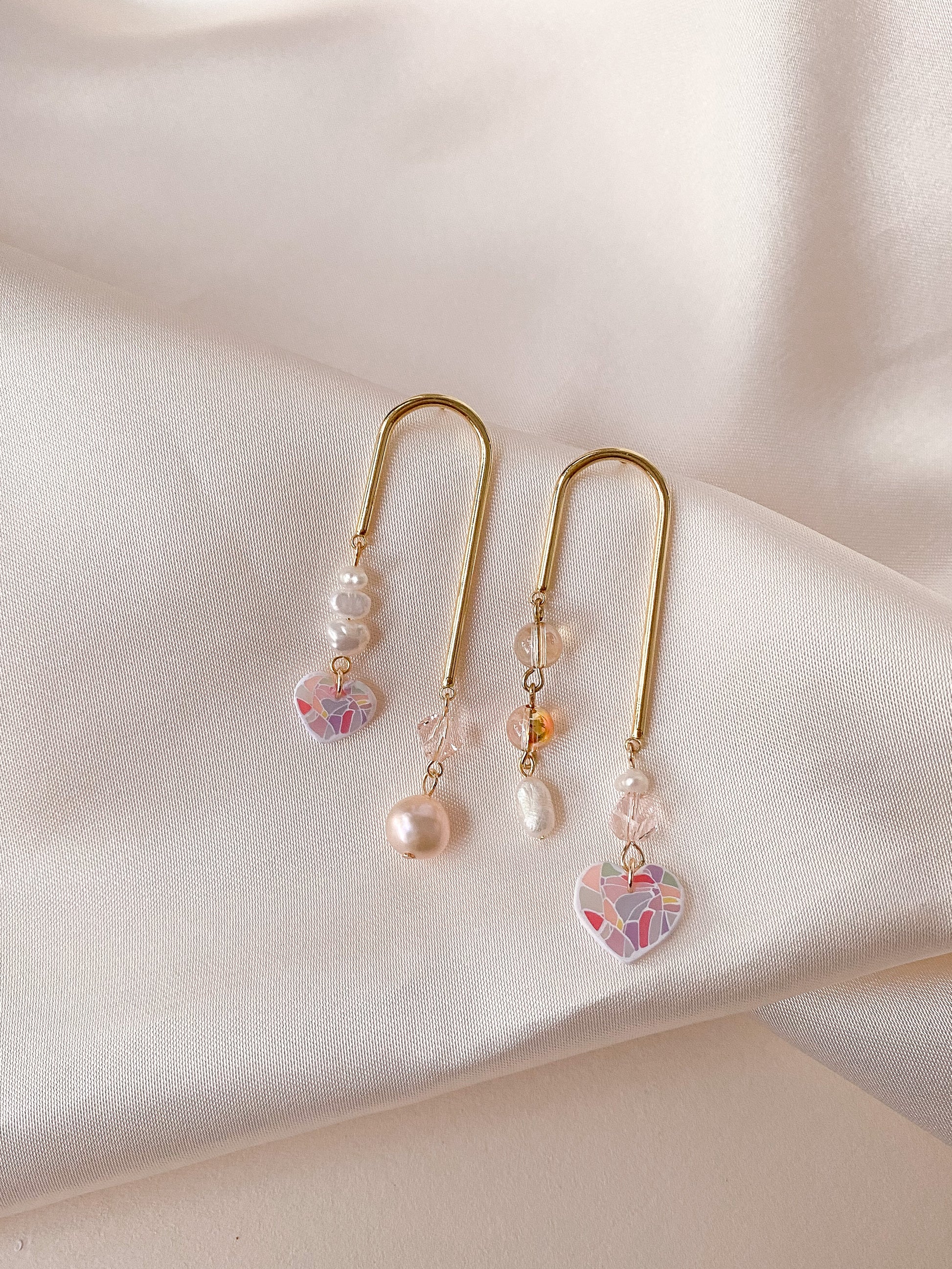 ⋆ Made from polymer clay, swarovski'crystals, genuine freshwater pearl and 14K gold-plated over 925 sterling silver studs