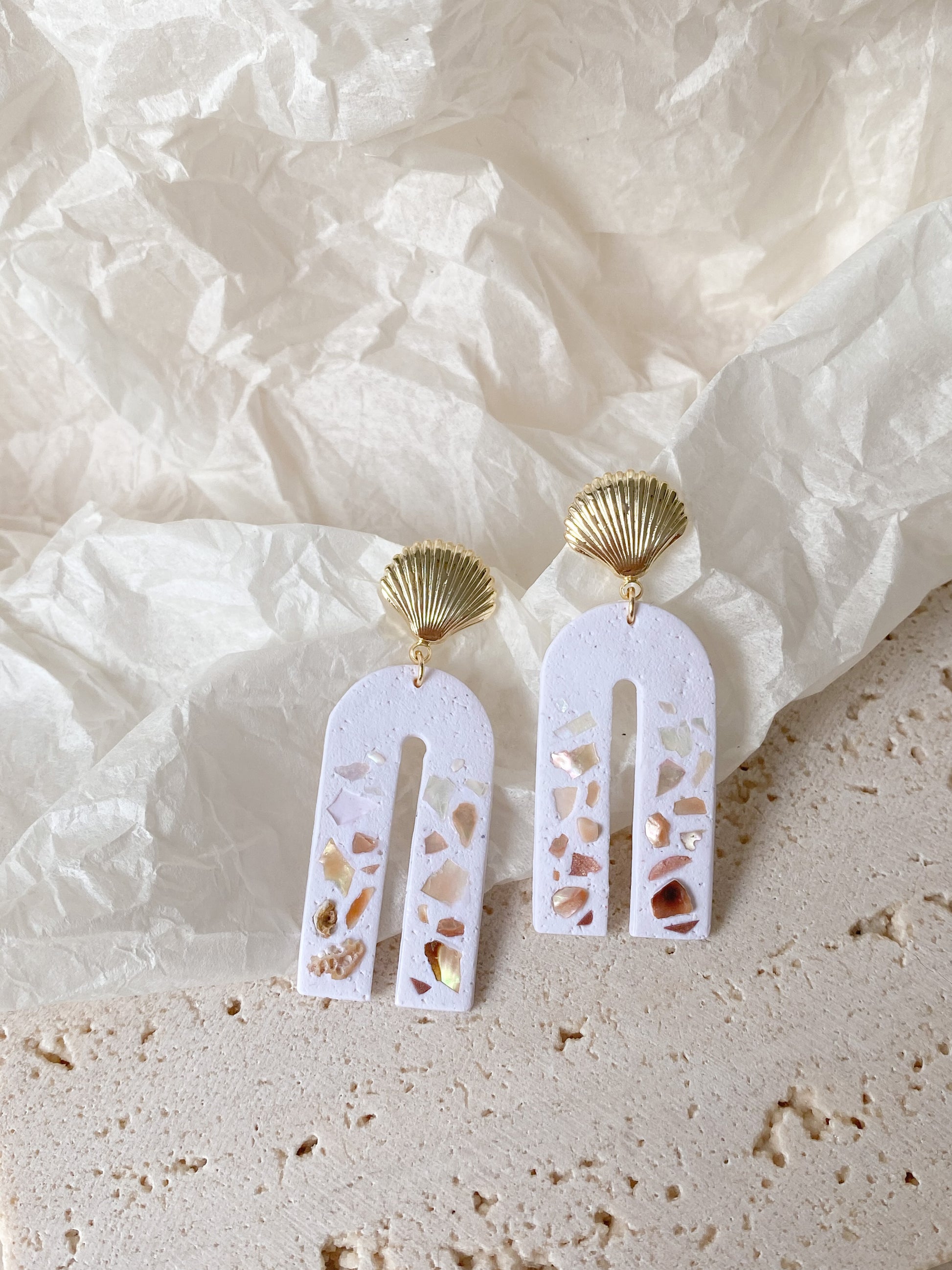 ⋆ Made from polymer clay, natural shells and 14K gold-plated over 925 sterling silver studs