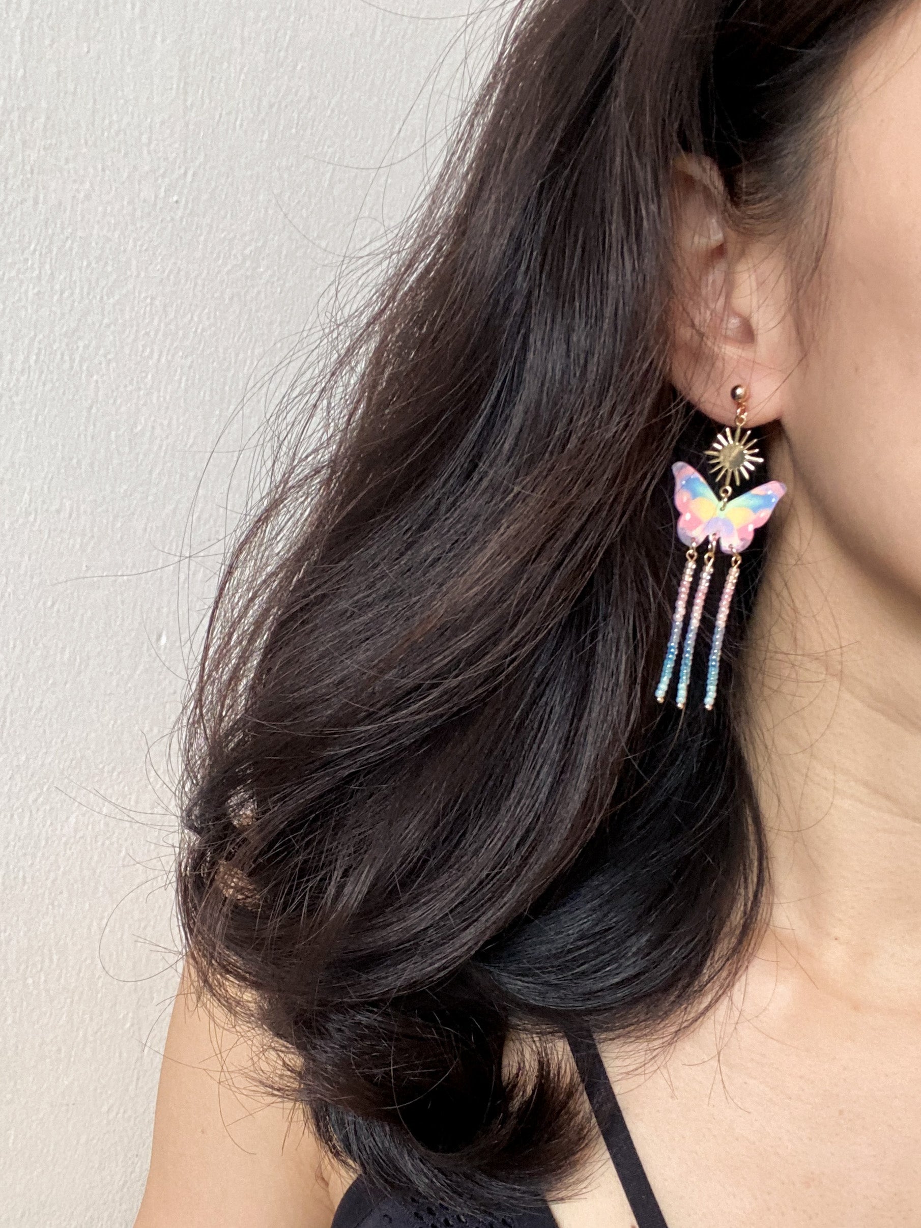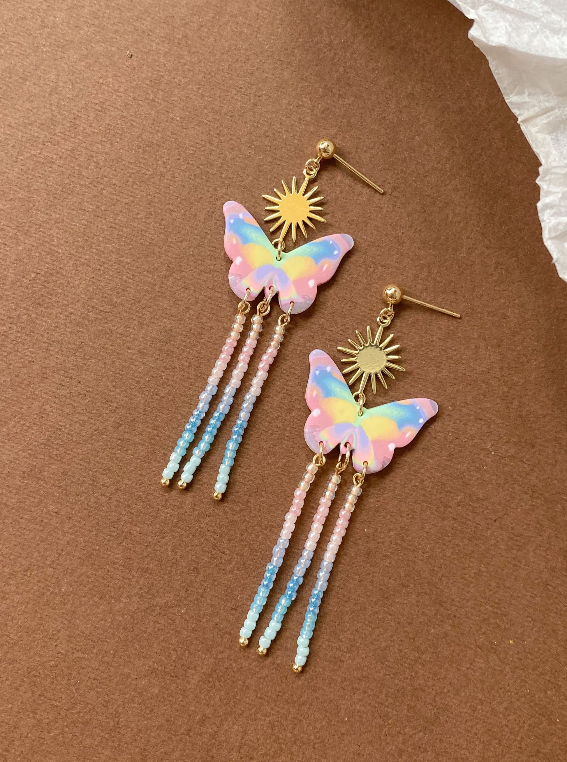⋆ Made from polymer clay, glass beads, 14k gold plated hooks and charms