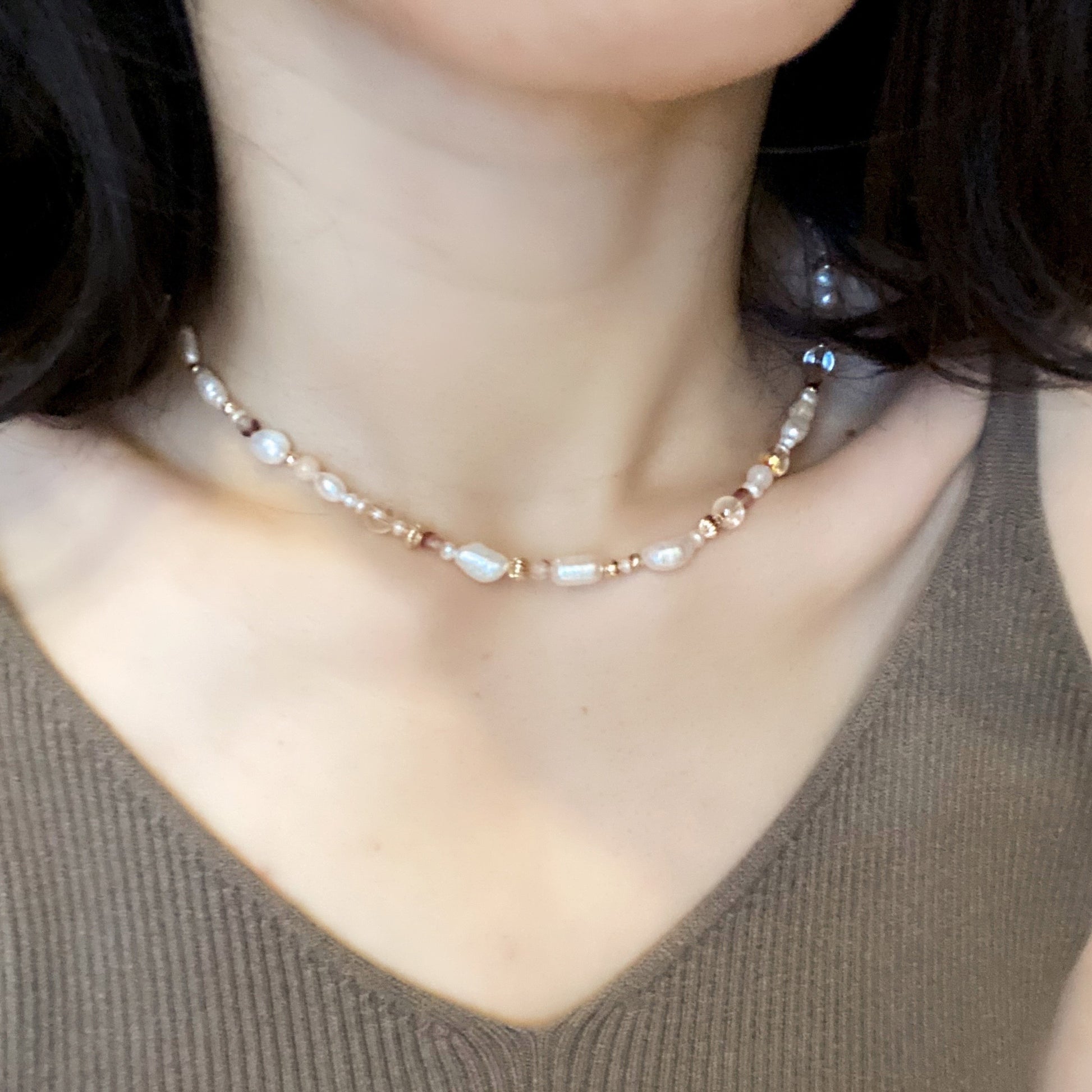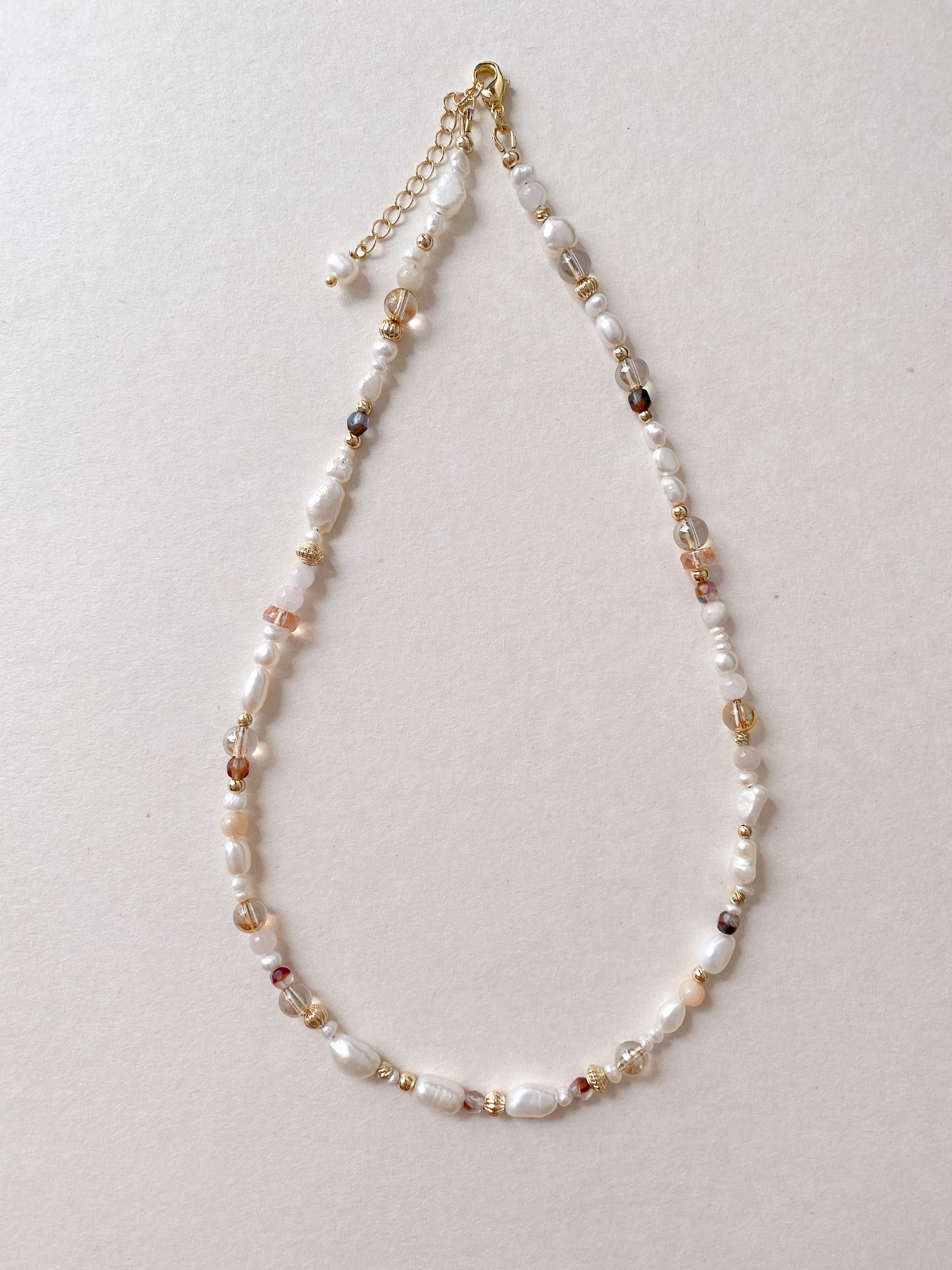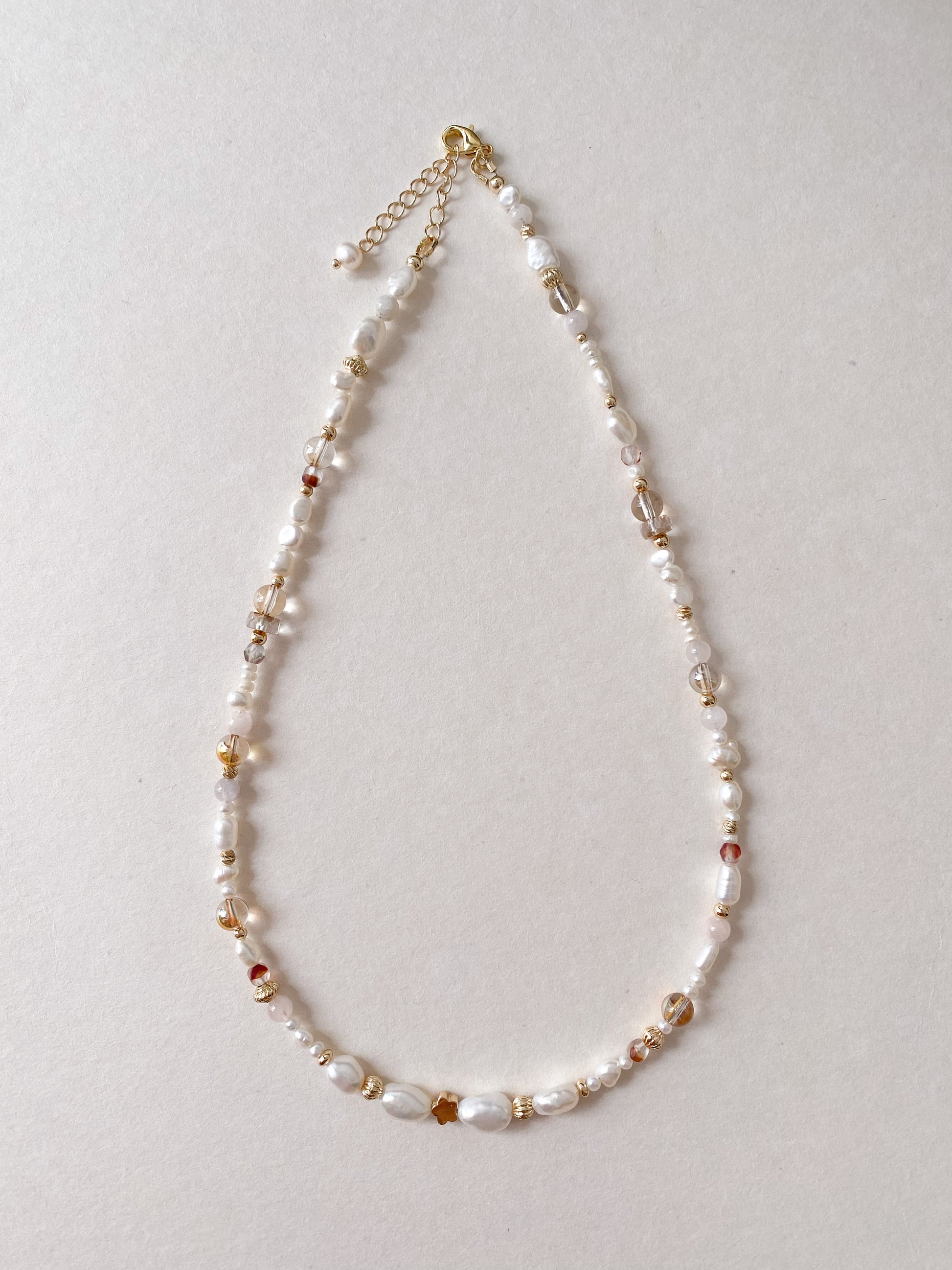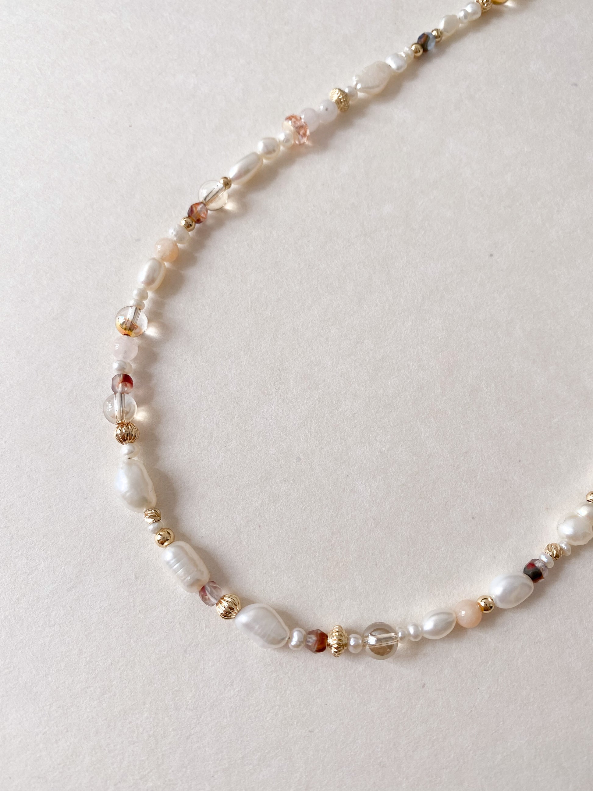 ⋆ Genuine freshwater pearls, natural morganite beads, Swarovski beads, Czech beads and 14K gold plated materials