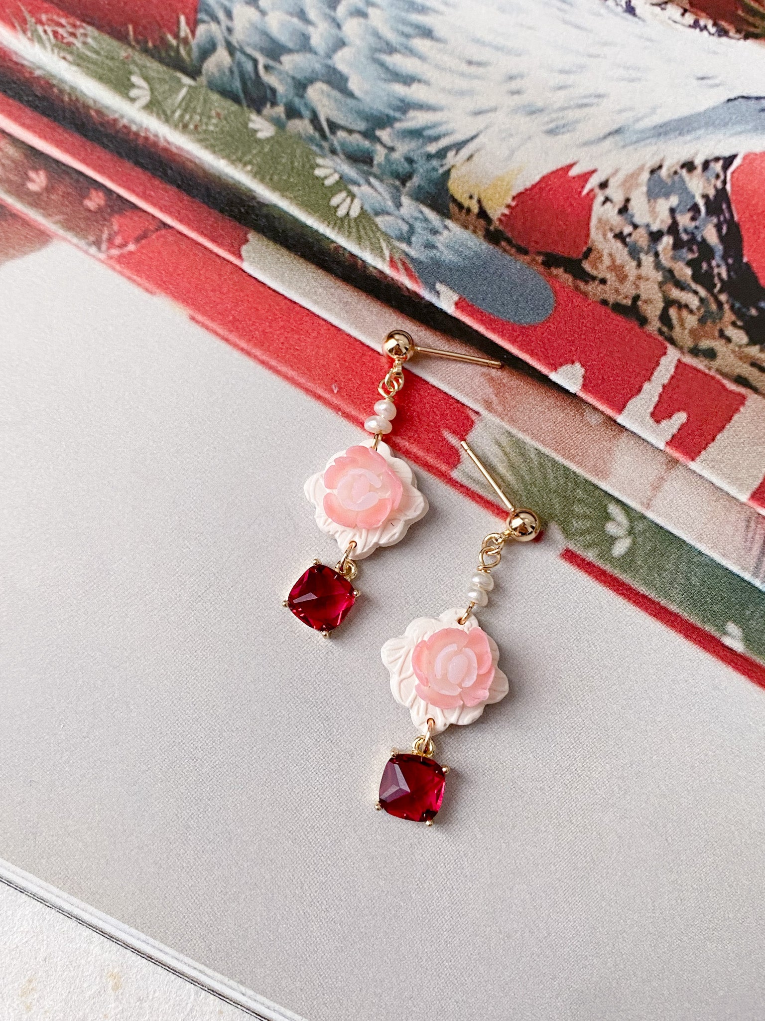 ⋆ Made from polymer clay, freshwater pearl, zirconia and 14k gold plated studs