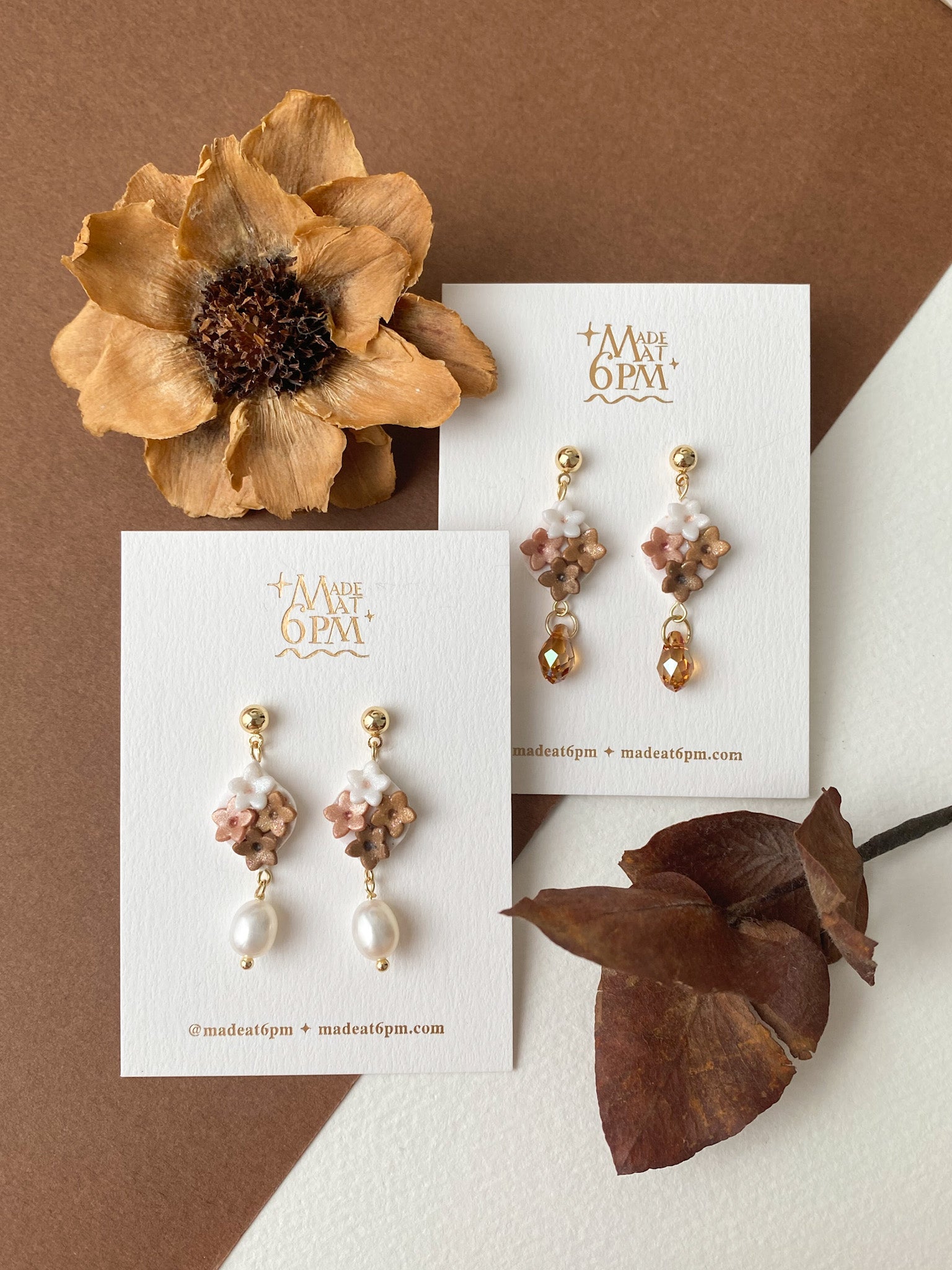 ⋆ Made from polymer clay, 14K gold-plated ball studs and freshwater pearls / Swarovski crystals