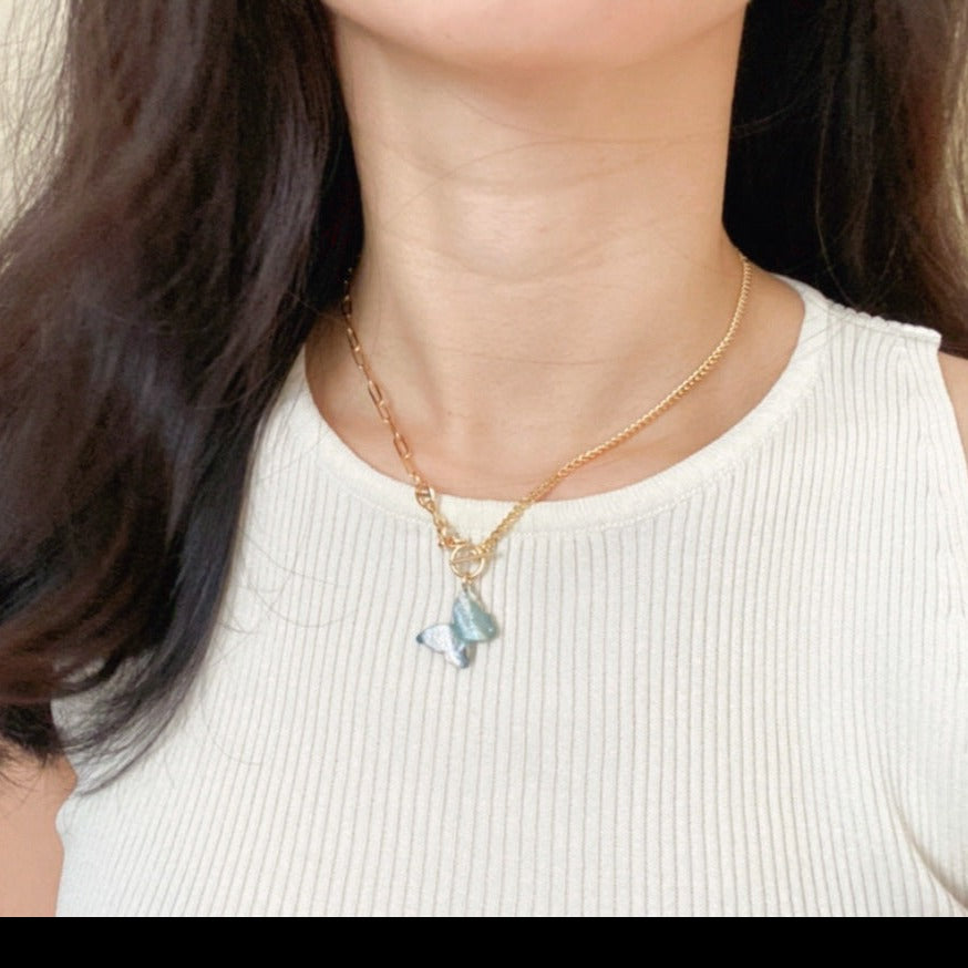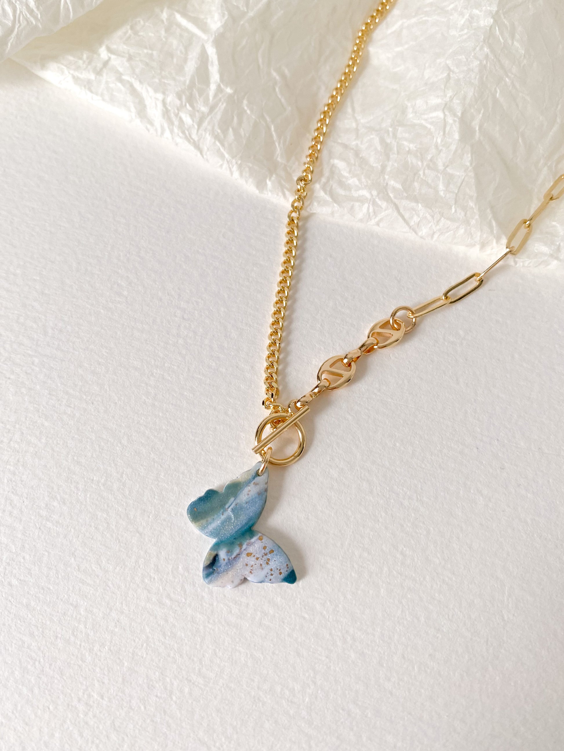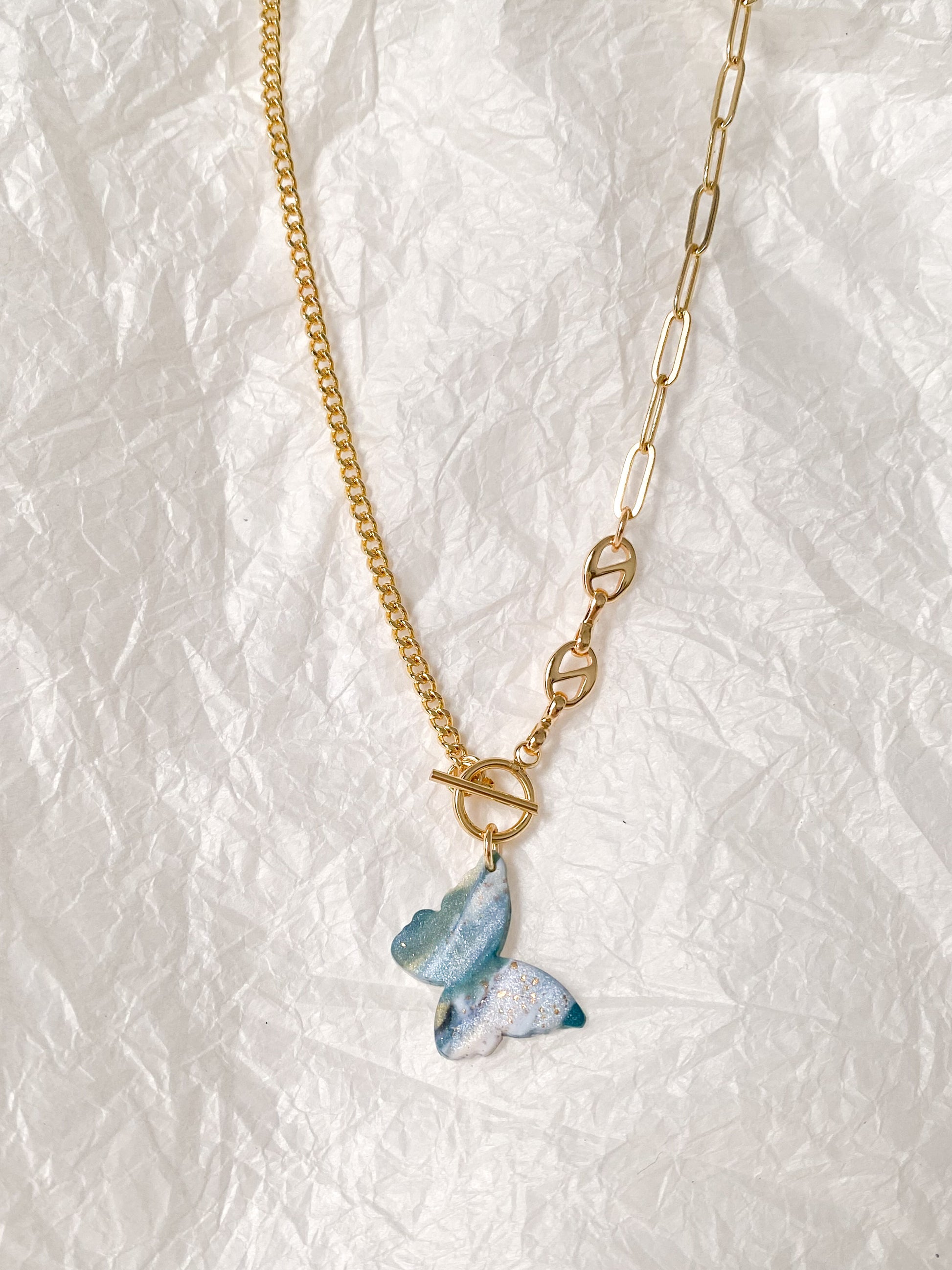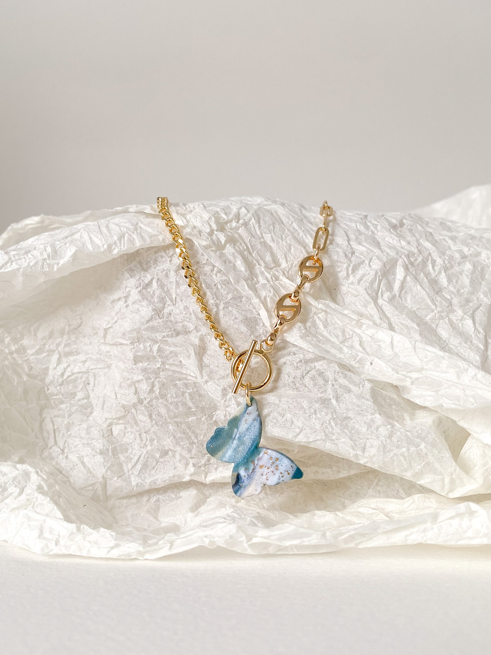⋆ Polymer Clay Butterfly Charm(1.5cm) and 14K gold plated chains, attached to toggle clasps
