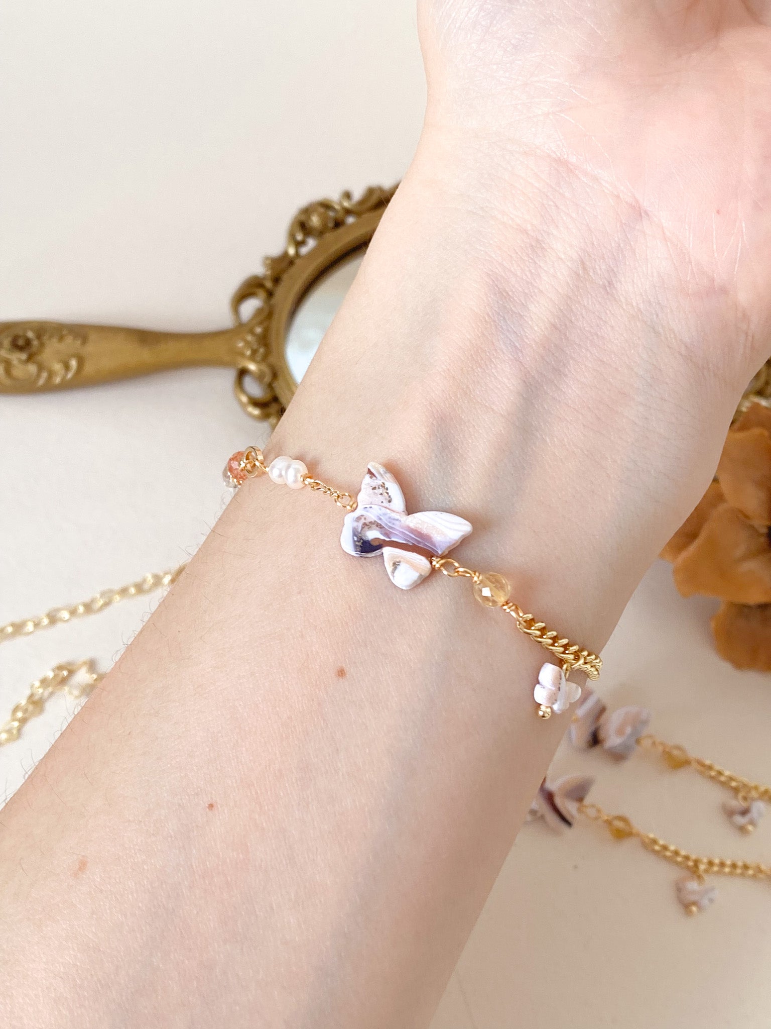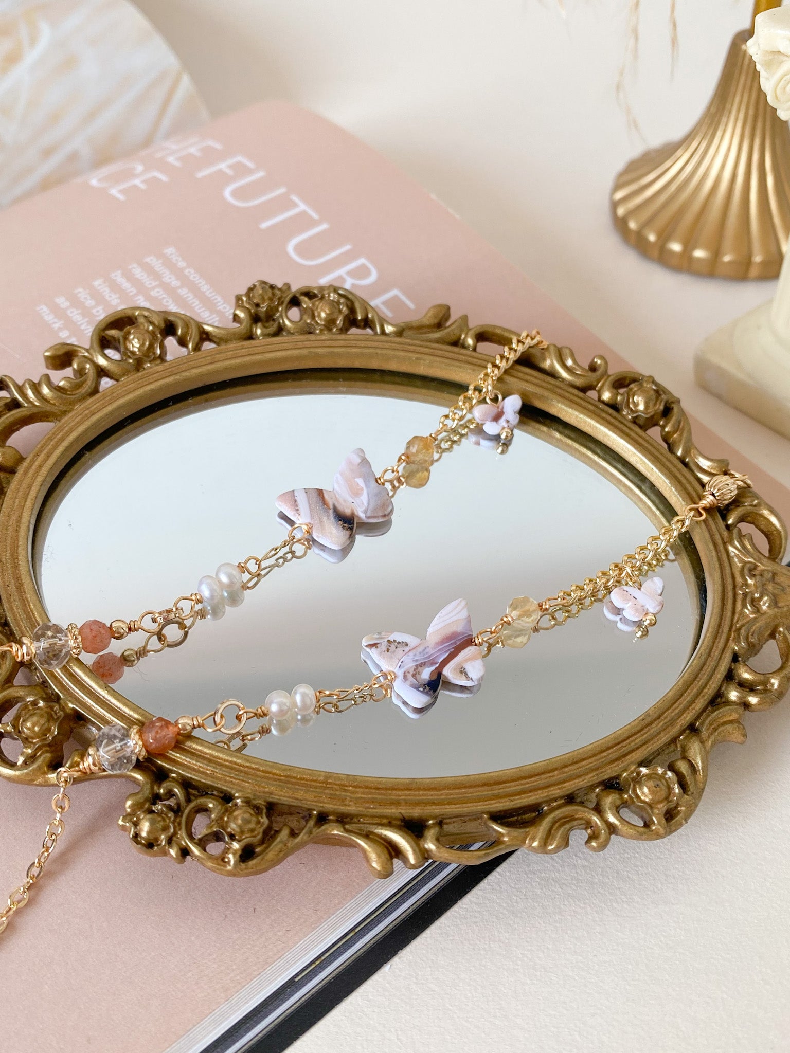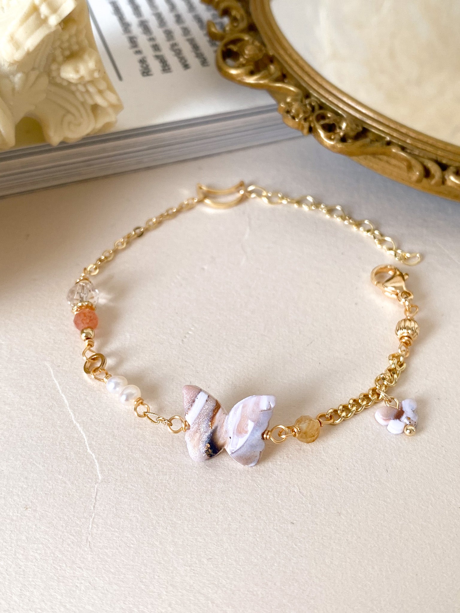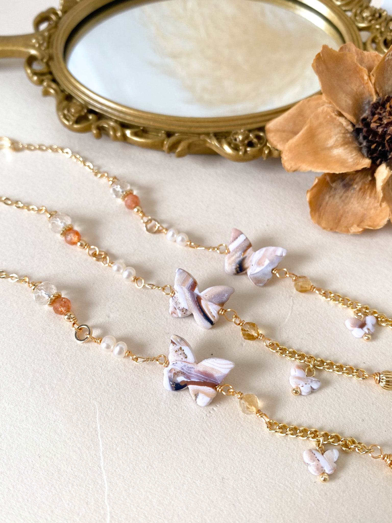 Chasing Butterflies Gemstone Bracelet - Citrine, Sunstone, Clear Topaz and pearl