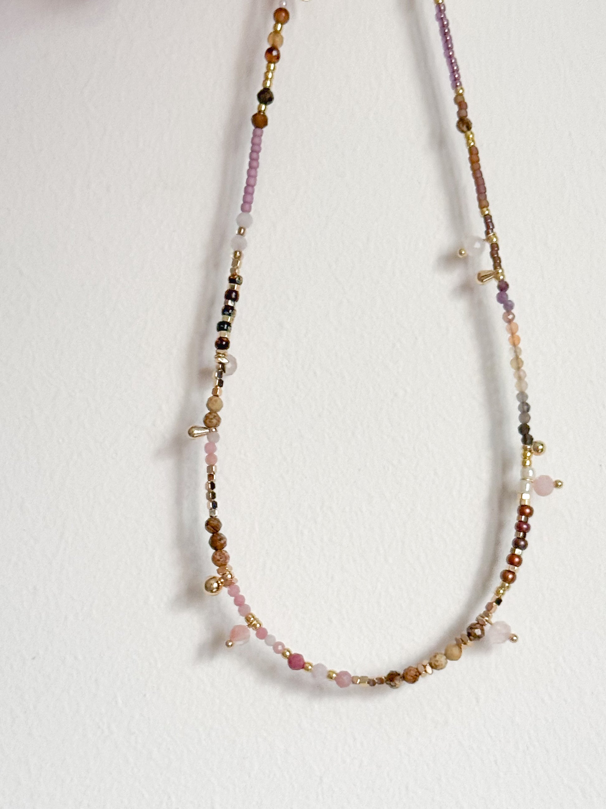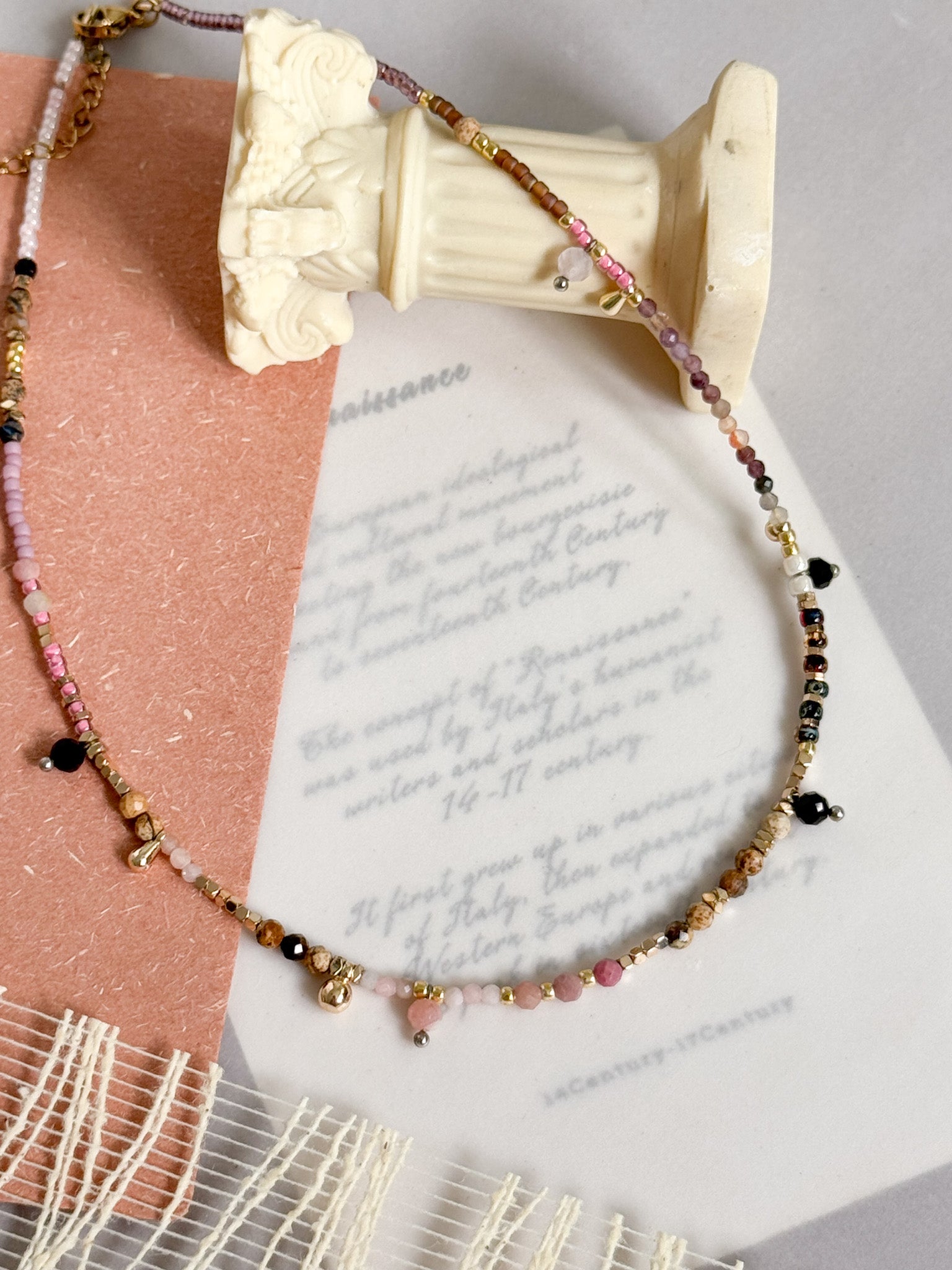 Materials: Various natural stones, premium Japanese glass beads, and 18k gold-plated/stainless steel parts.