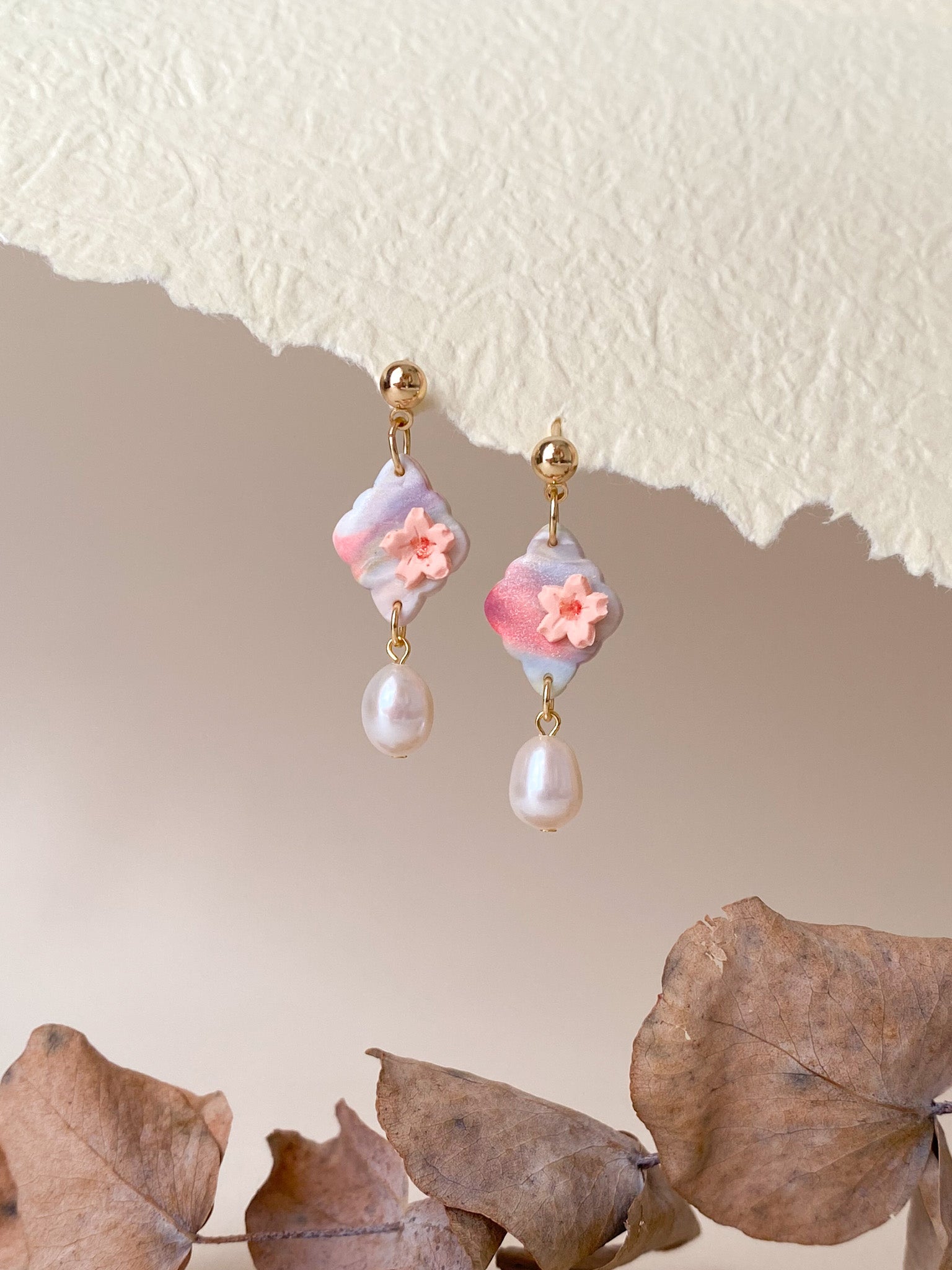 ⋆ Made from polymer clay, freshwater pearl and 14K gold-plated studs