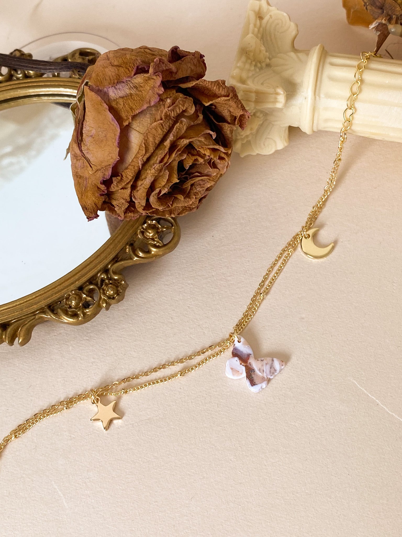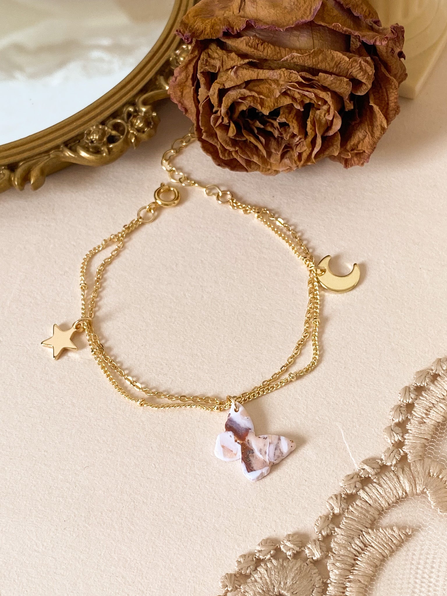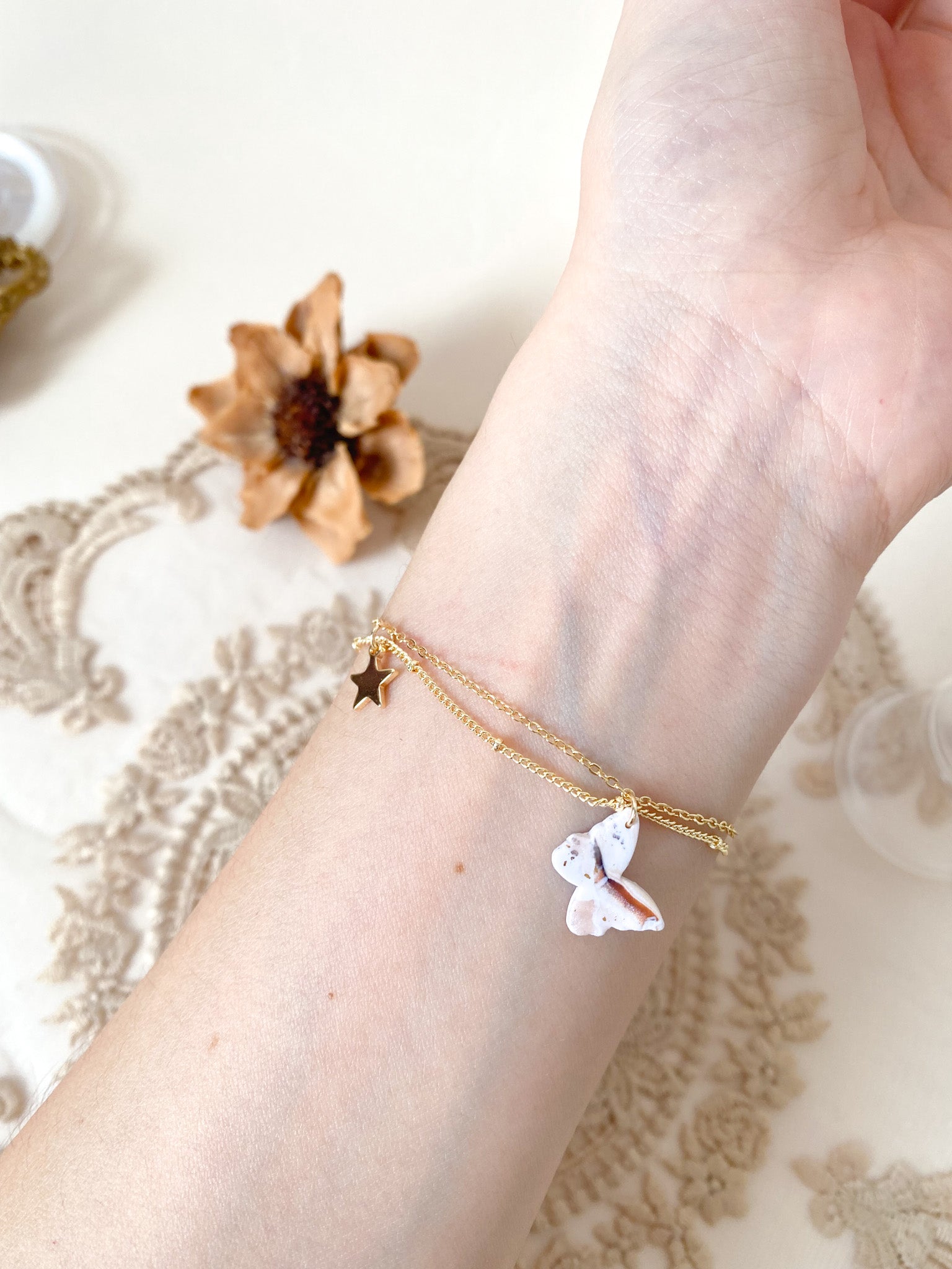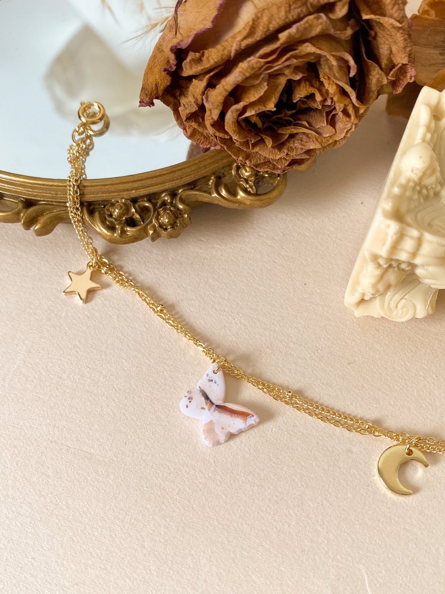 Material : Polymer clay butterfly charm, 14k Gold Plated Chain, attached to spring ring clasp