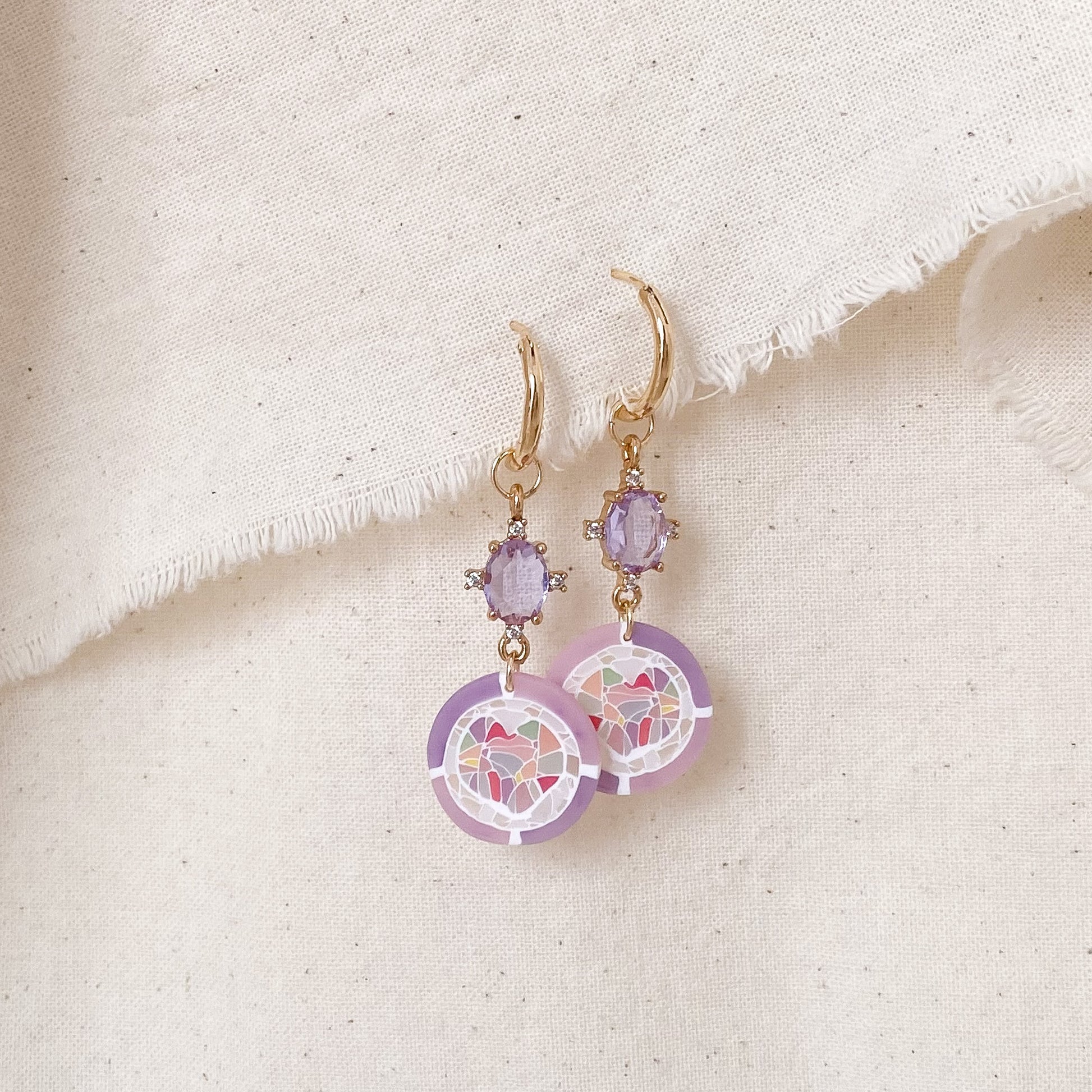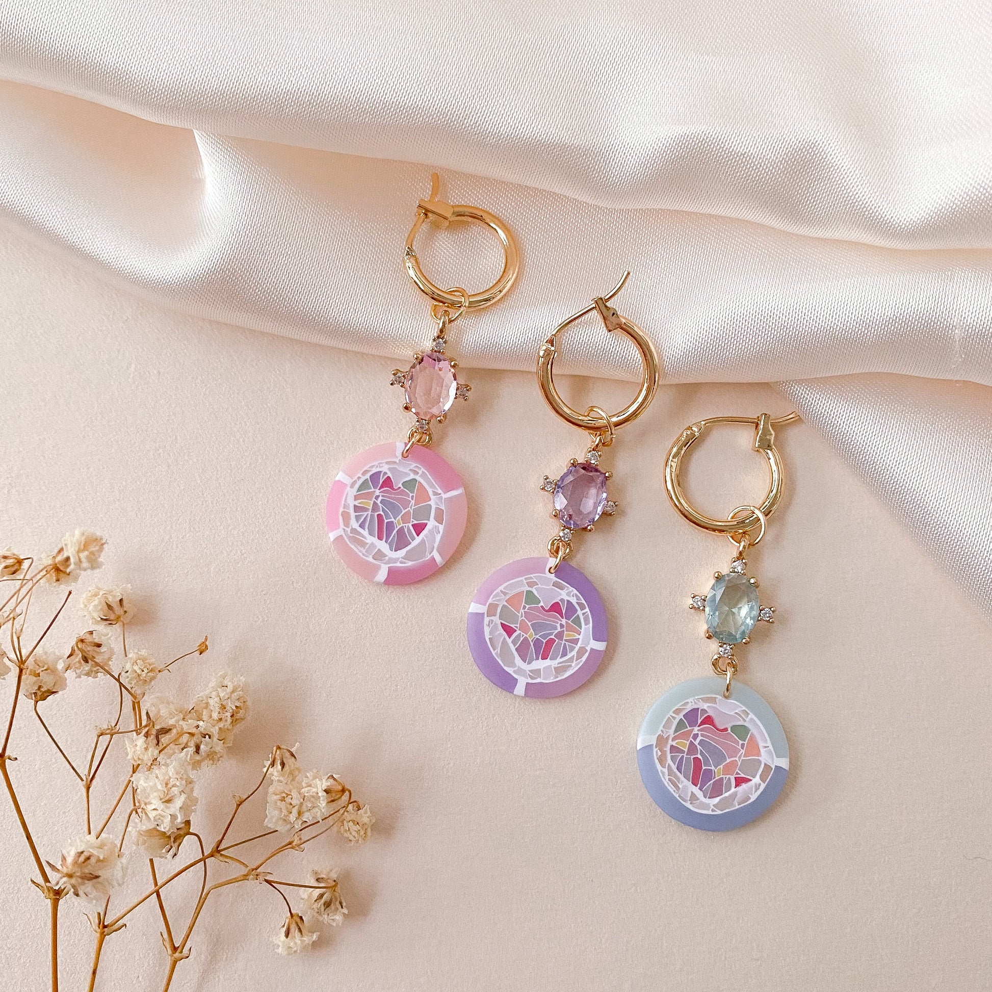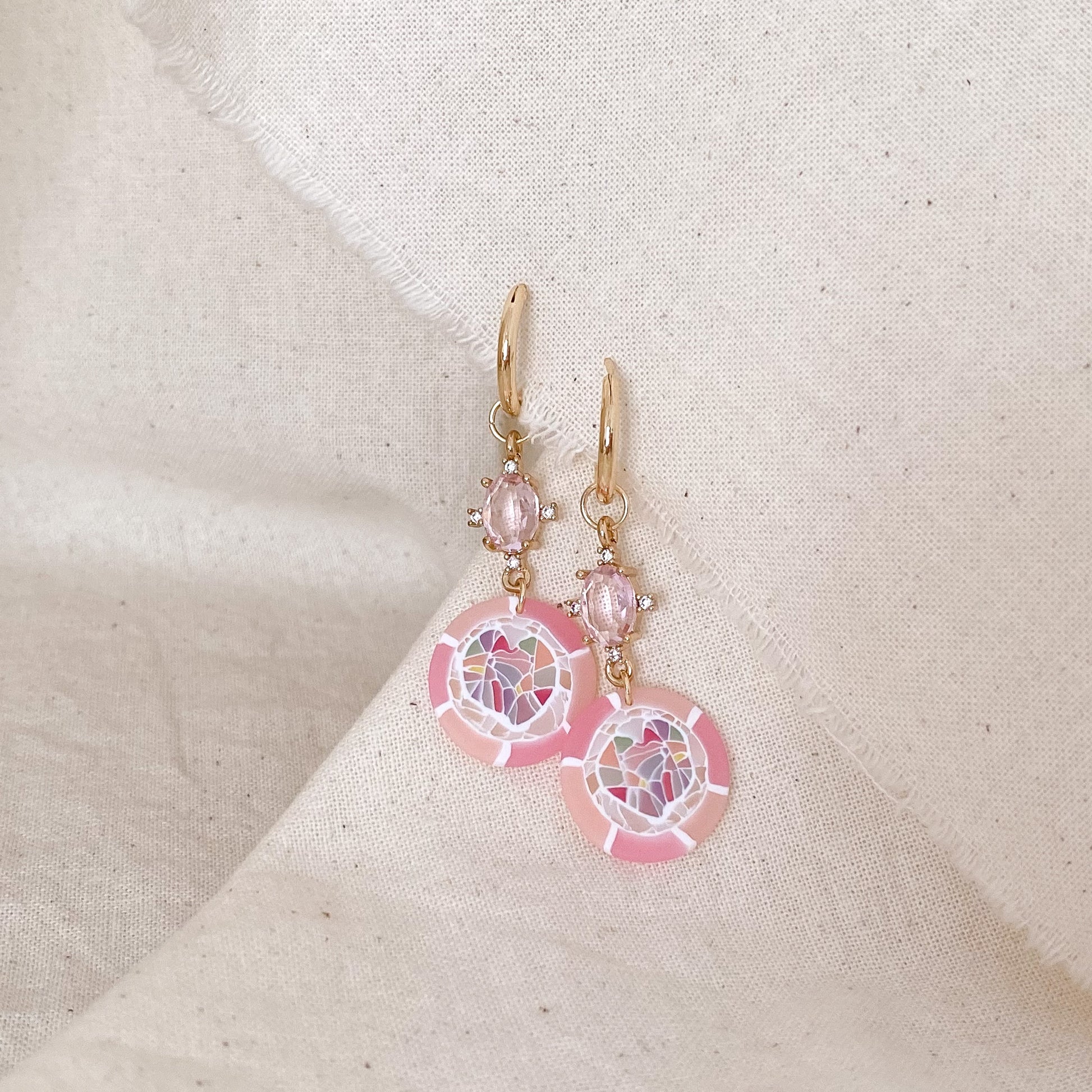 ⋆ Made from polymer clay, crystal and 14K gold-plated hoops