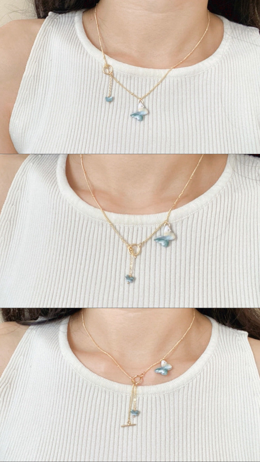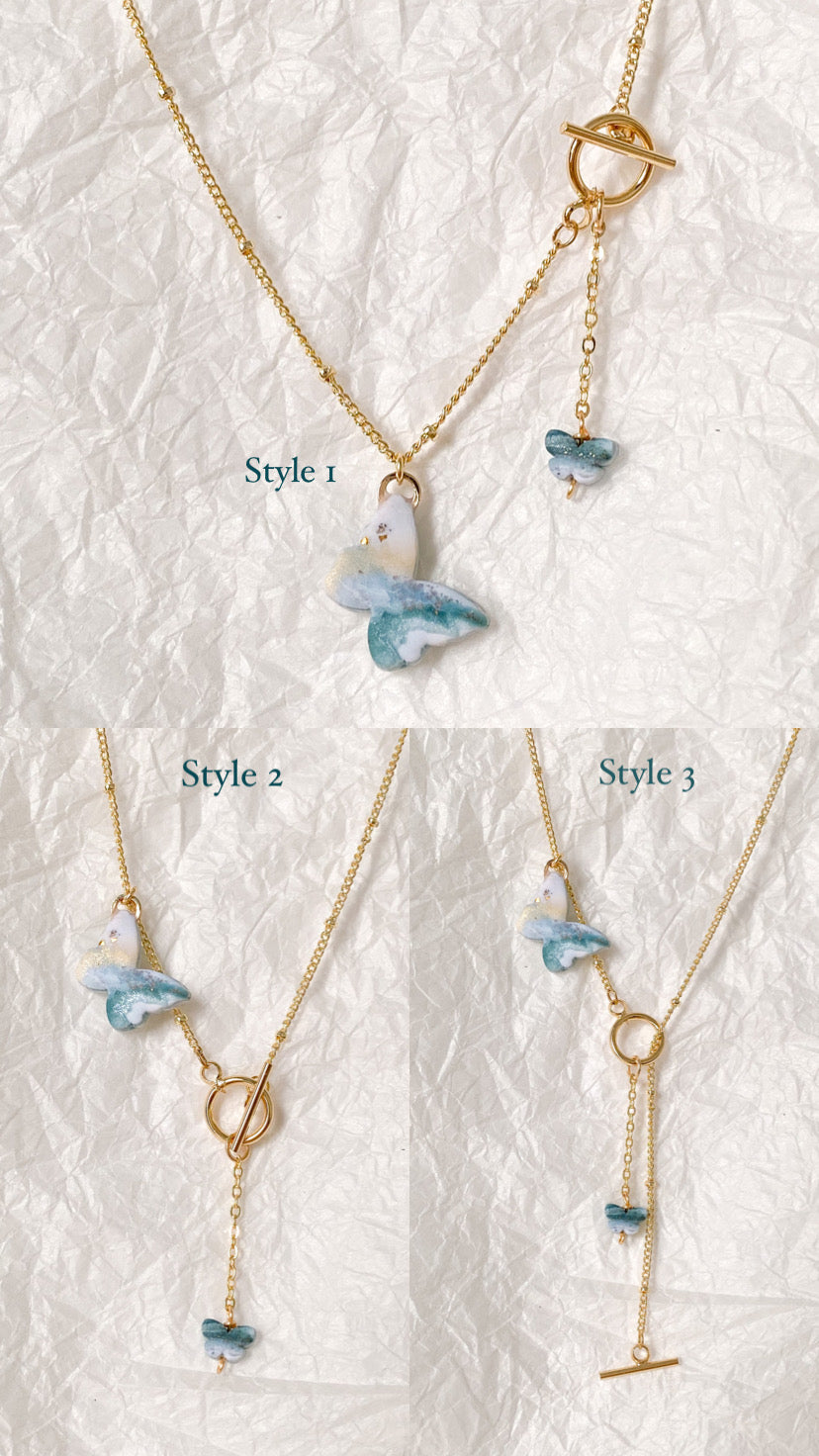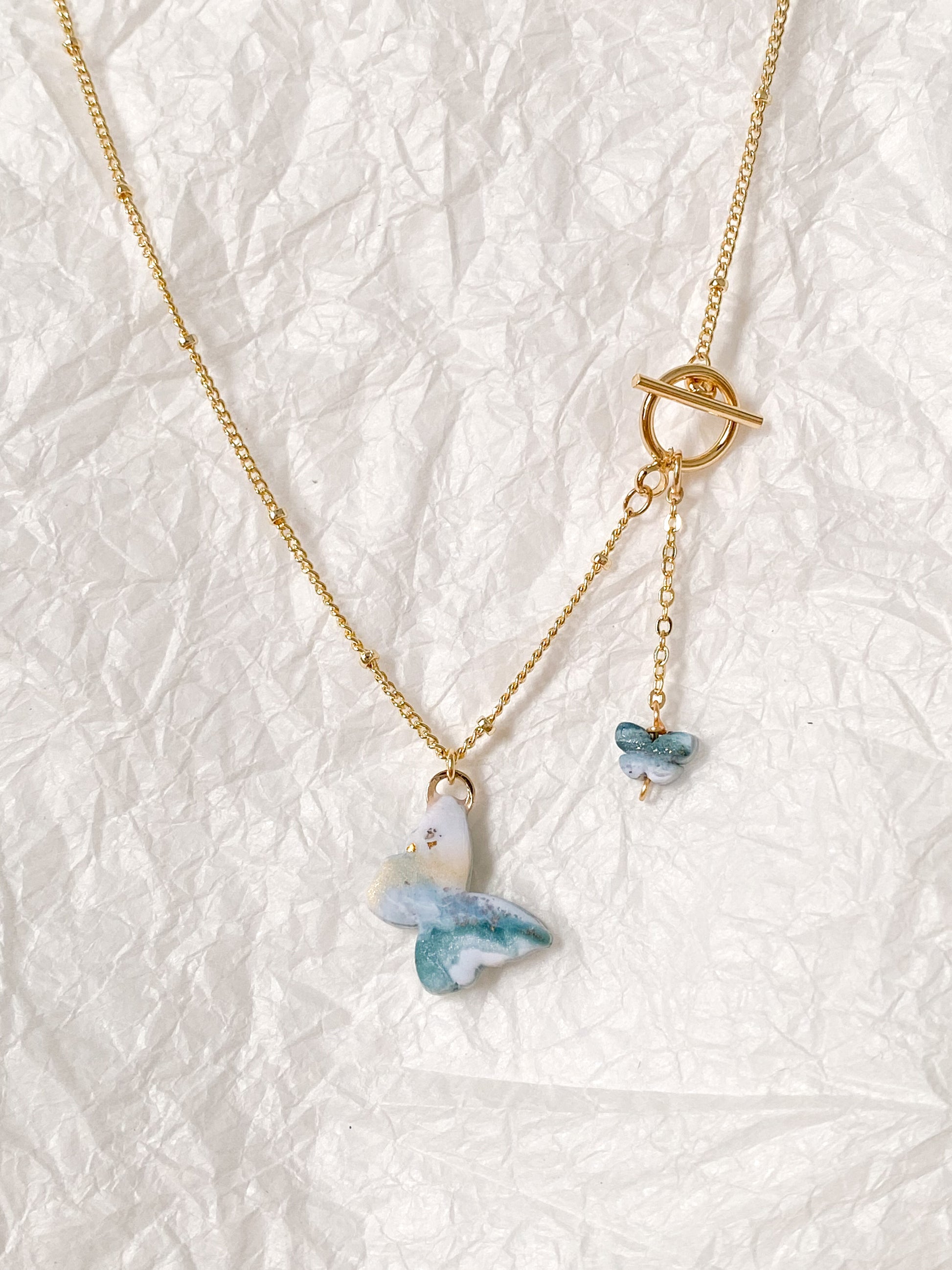 ⋆ Polymer Clay Butterfly Charm(1.5cm) and 14K gold plated chains, attached to toggle clasps