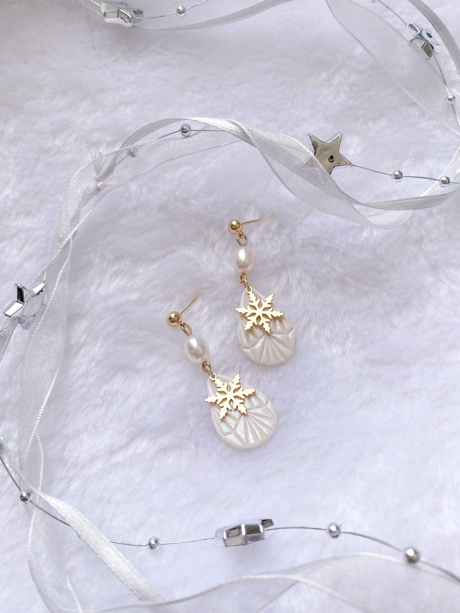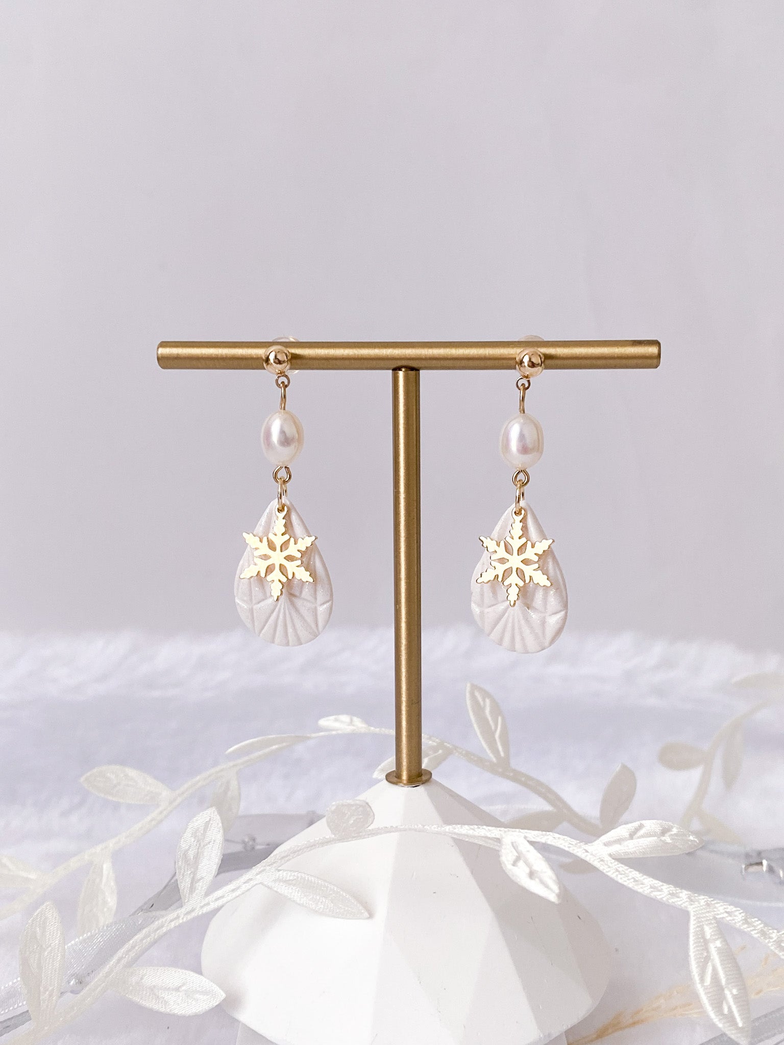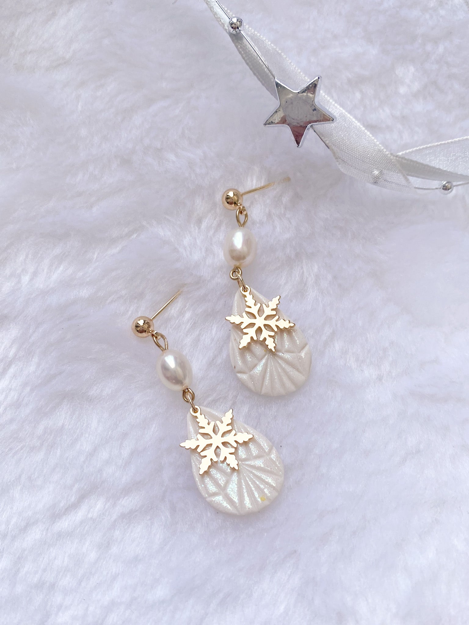 ⋆ Made from polymer clay, freshwater pearls and 14K gold-plated studs
