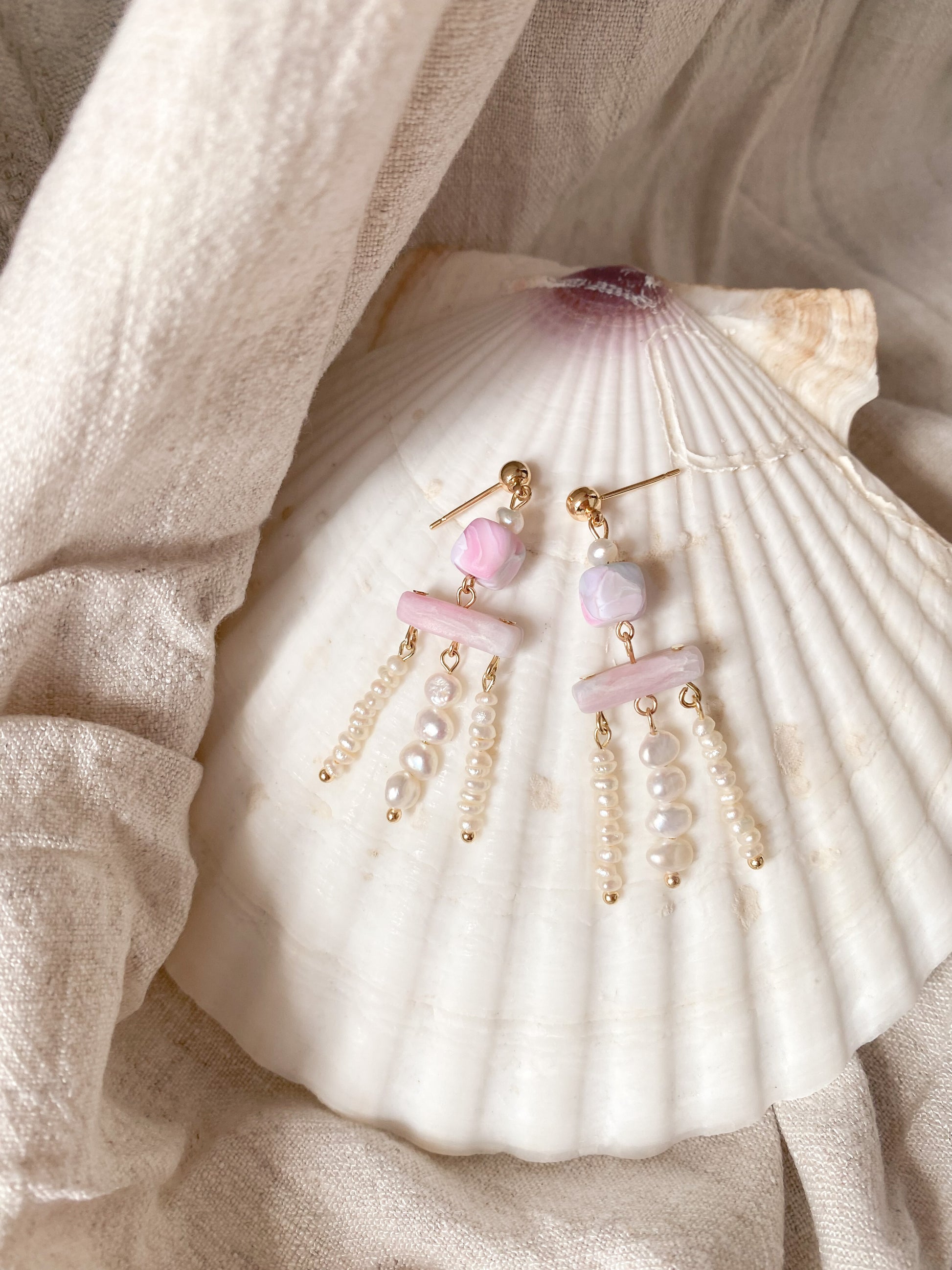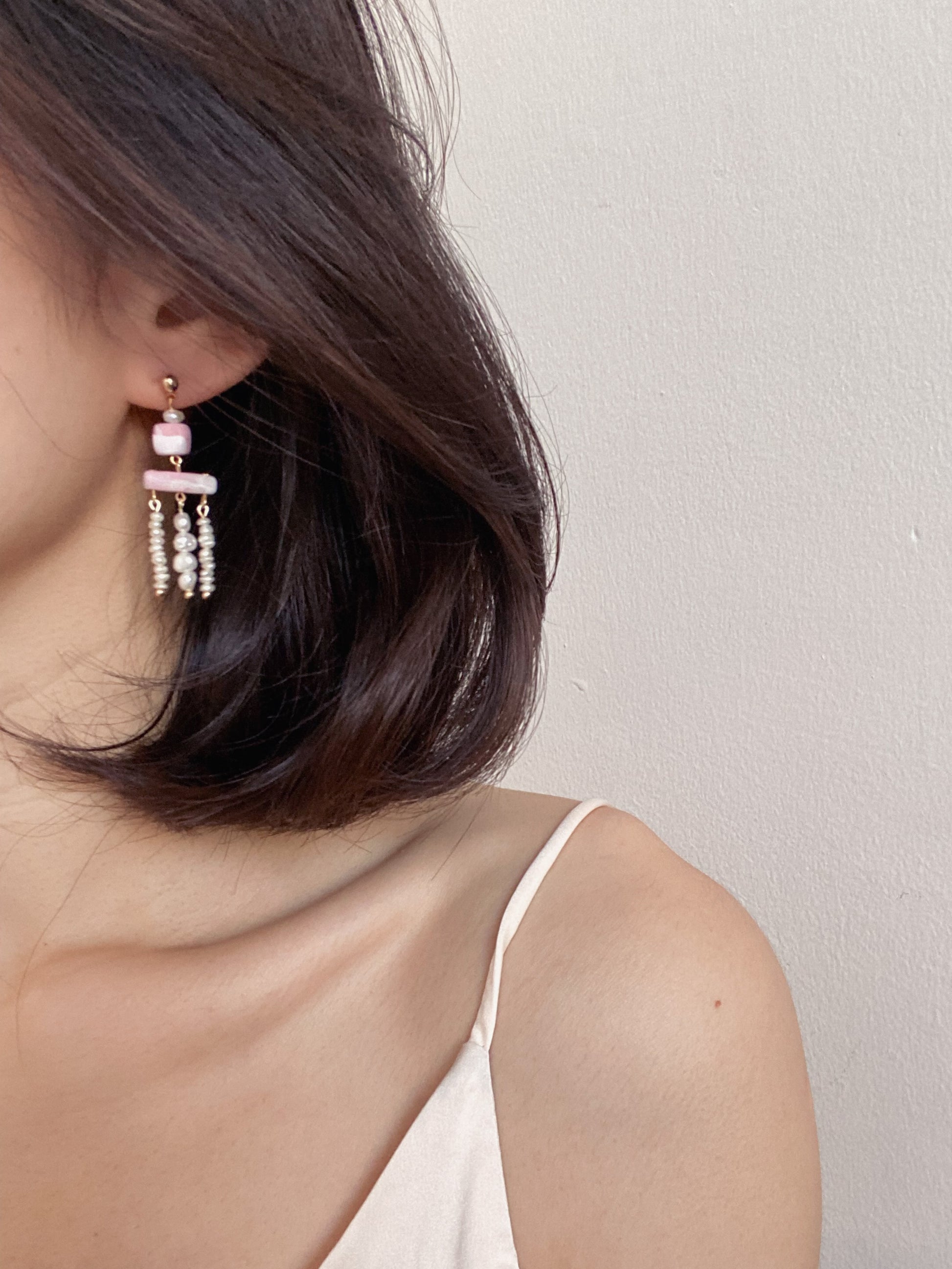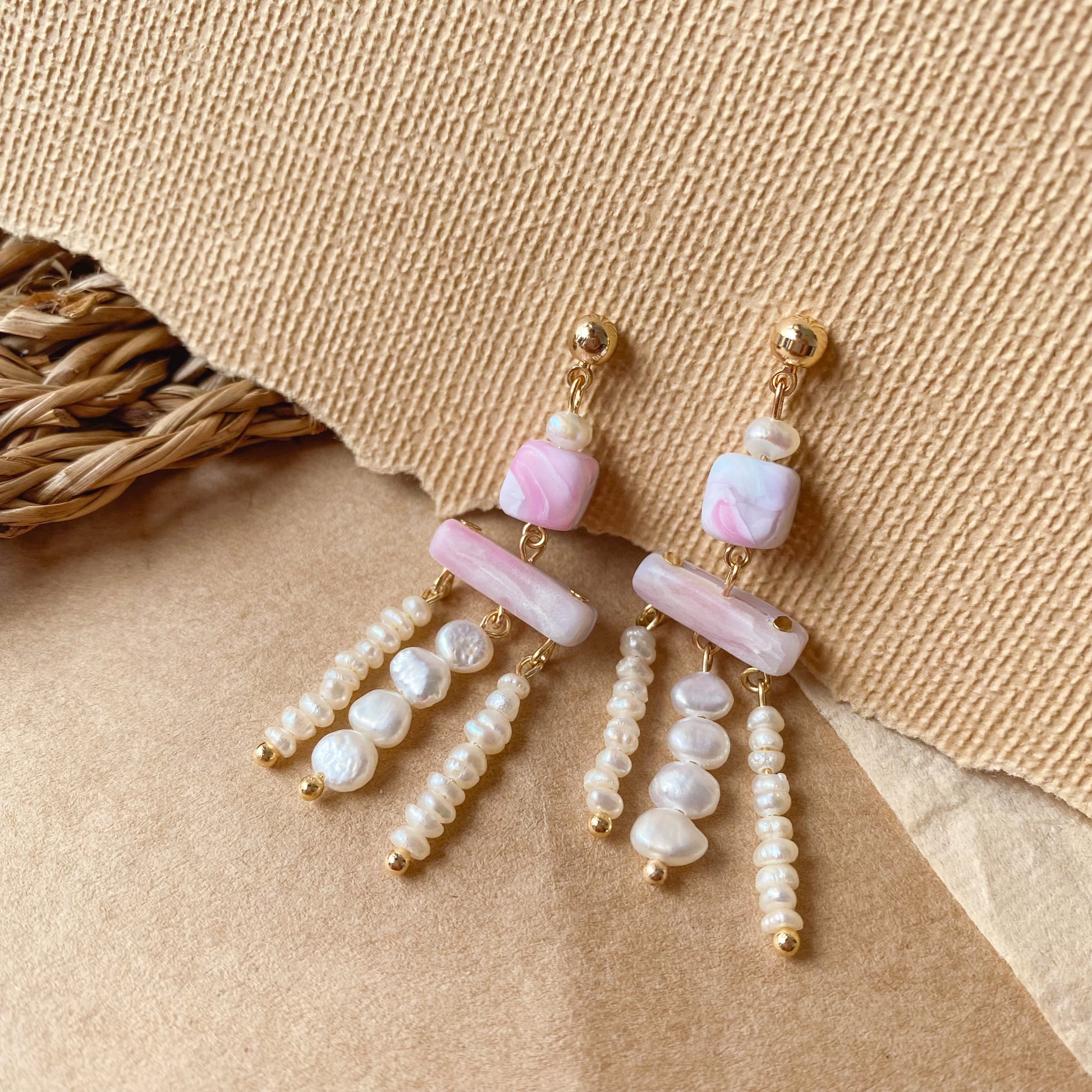 ⋆ Made from polymer clay, genuine freshwater pearls and 14K gold-plated studs