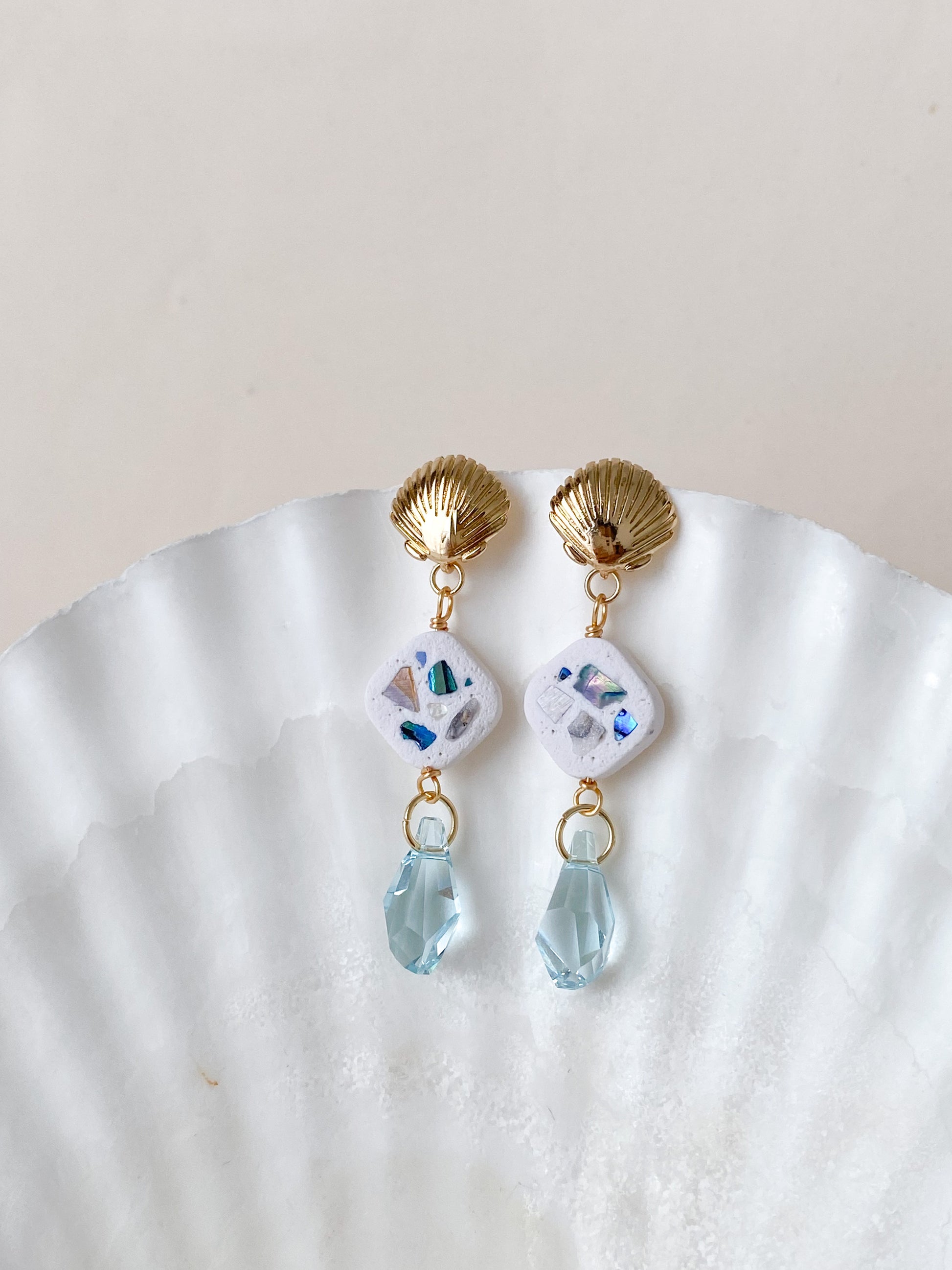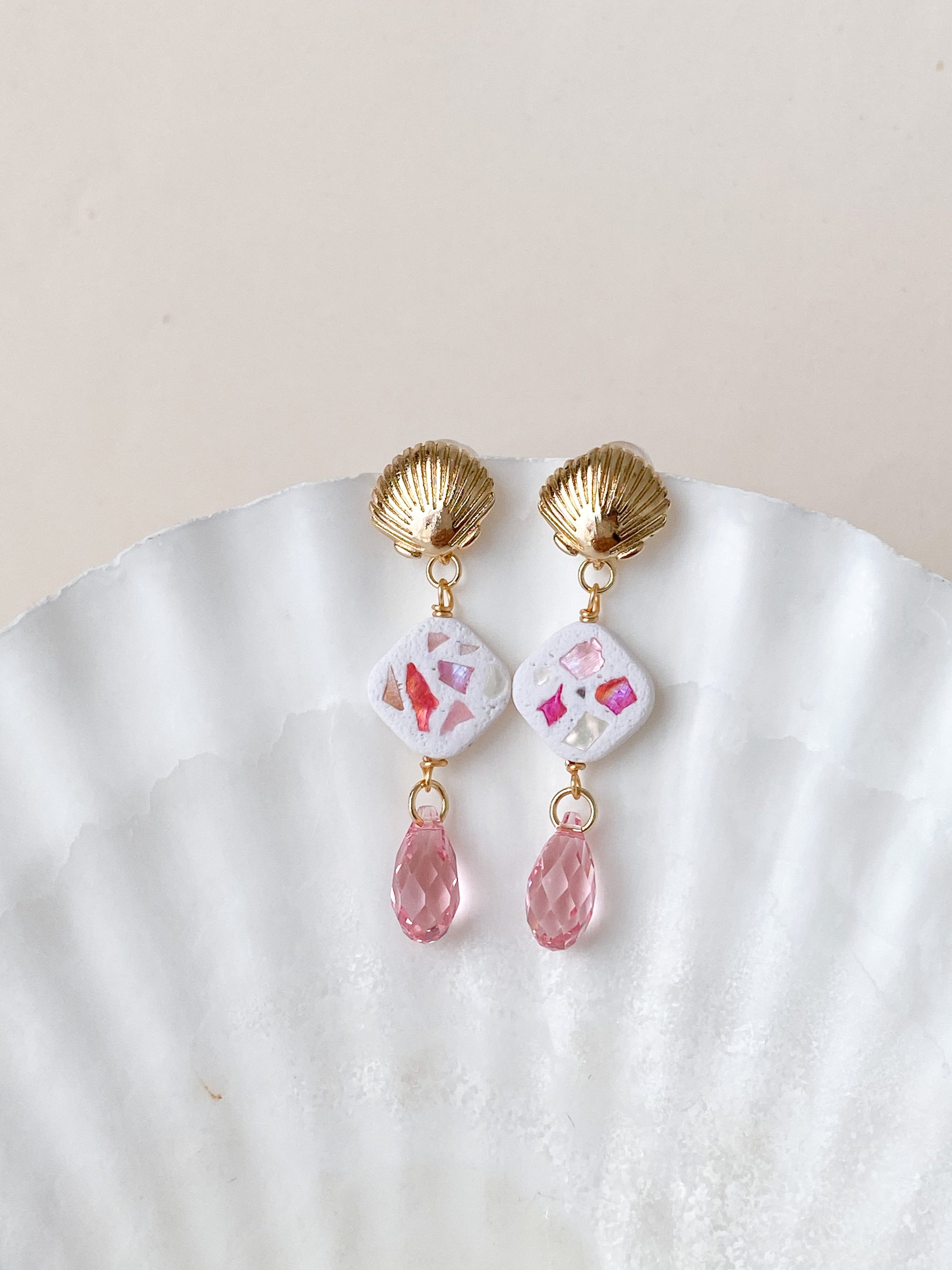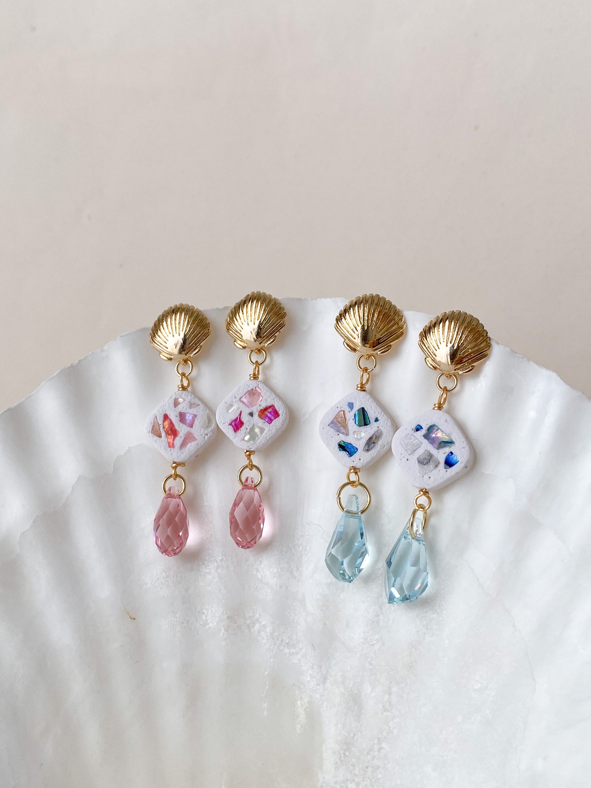 ⋆ Made from polymer clay, natural shells, swarovski'crystals and 14K gold-plated over 925 sterling silver studs