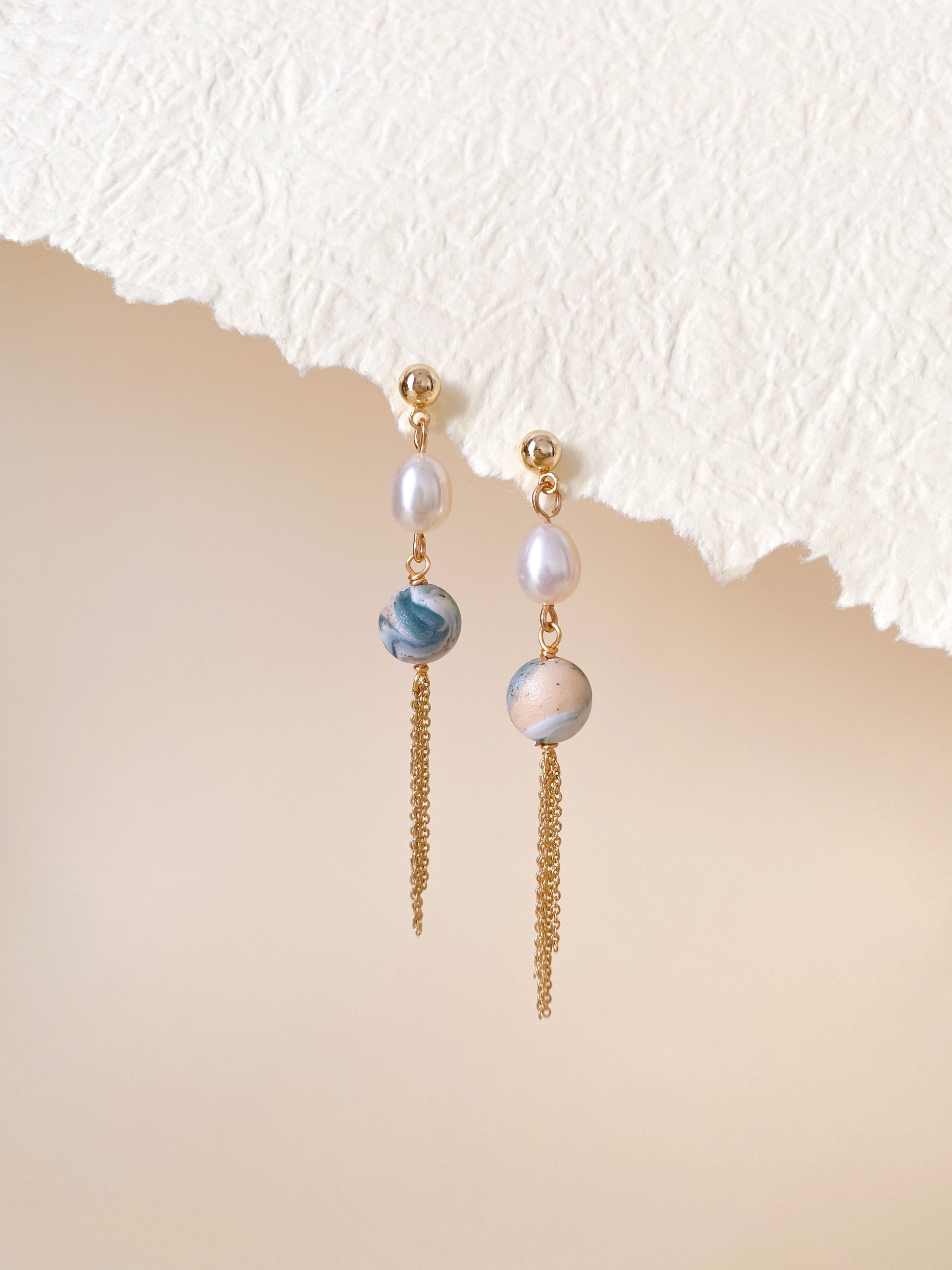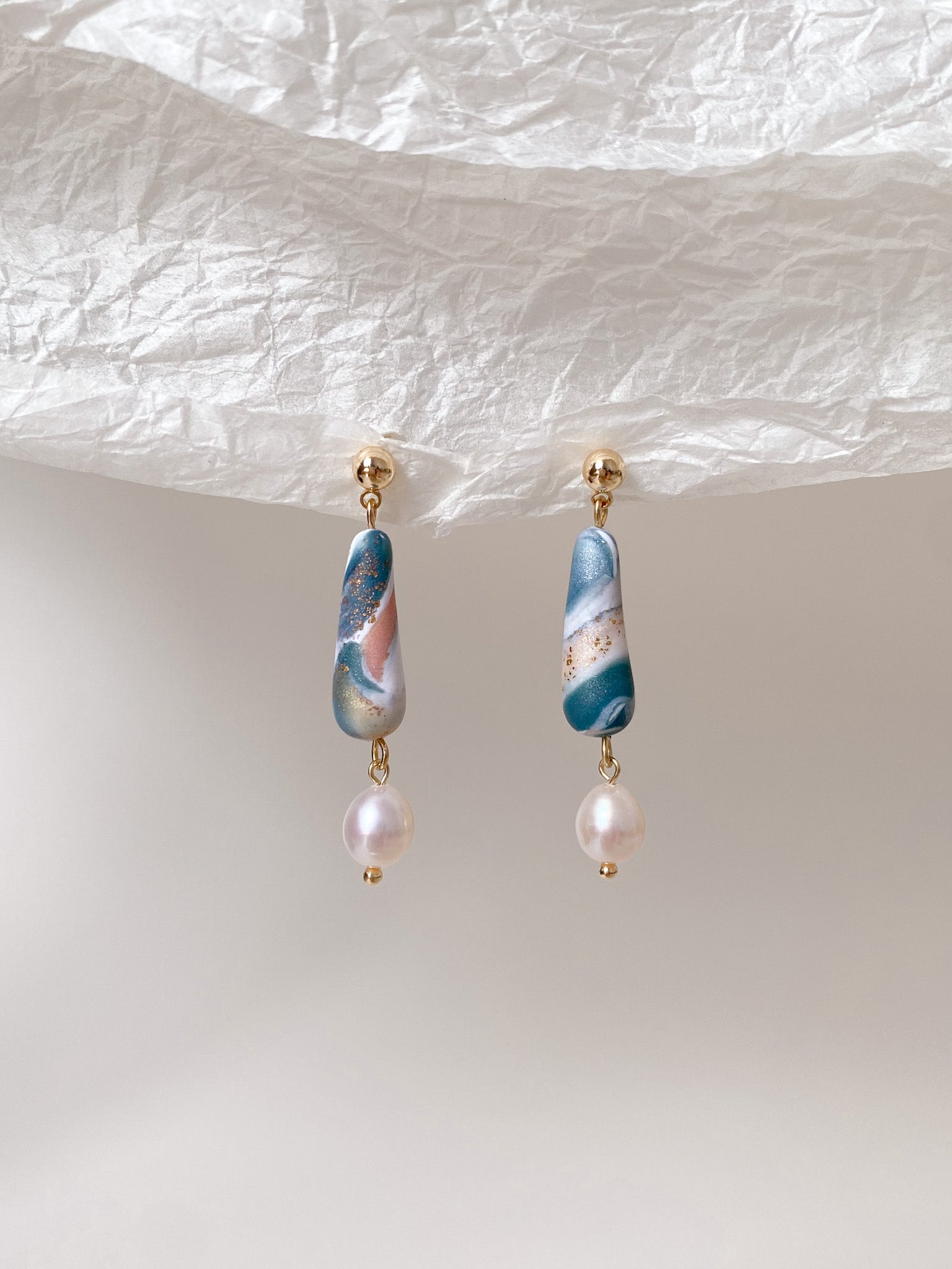 ⋆ Made from polymer clay, freshwater pearls and 14k gold plated studs