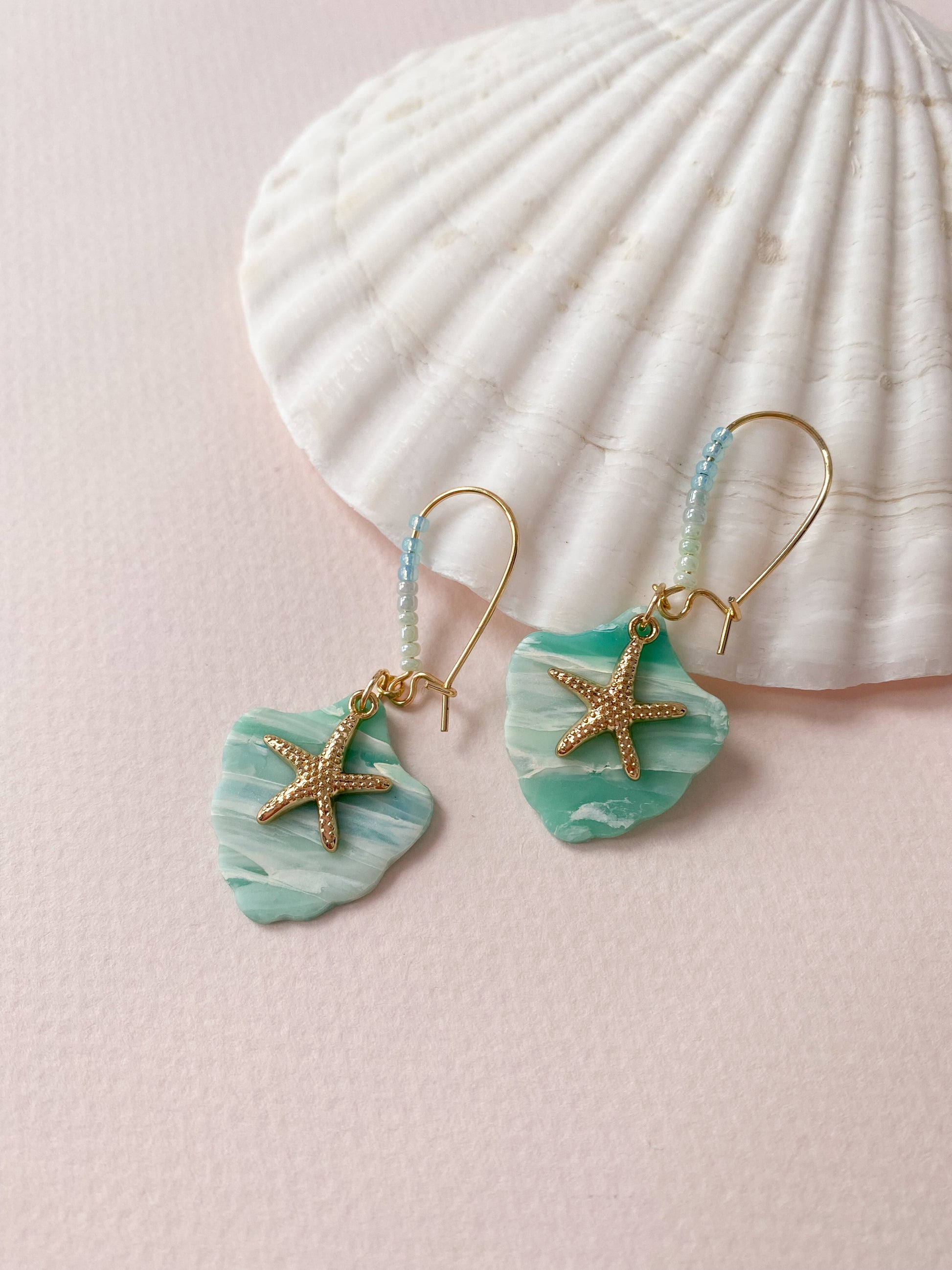 ⋆ Made from polymer clay, seed beads, 14K gold-plated charms and hooks