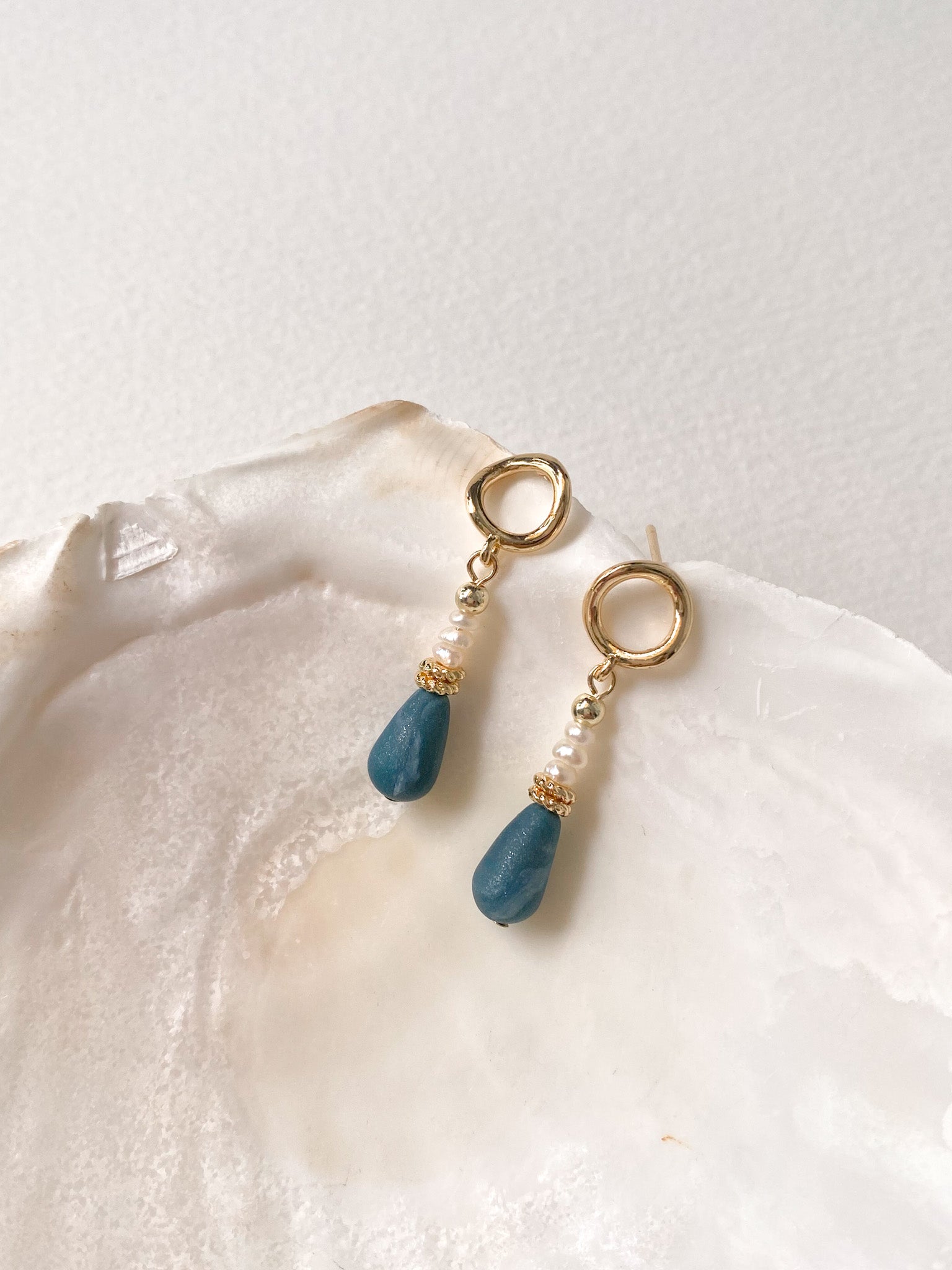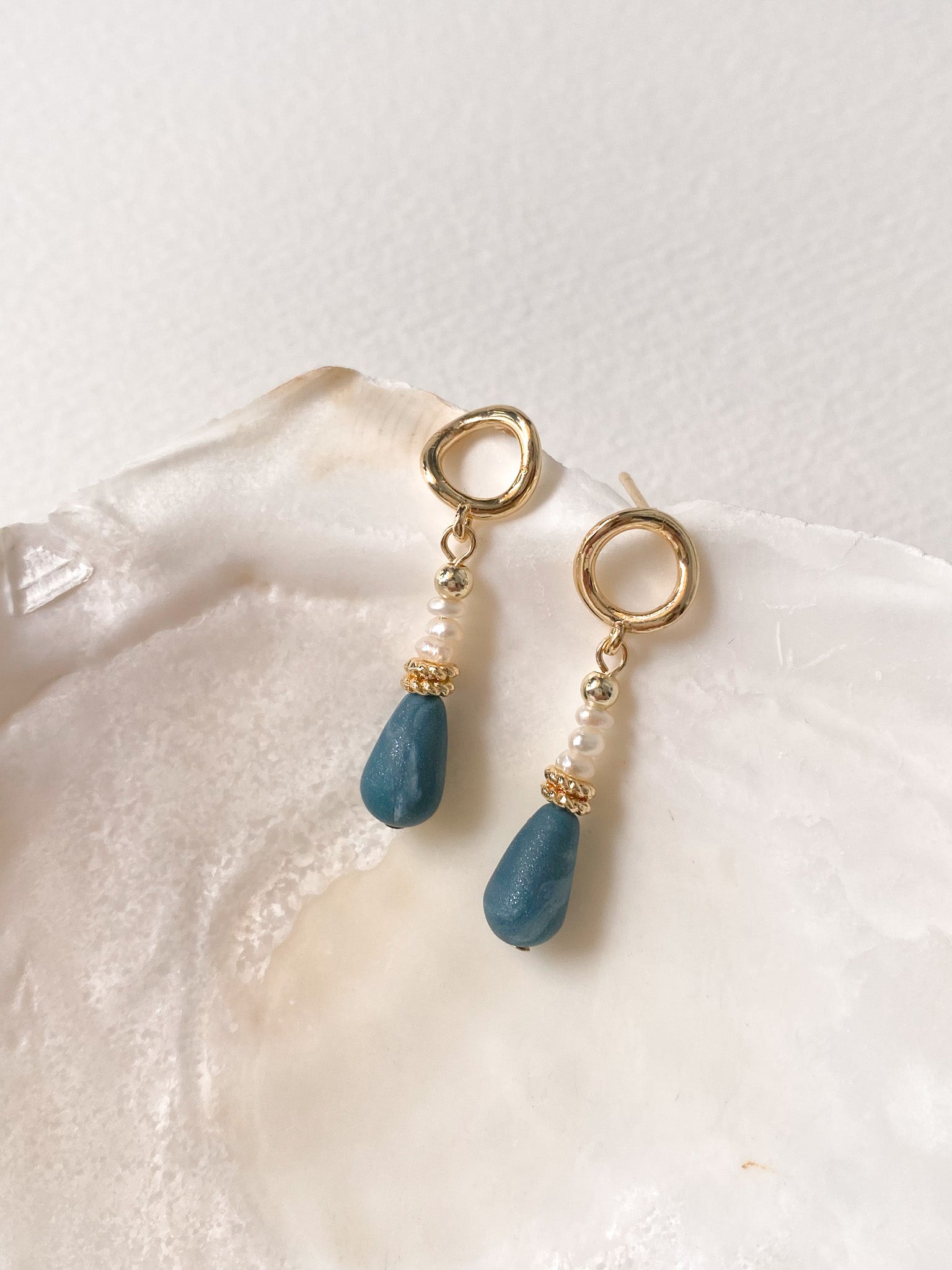 ⋆ 14K gold-plated studs, polymer clay and freshwater pearls