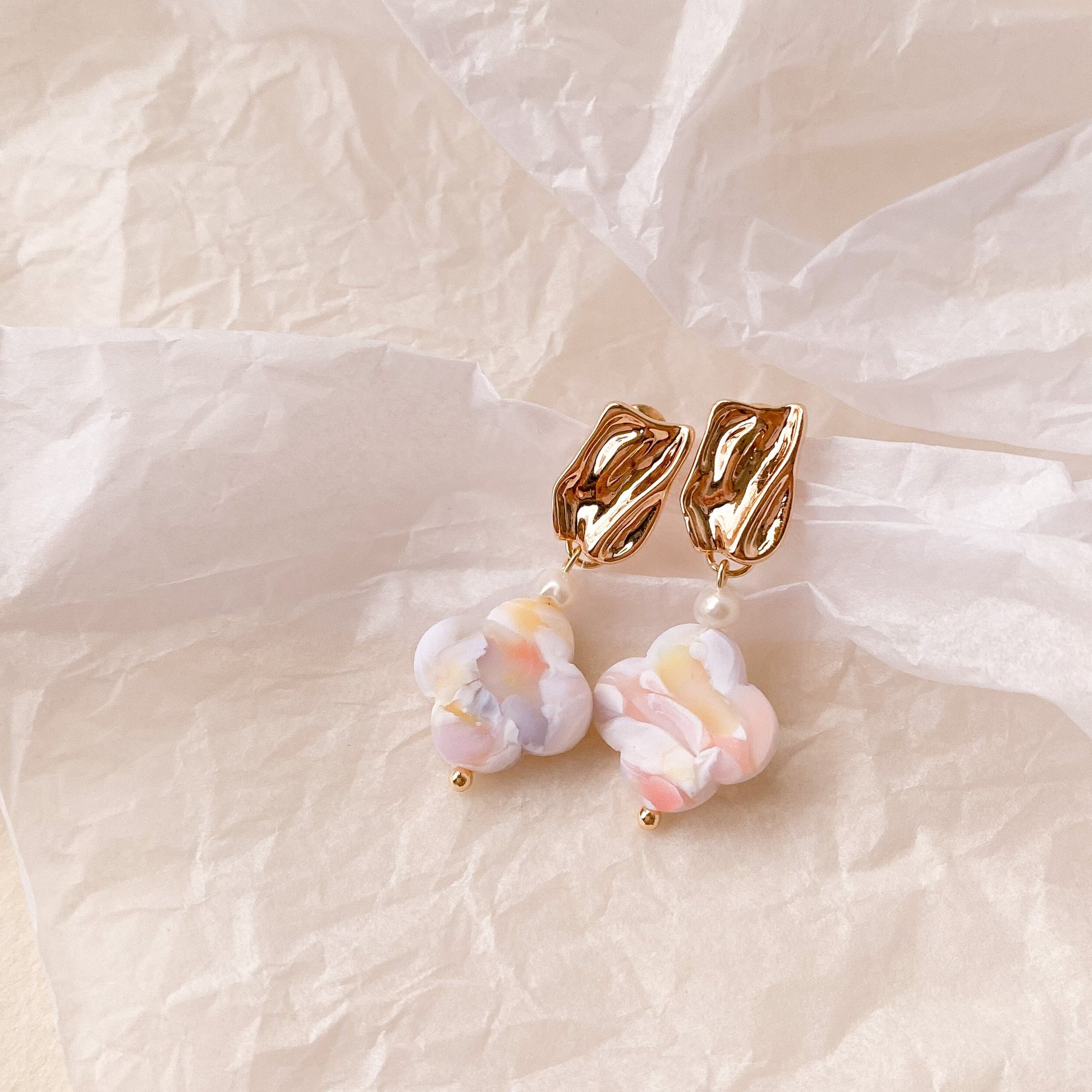 ⋆ Made from polymer clay, genuine freshwater pearls and 14K gold plated studs
