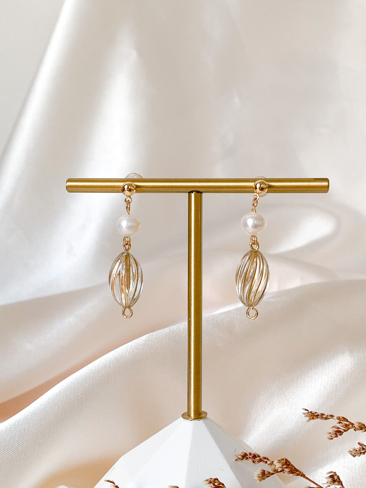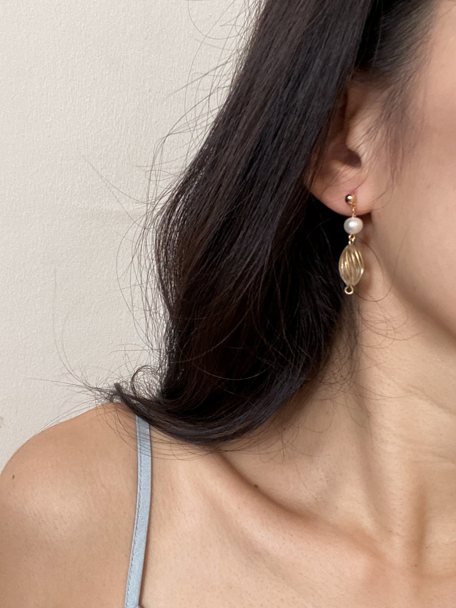 ⋆ 14K gold-plated studs, Czech beads and freshwater pearls