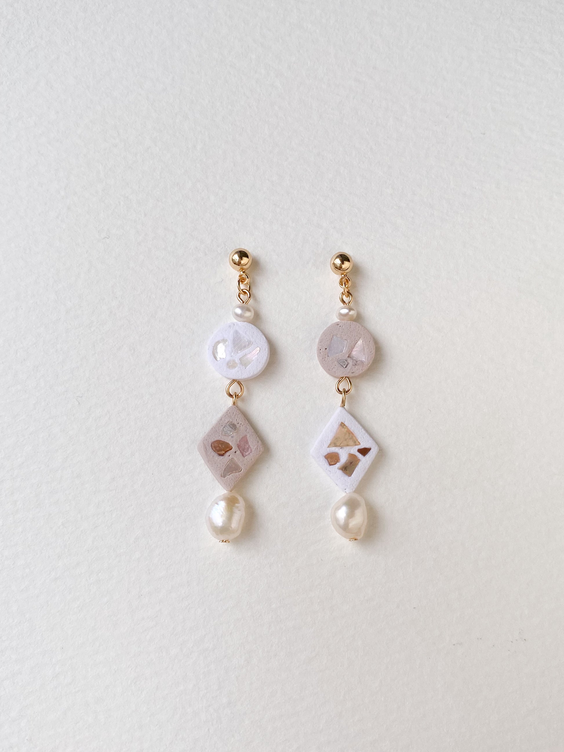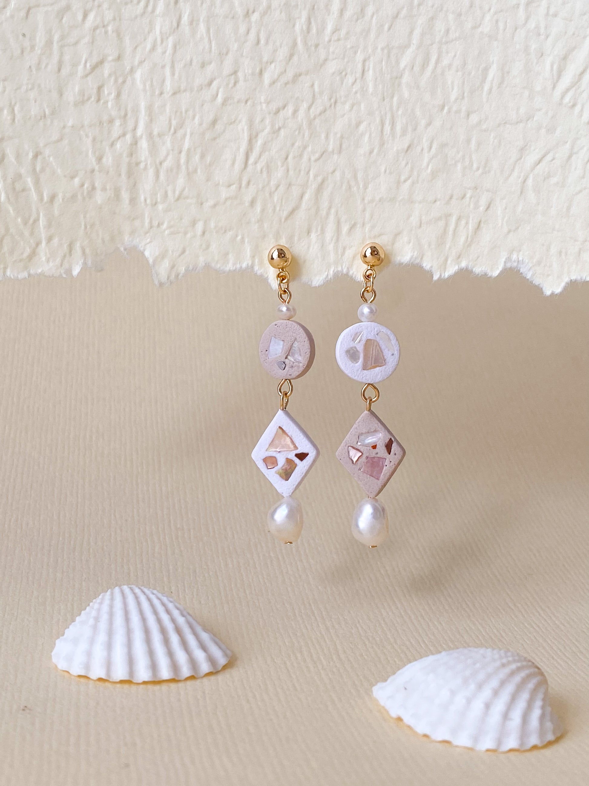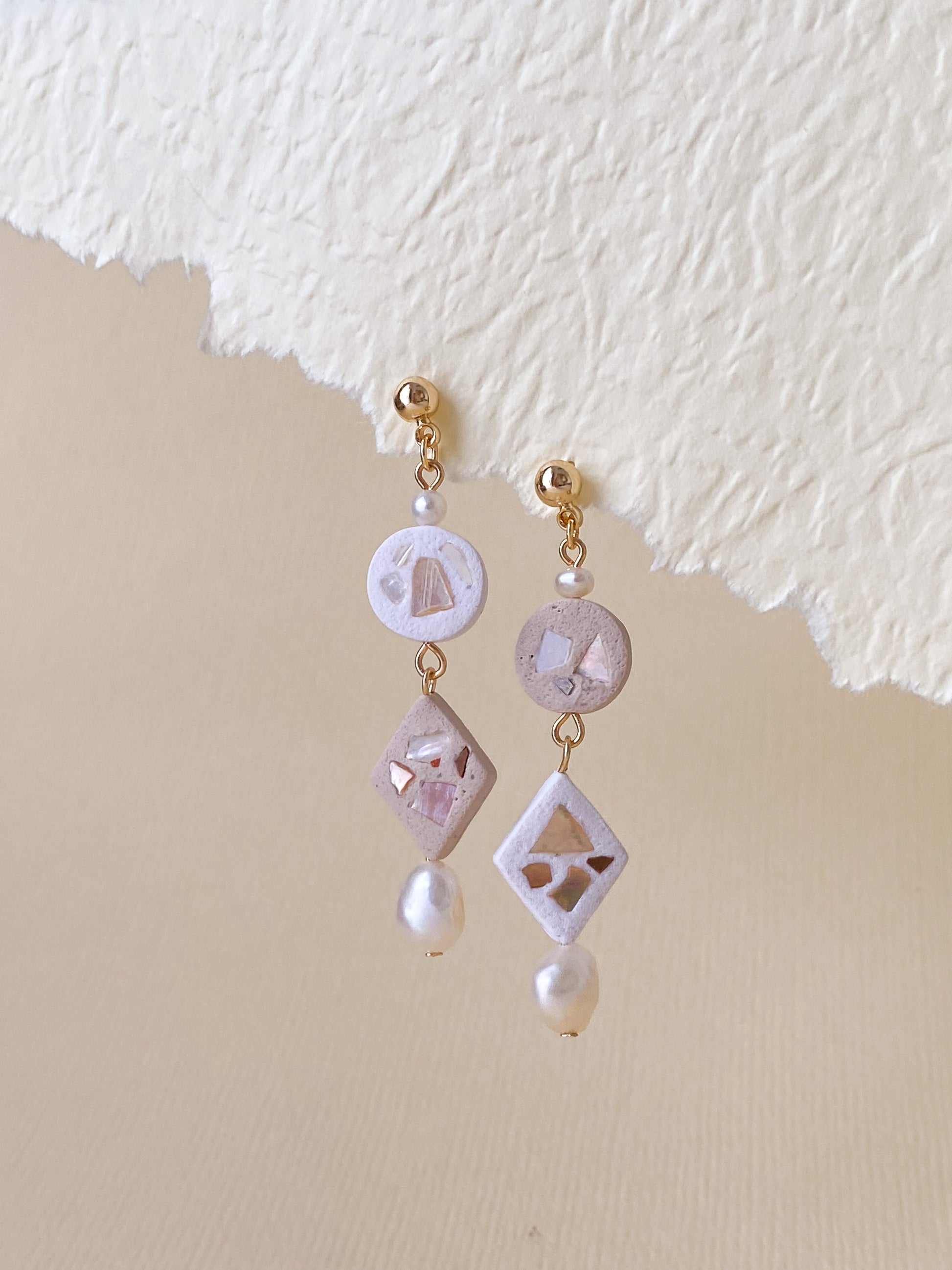 ⋆ Made from polymer clay, natural shells, freshwater pearls and 14K gold-plated studs