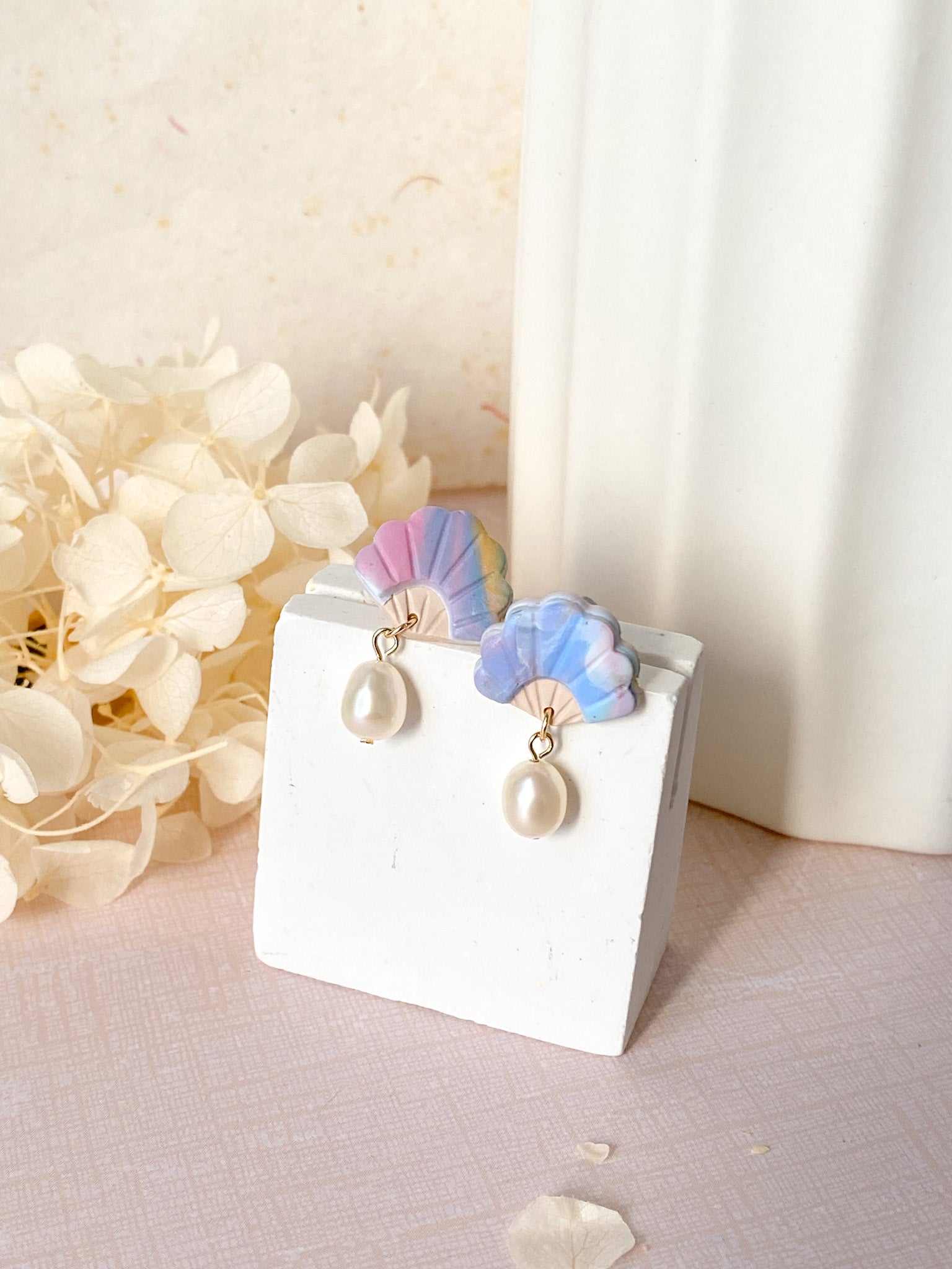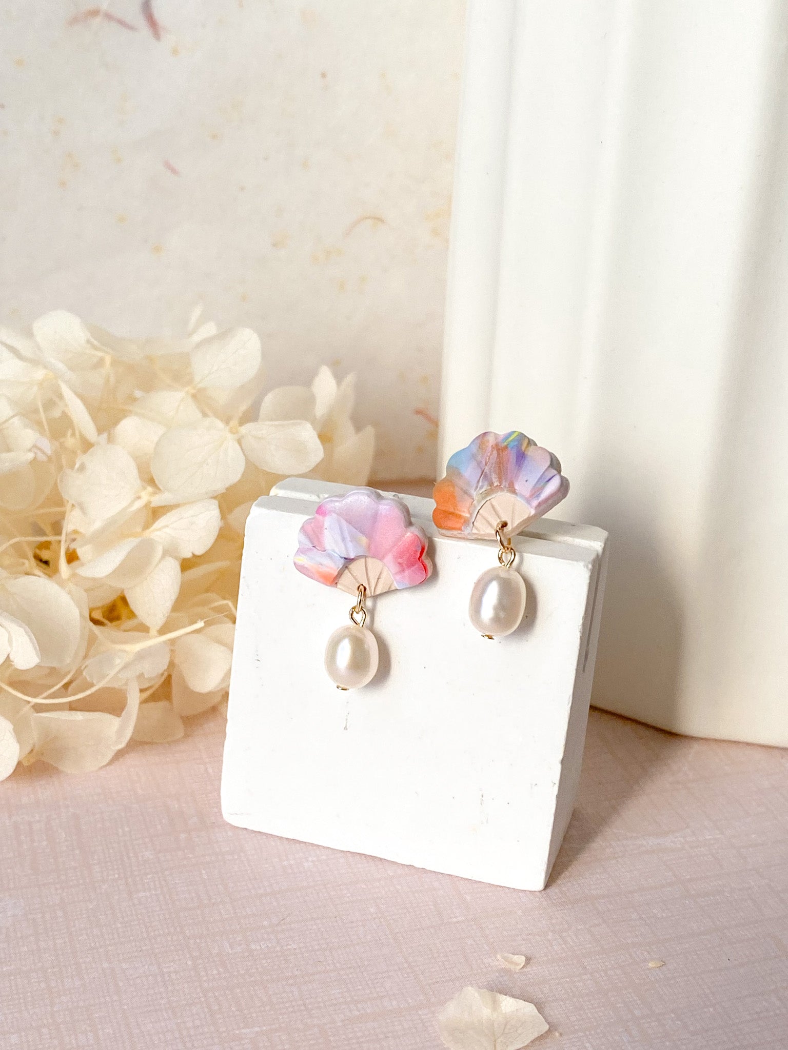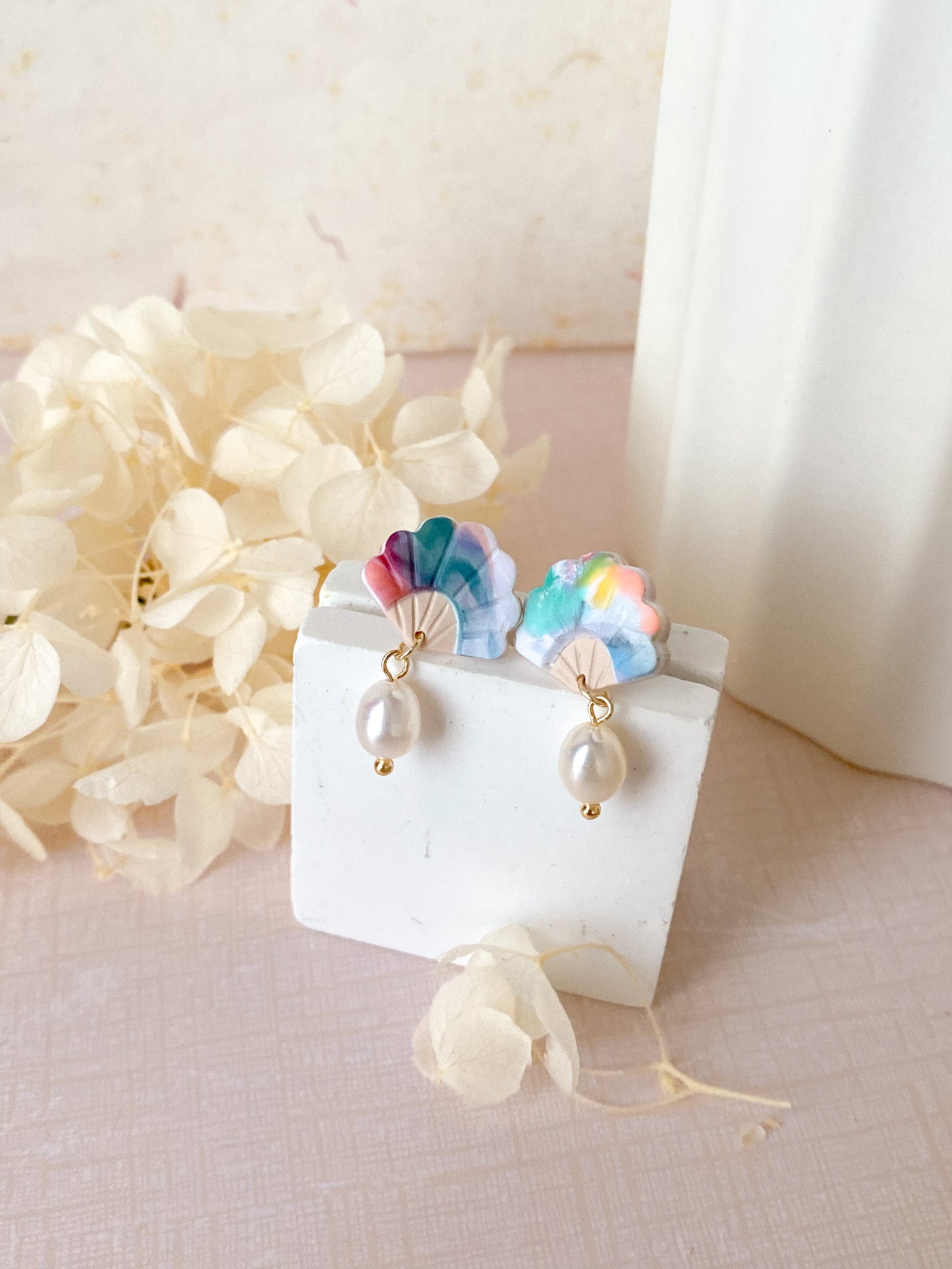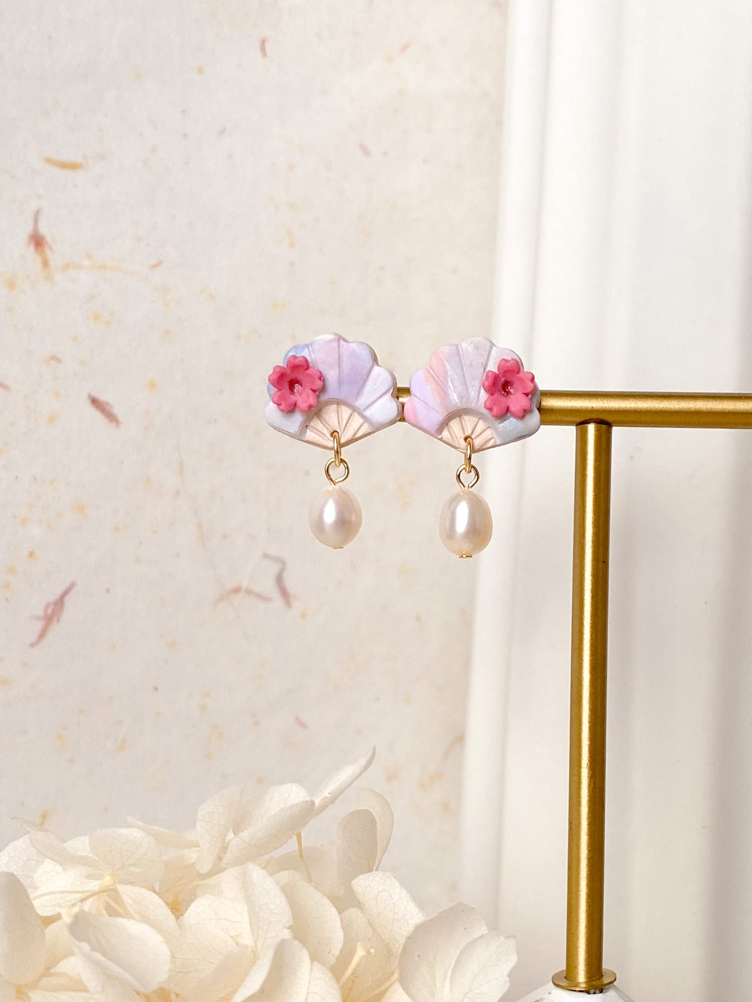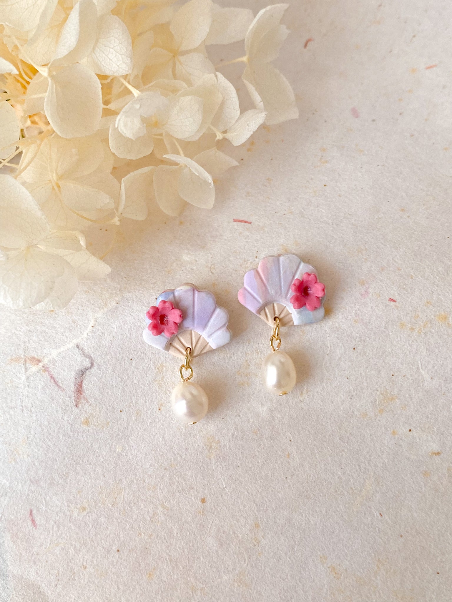 ⋆ Made from polymer clay, freshwater pearls and 14k gold plated studs