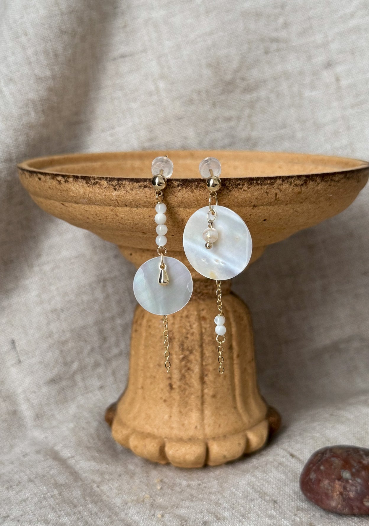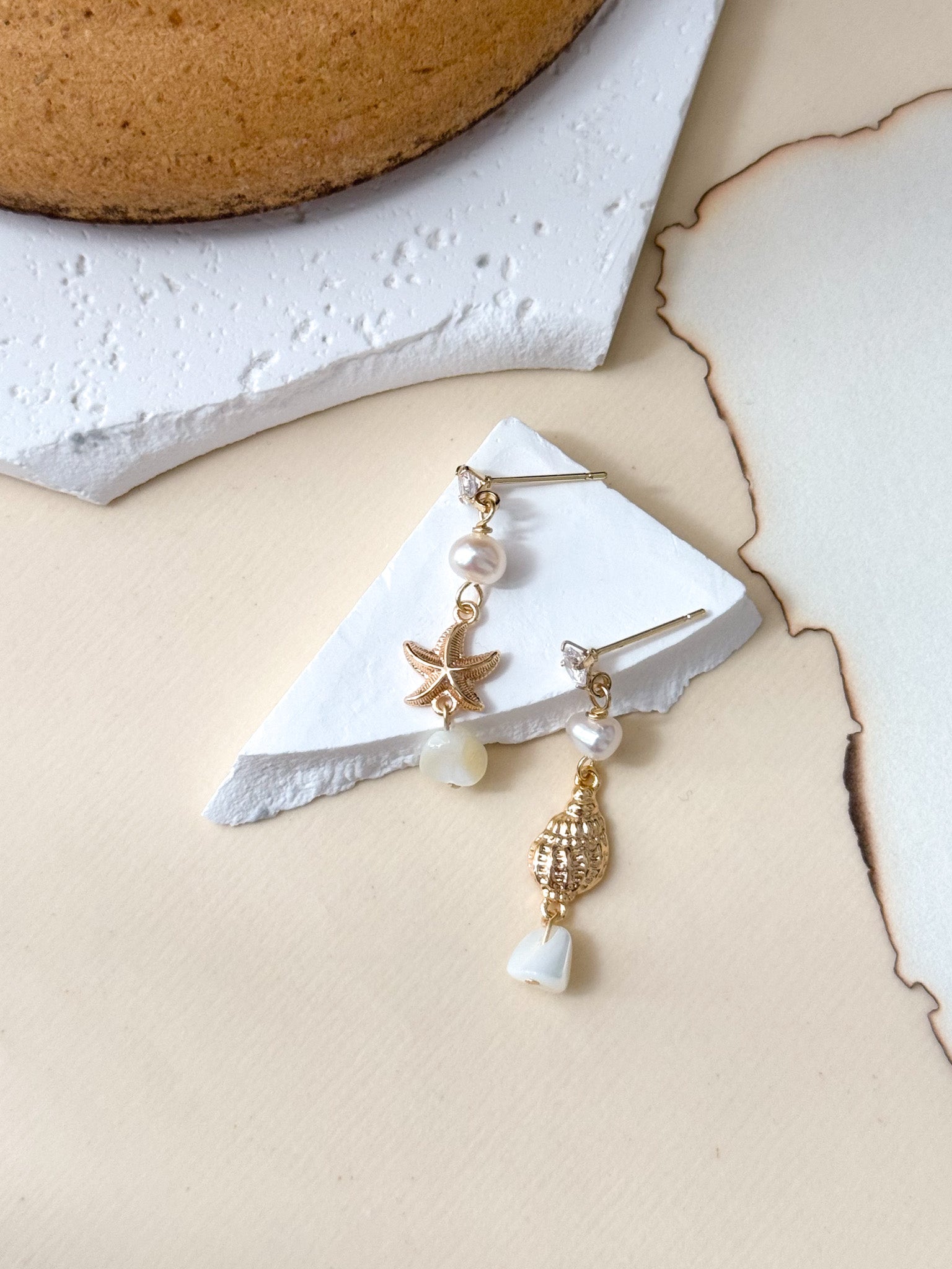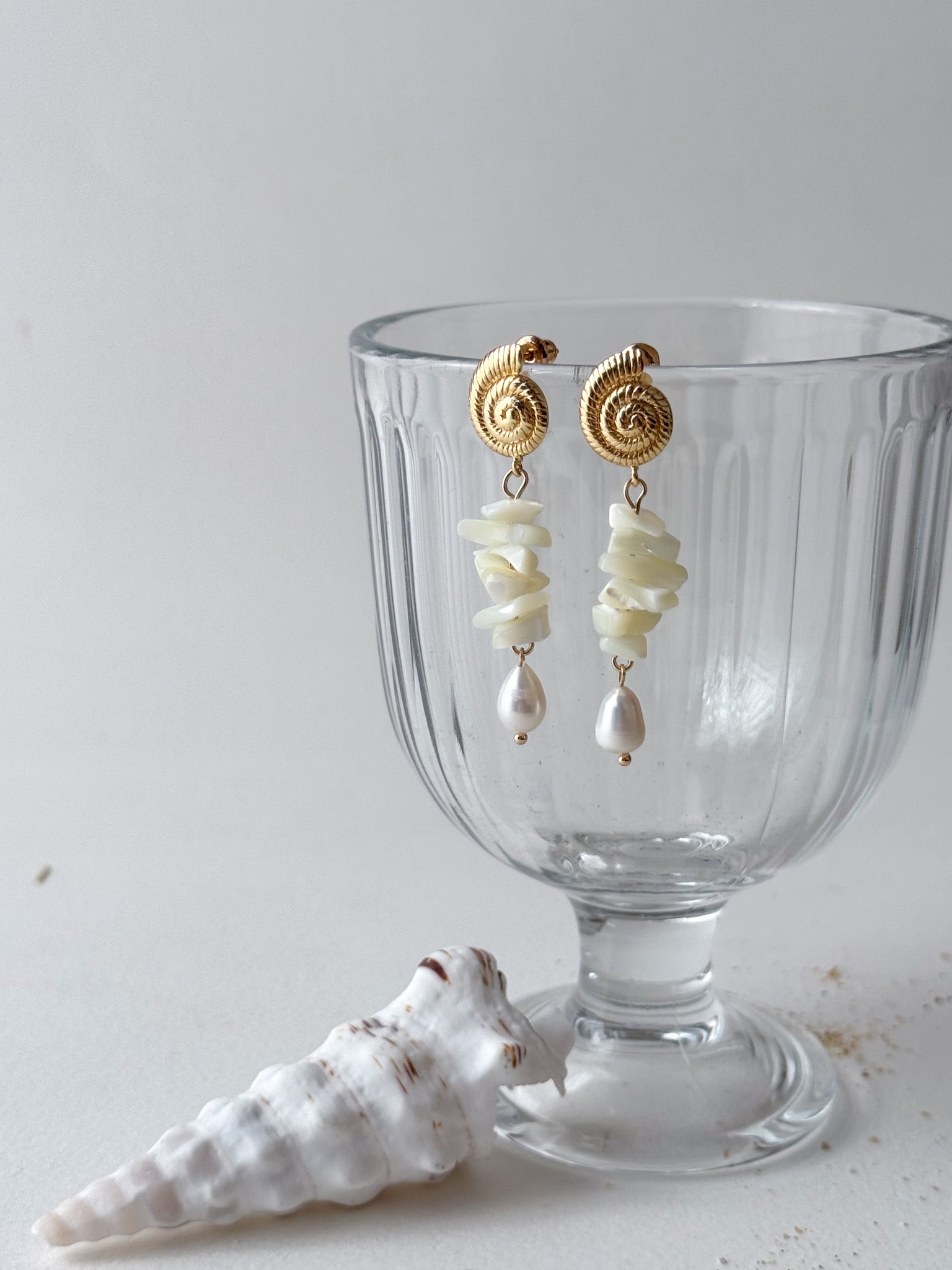 ⋆ Made from natural shell, freshwater pearls and 14k gold plated studs