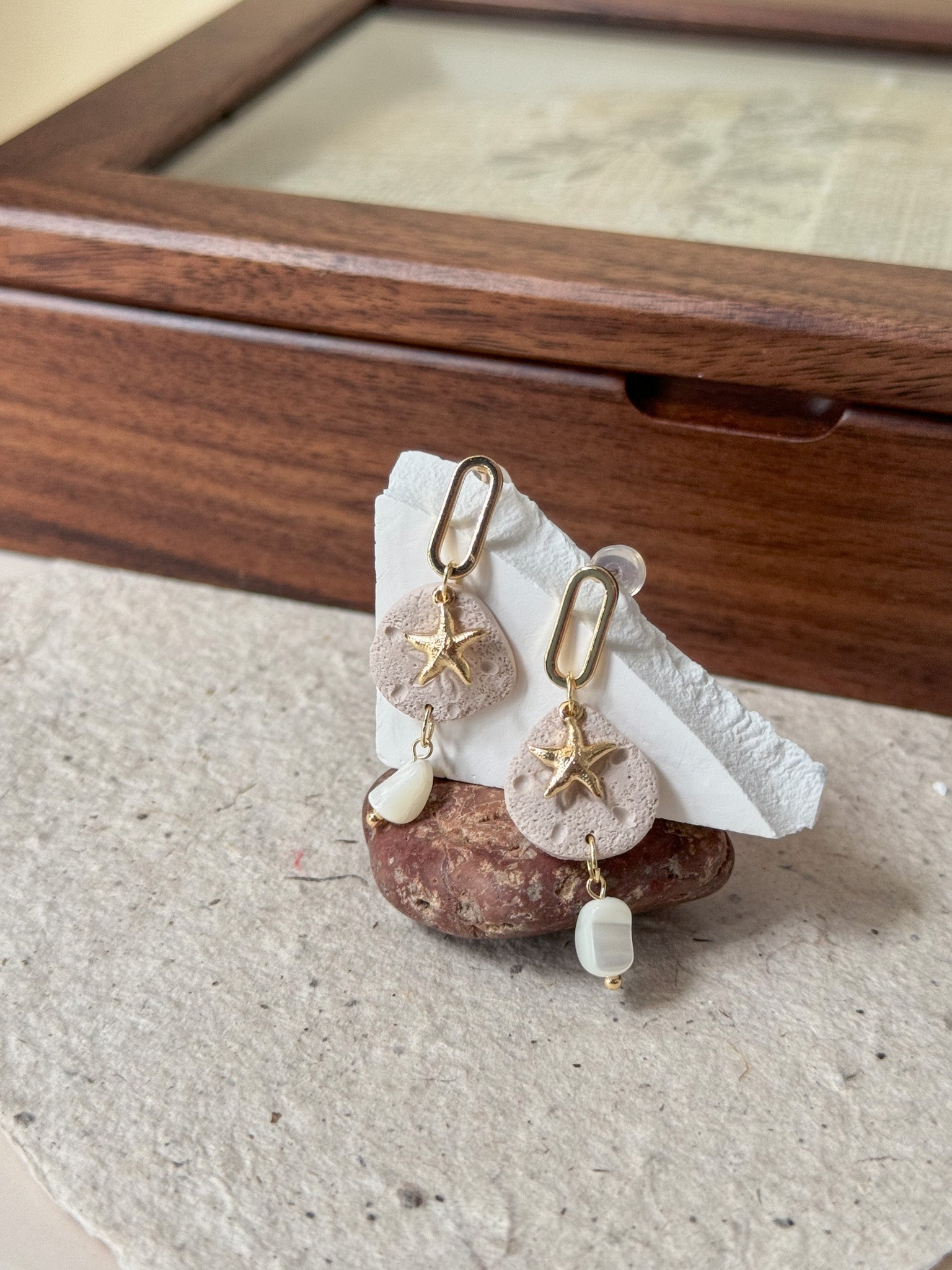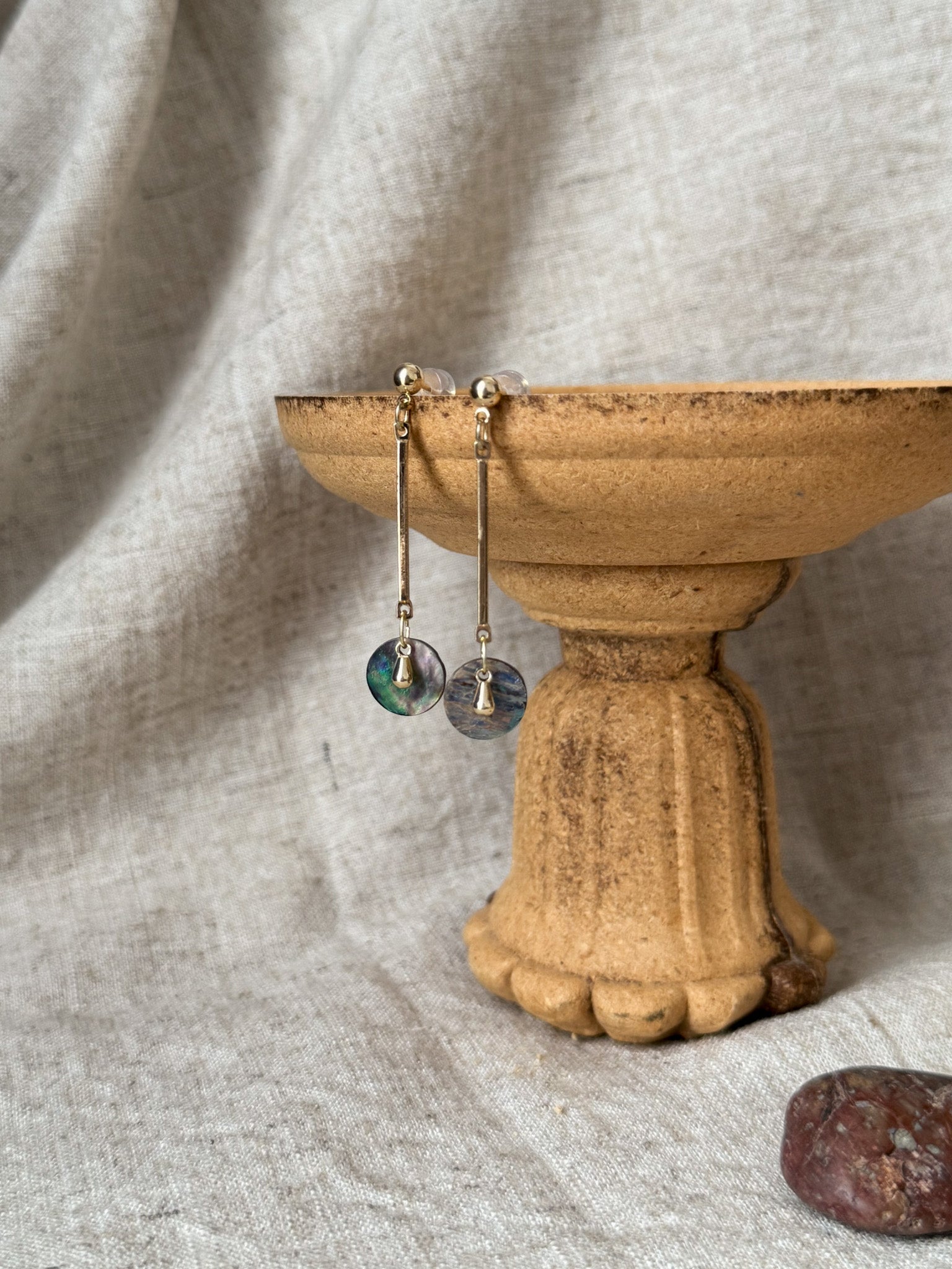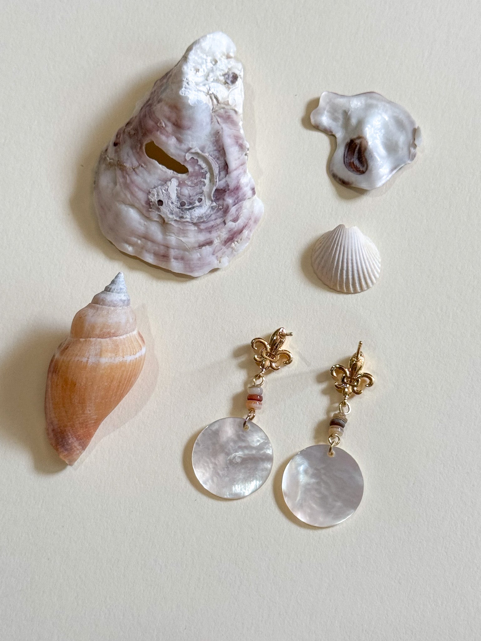 ⋆ Made from natural shell, freshwater pearls and 14k gold plated studs
