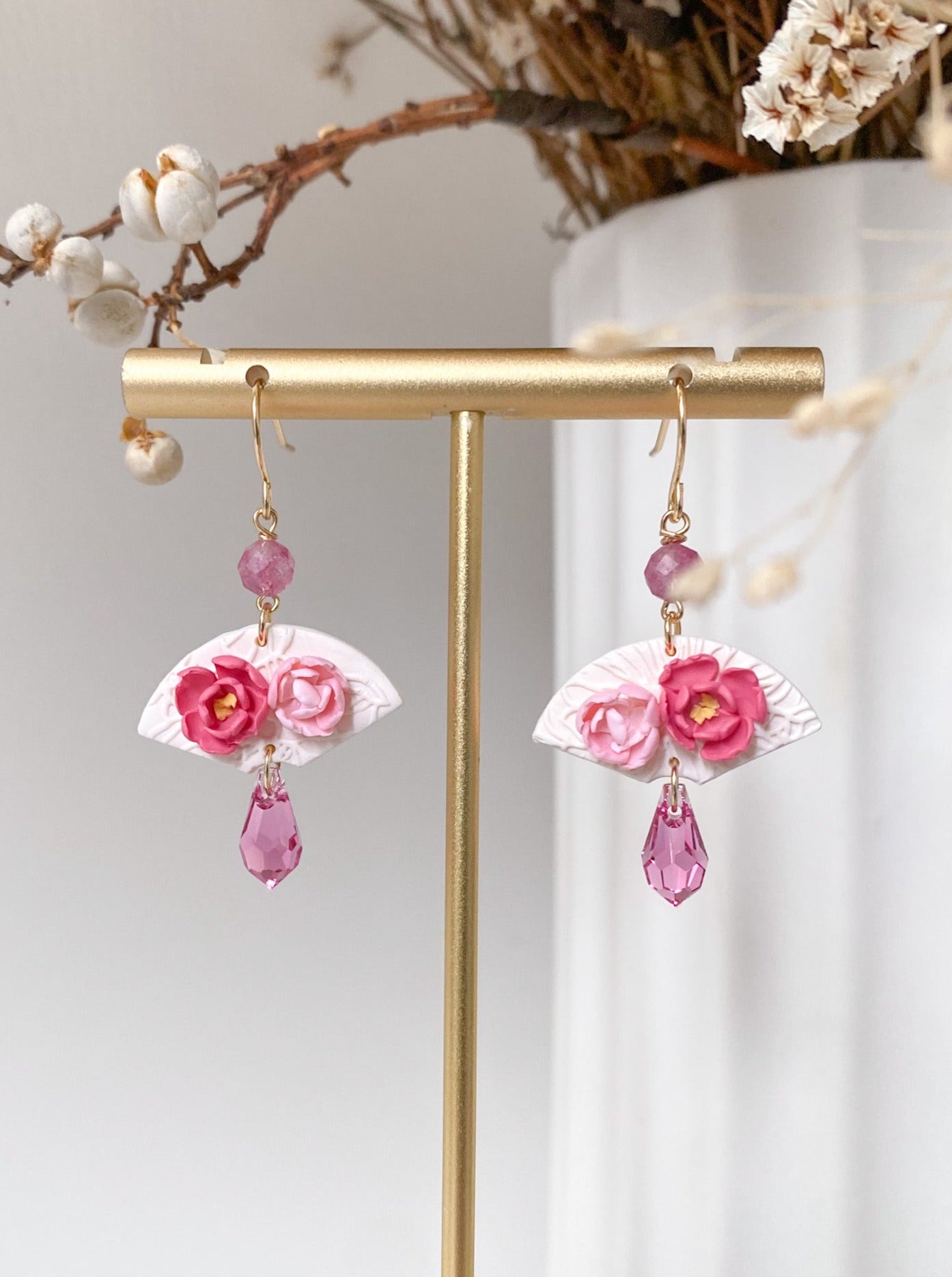 ⋆ Made from polymer clay, strawberry quartz and 14k gold plated hooks