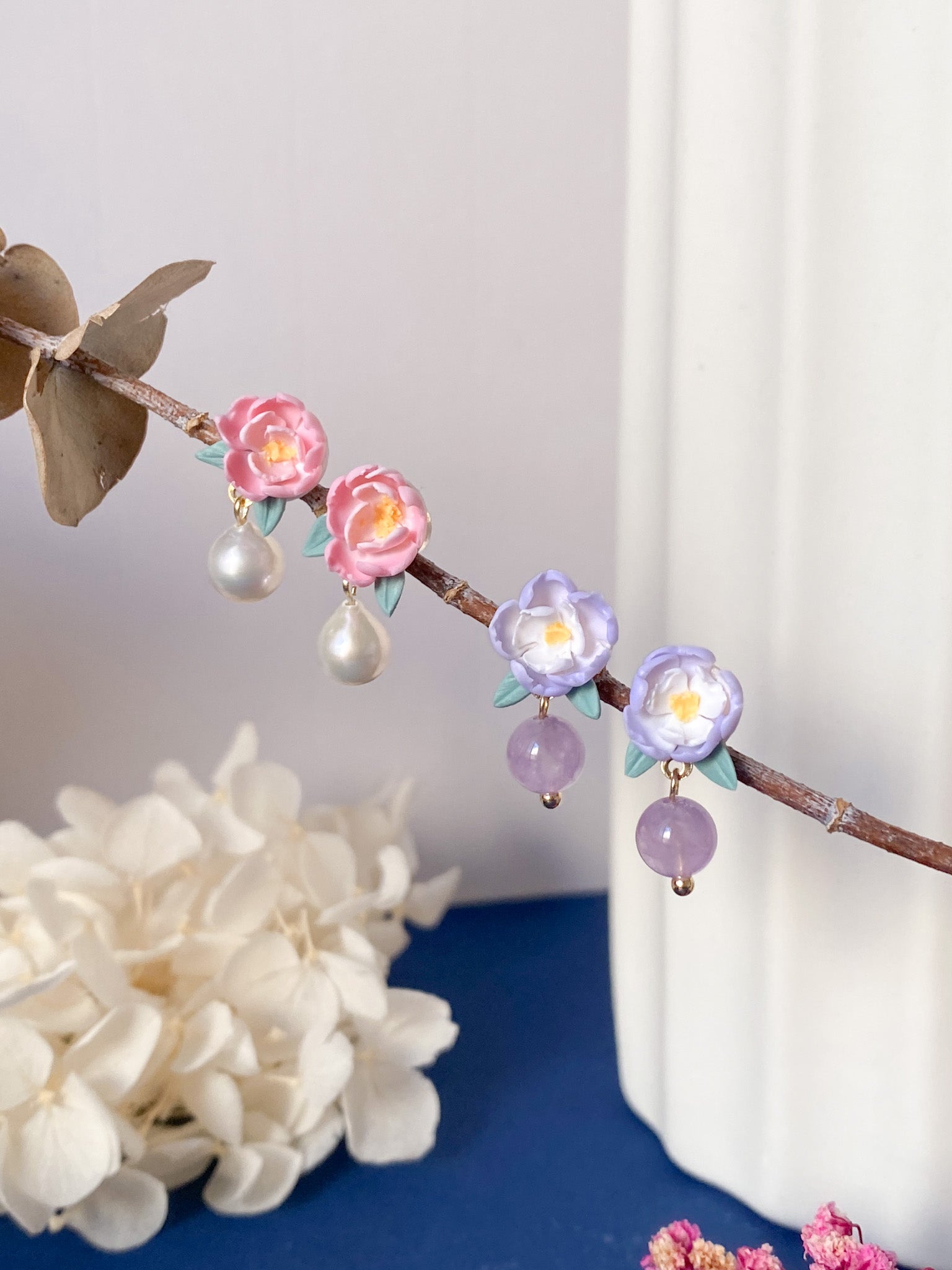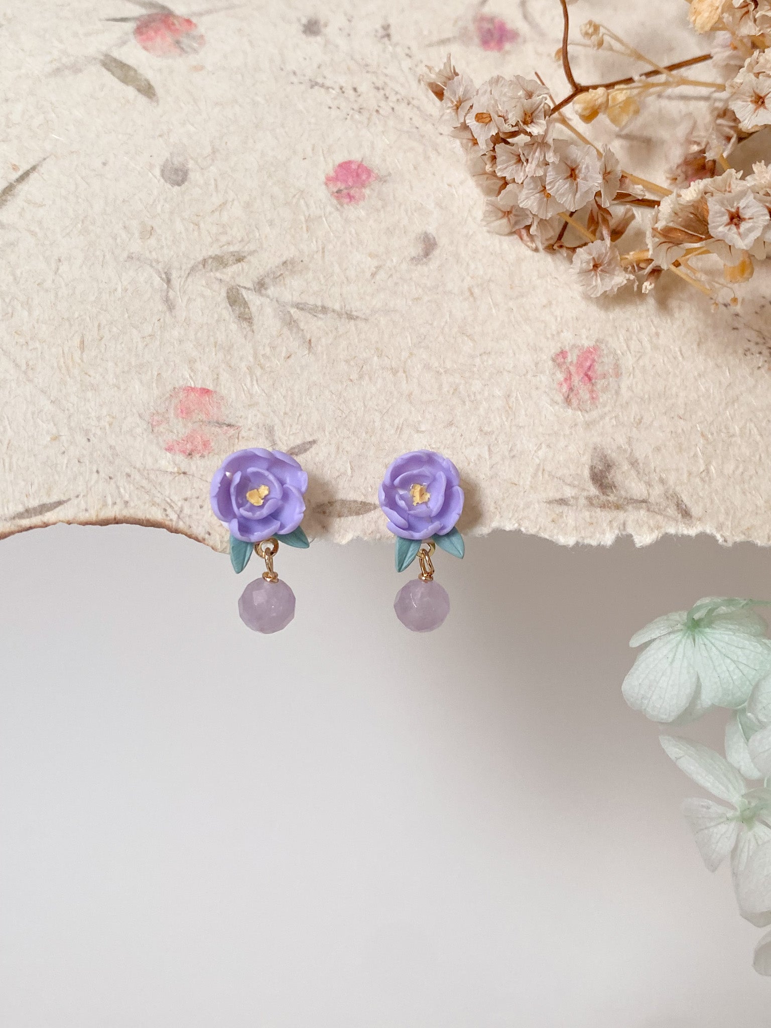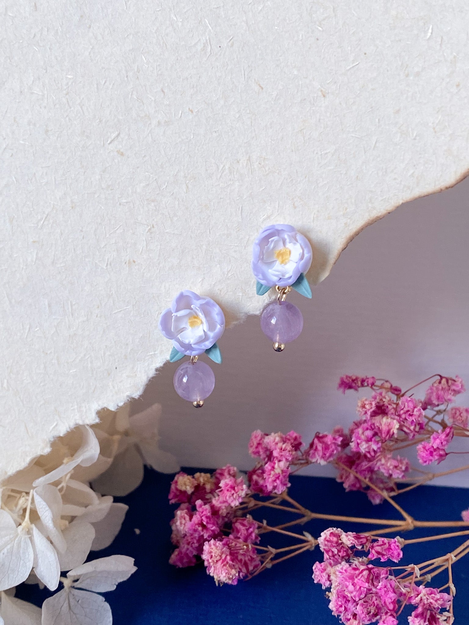 ⋆ Made from polymer clay, natural crystals/pearl and 14k gold plated studs