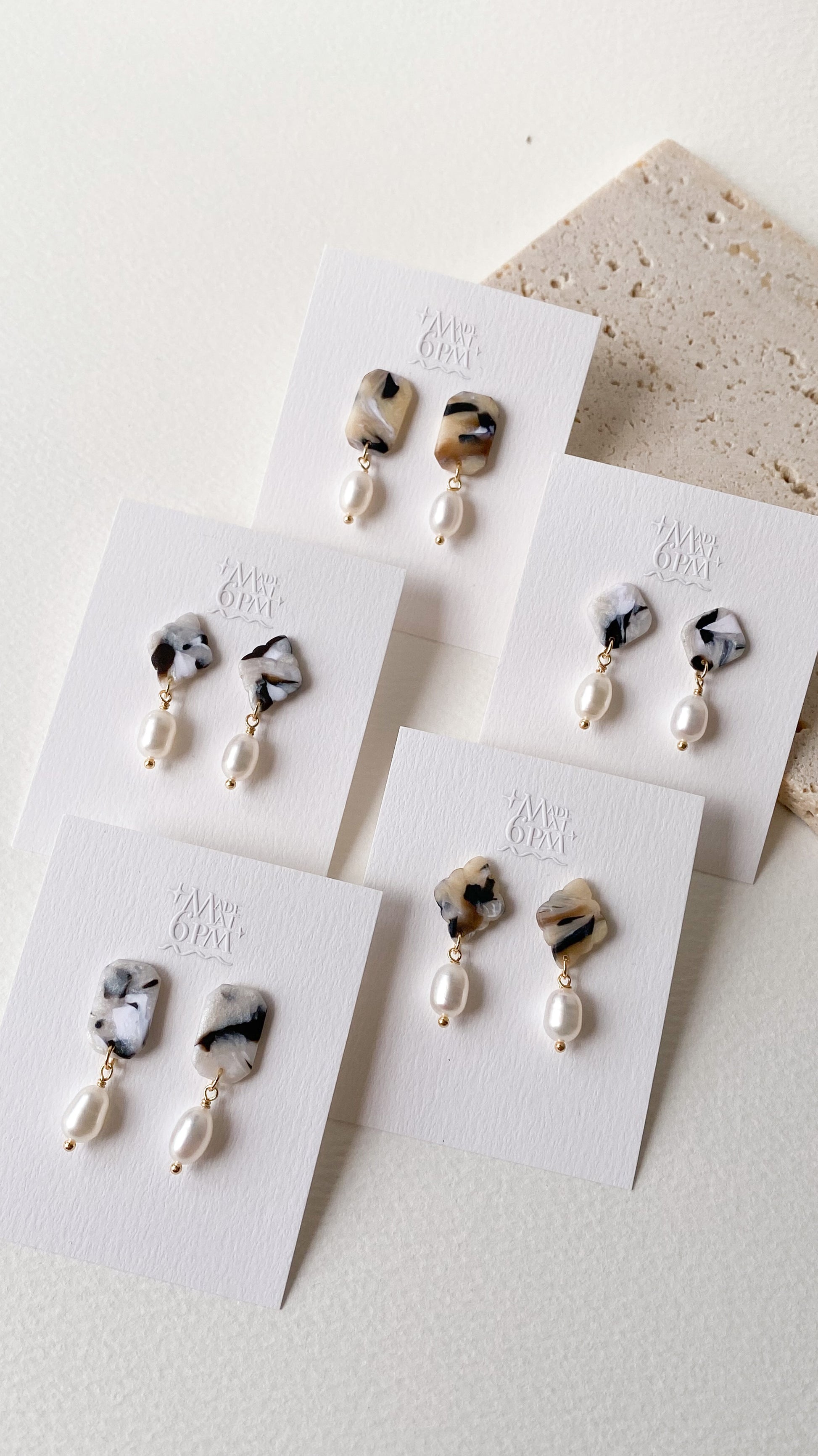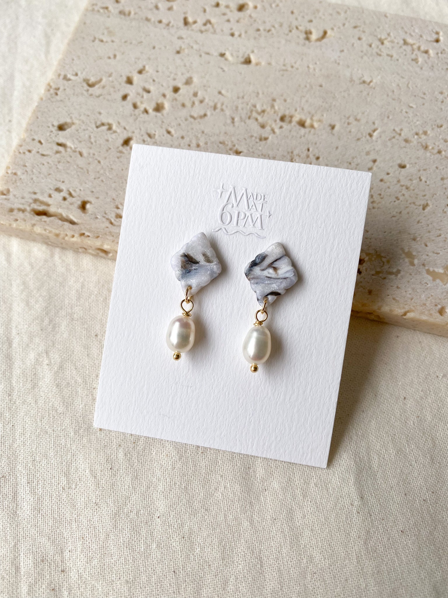 ⋆ Made from polymer clay, freshwater pearls and 14K gold-plated studs/stainless steel studs