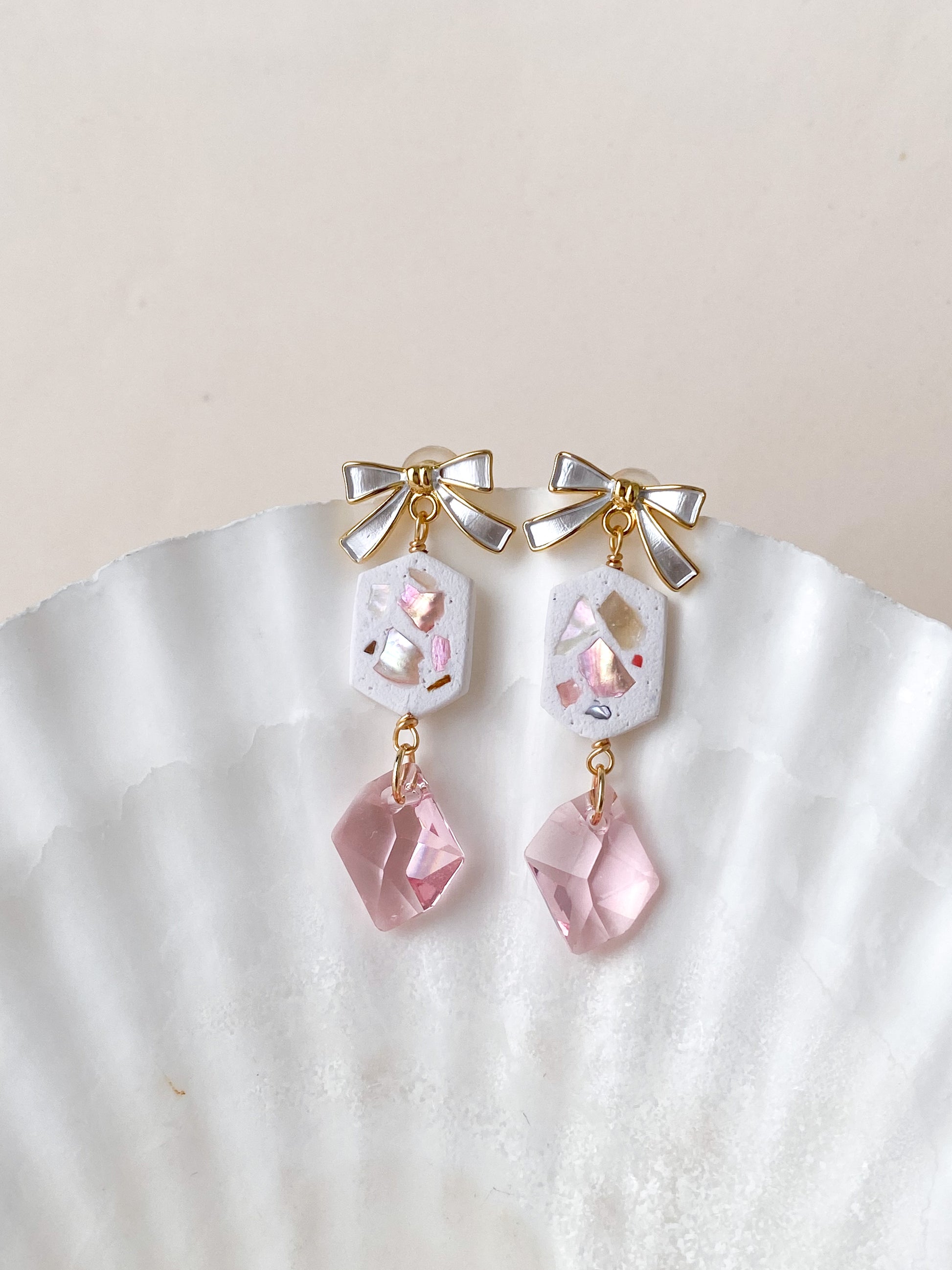 ⋆ Made from polymer clay, natural shells, Swarovski crystals and 14K gold-plated over 925 sterling silver studs