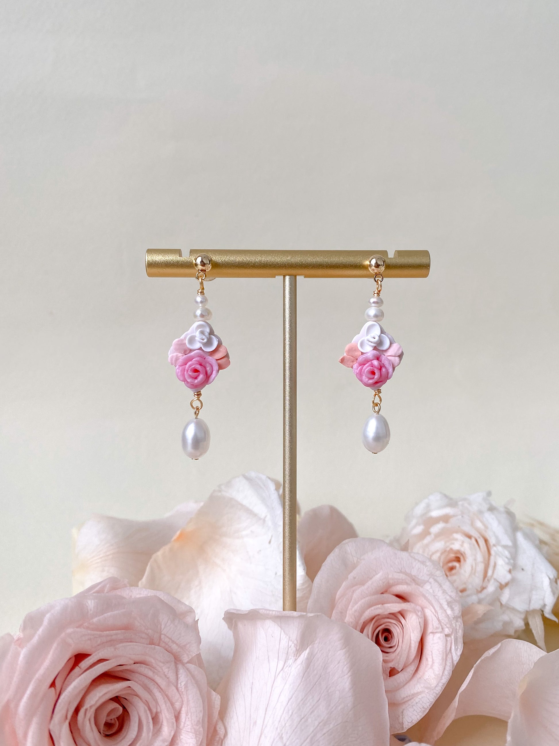 ⋆ Made from polymer clay, swarovski'crystals, freshwater pearls and 14K gold-plated ball studs