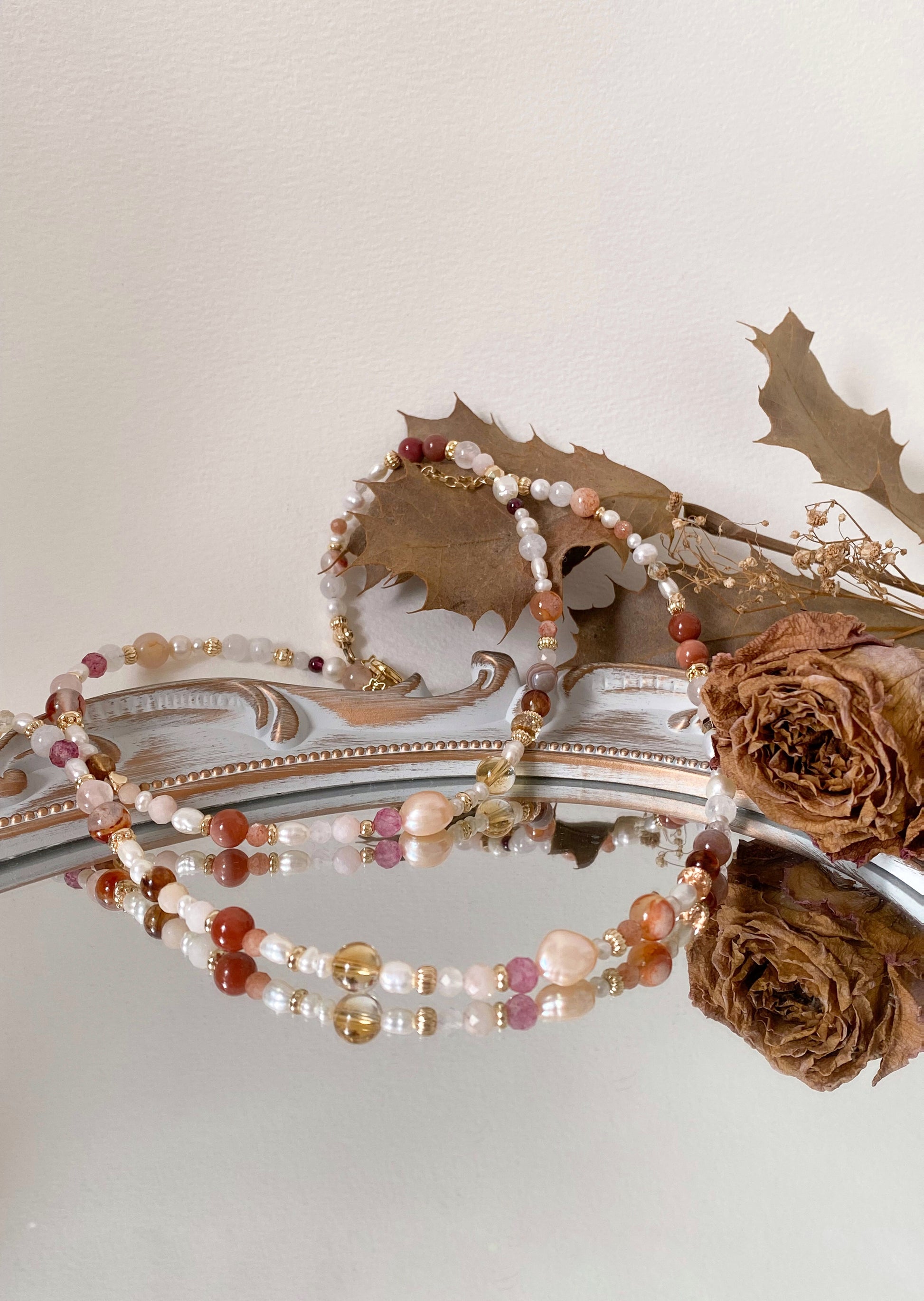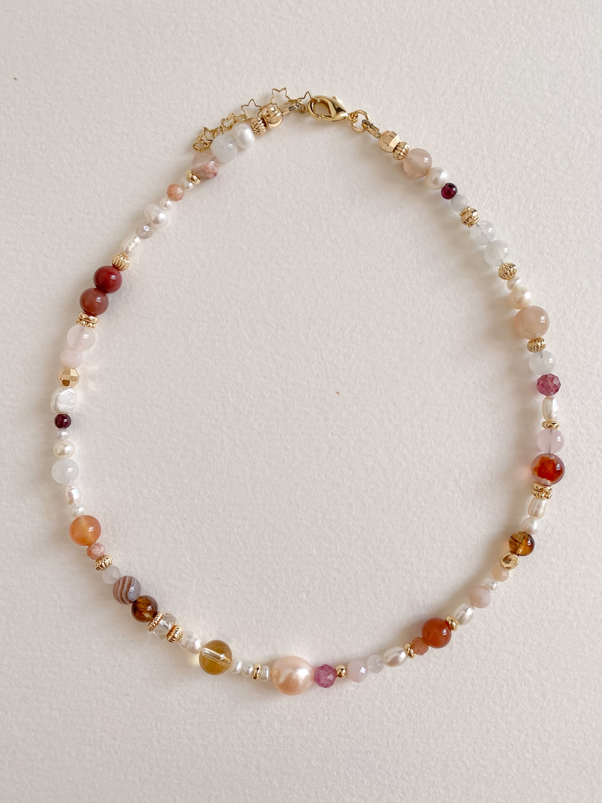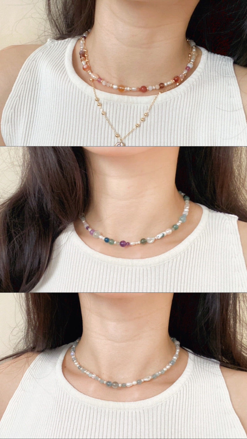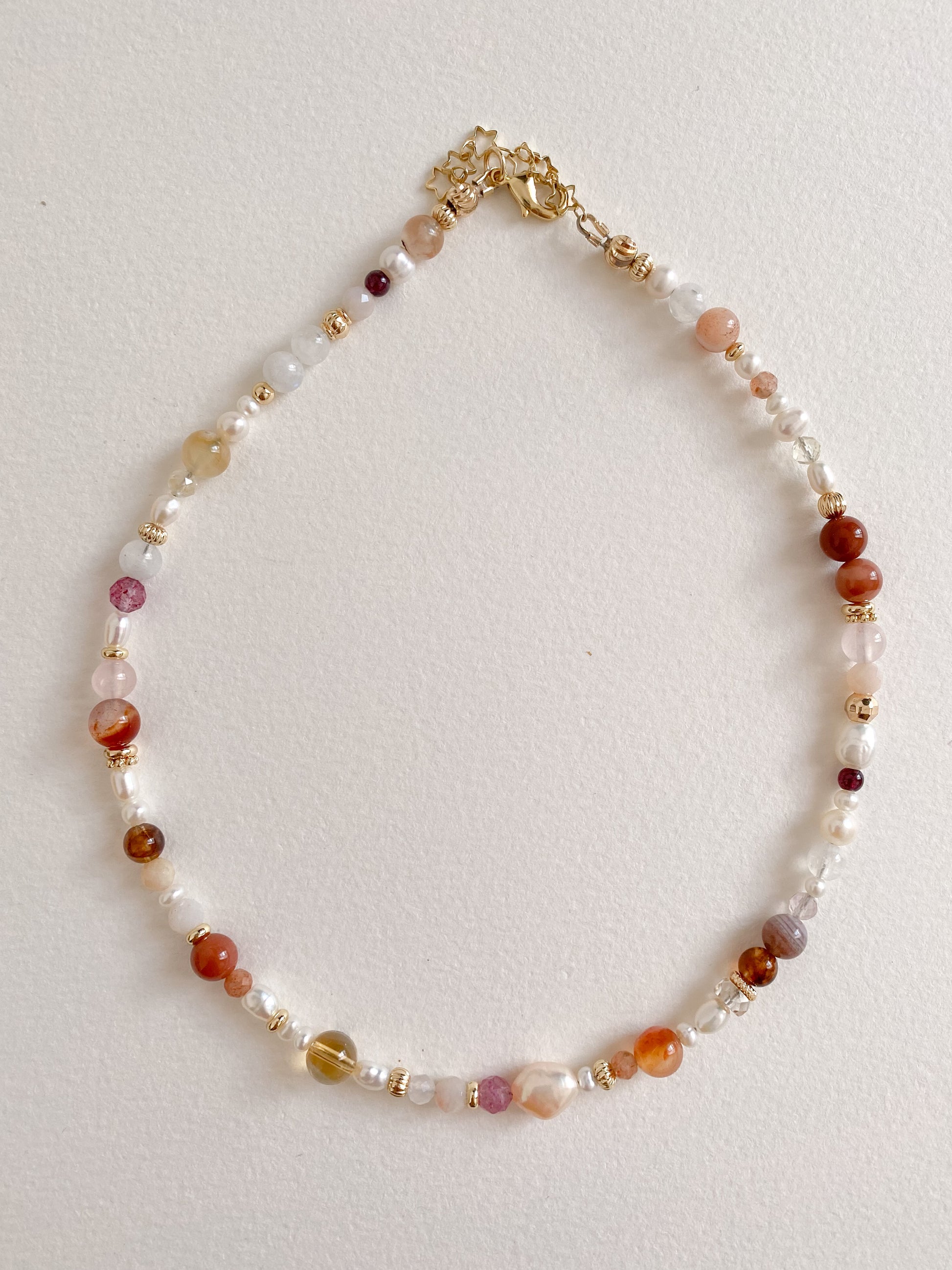 Style A, B: Natural Citrine, Sunstone, Sakura Agate, Alashan Agate, Botswana Agate, Andesine Labradorite, Strawberry Quartz, Rose Quartz and freshwater pearls