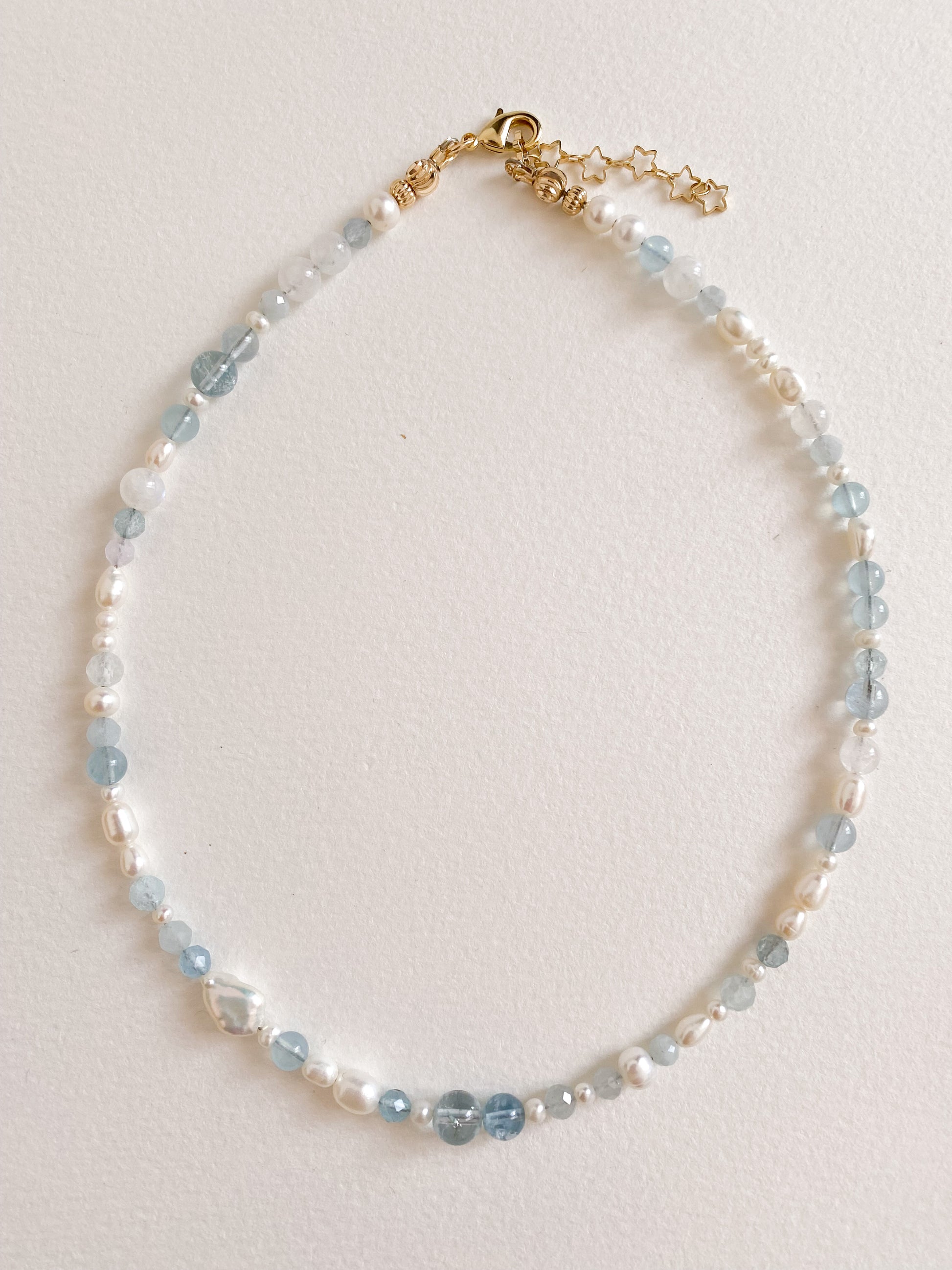 Style C: Natural Aquamarine, Moonstone and freshwater pearls