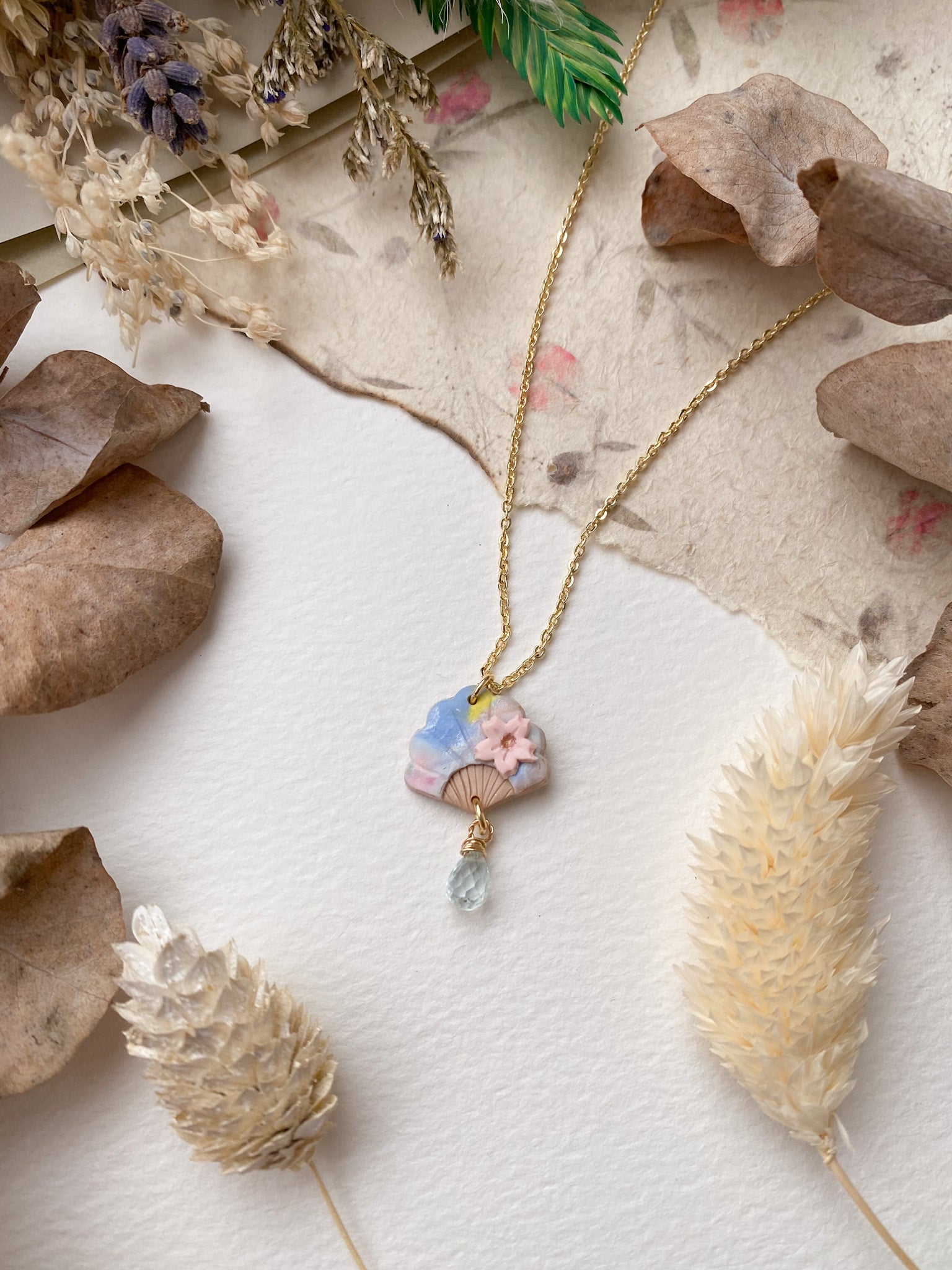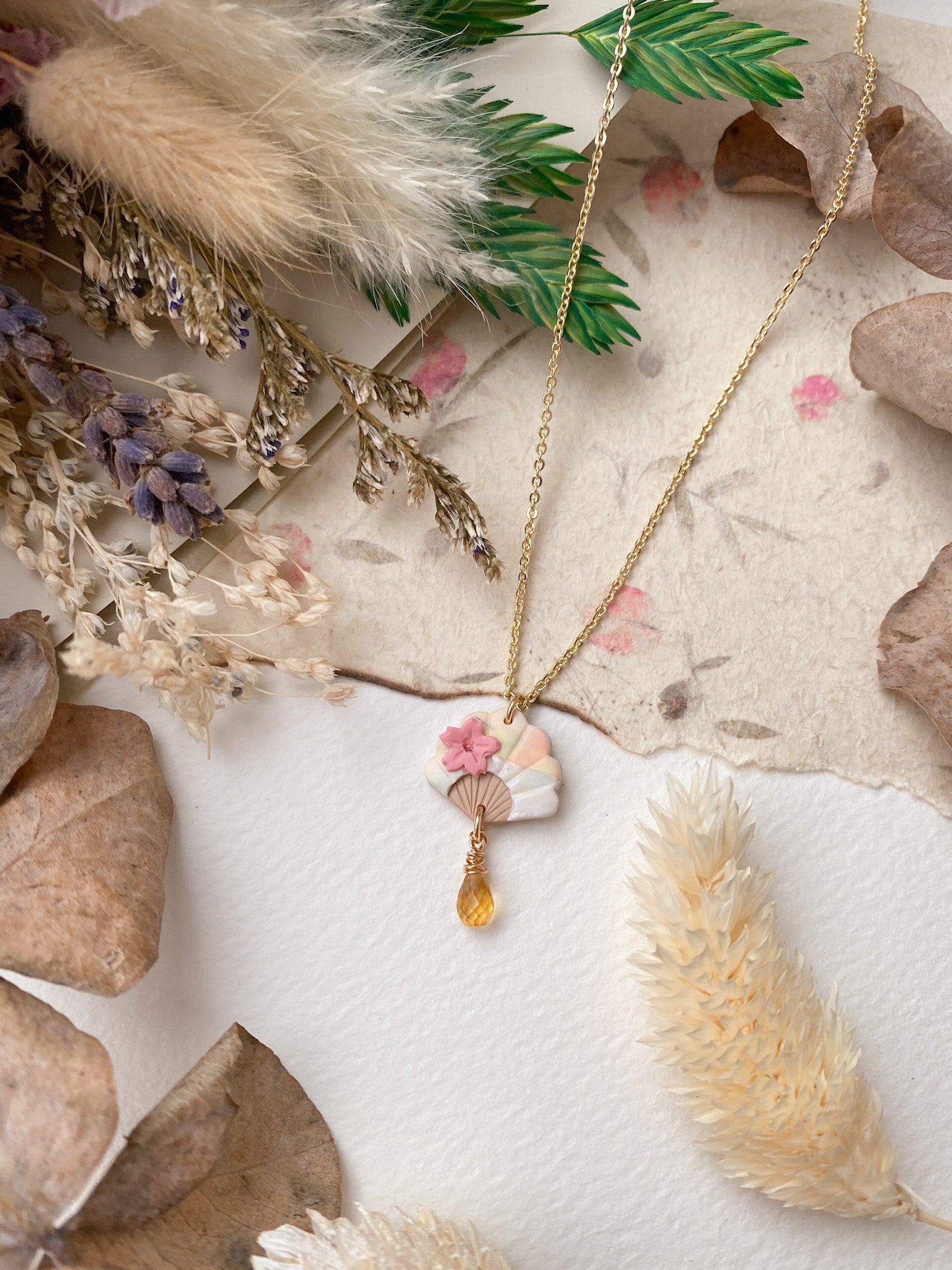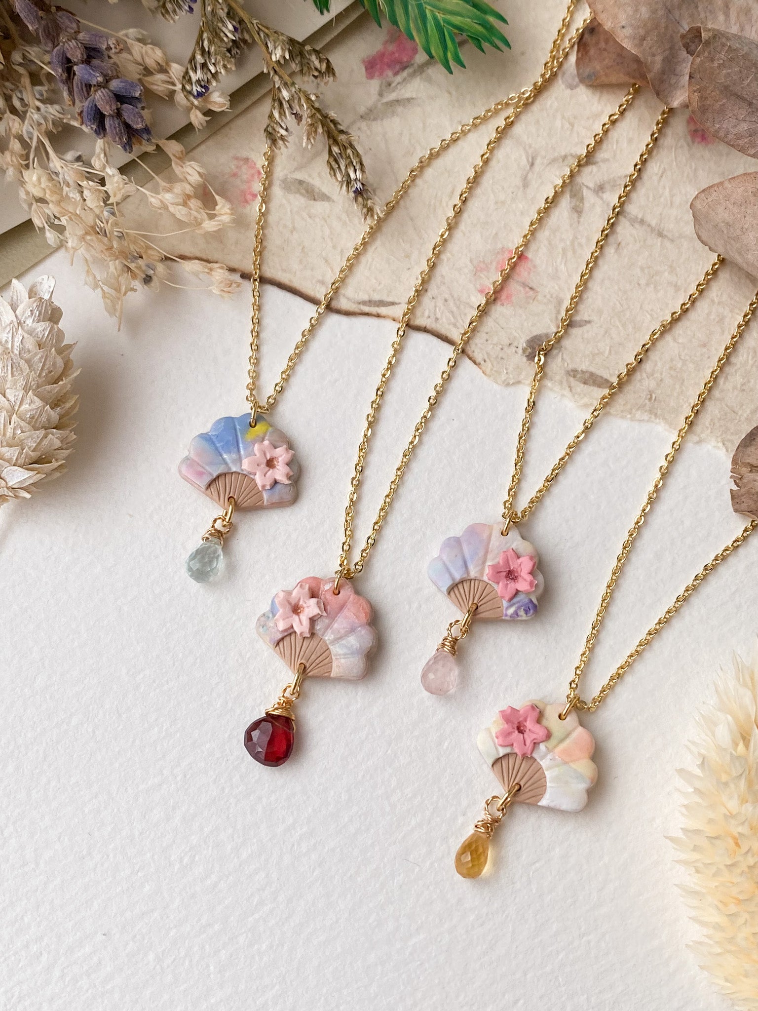⋆ Made from polymer clay, natural gemstone and 14K gold-plated chain