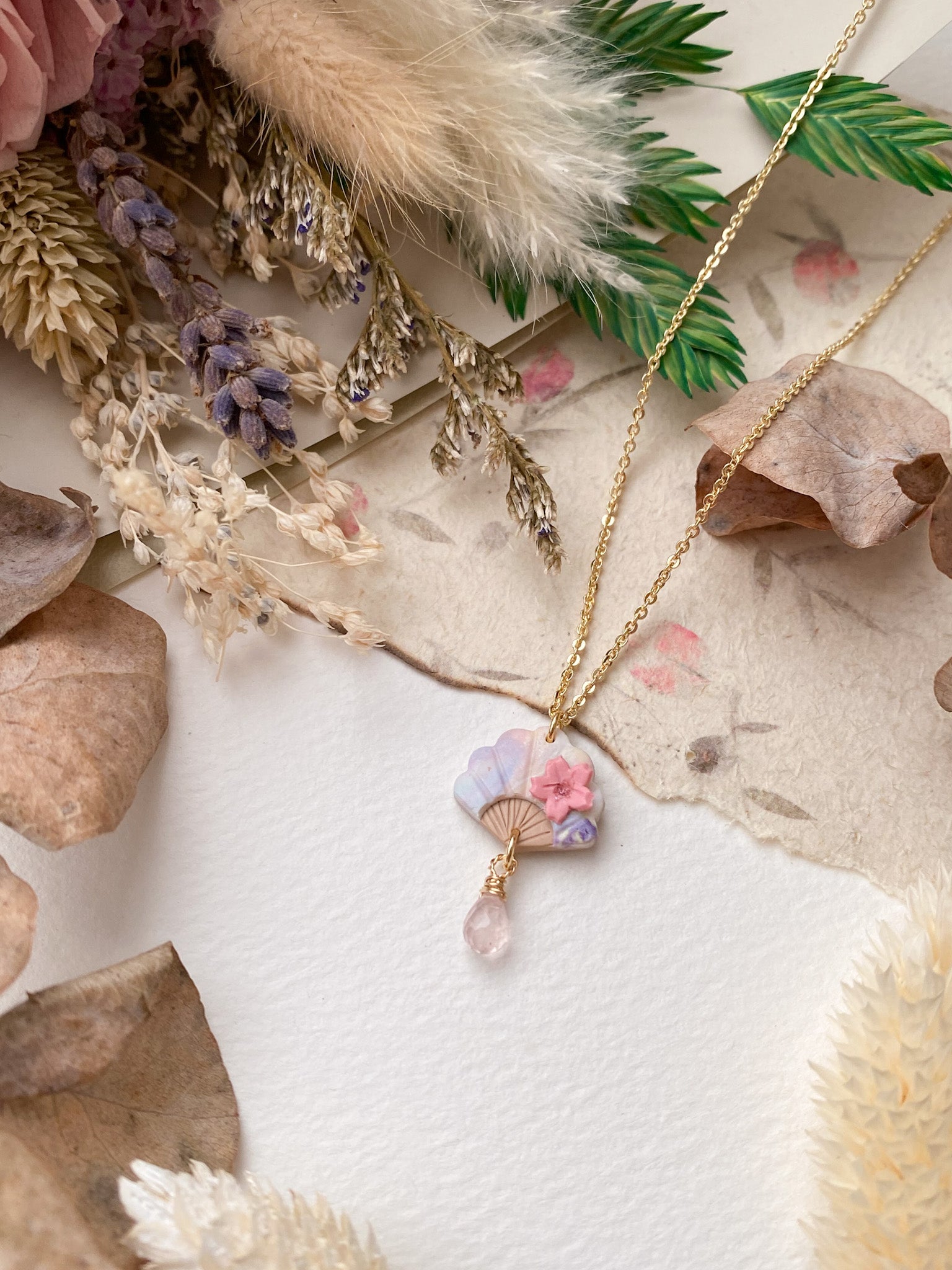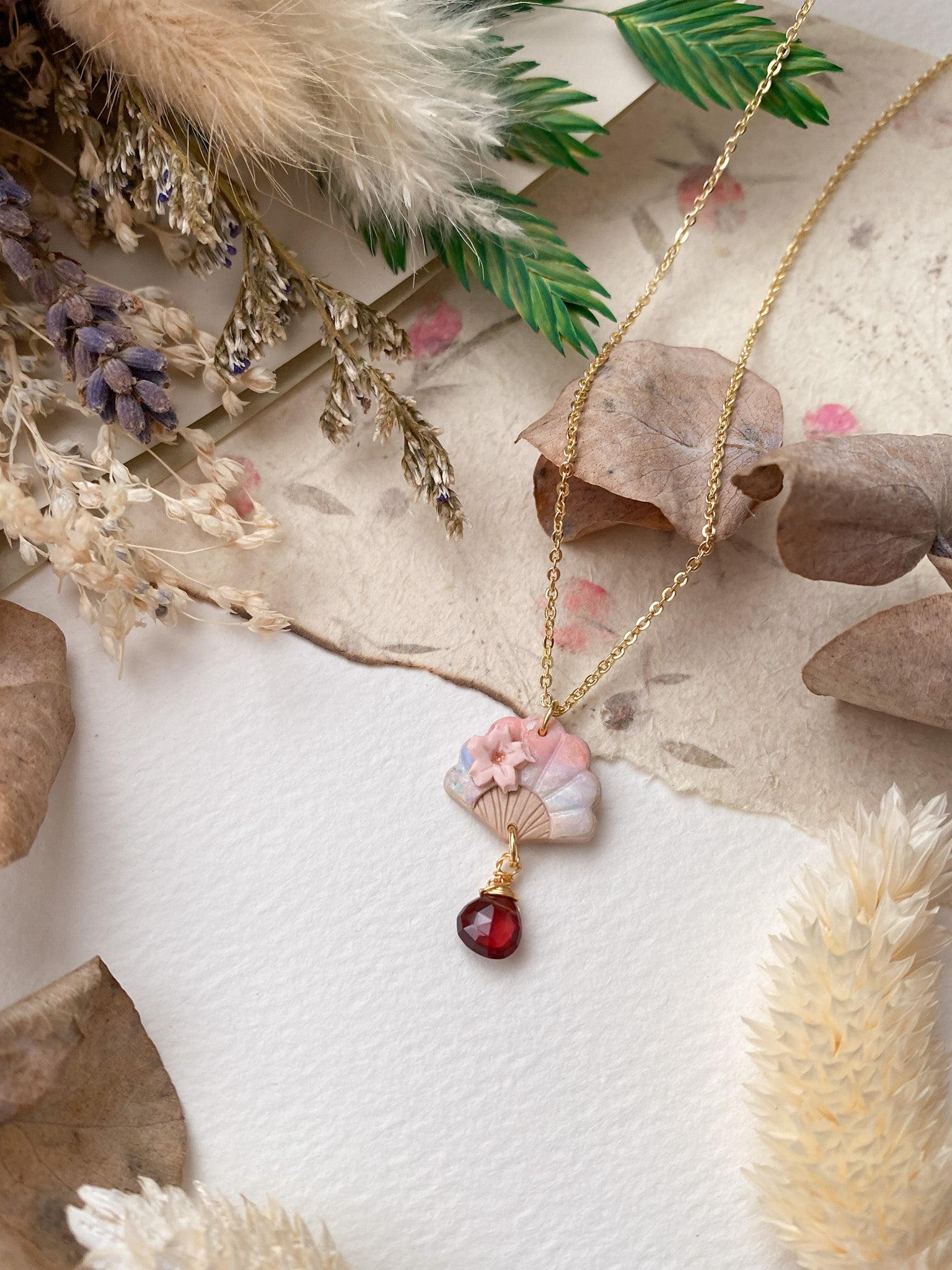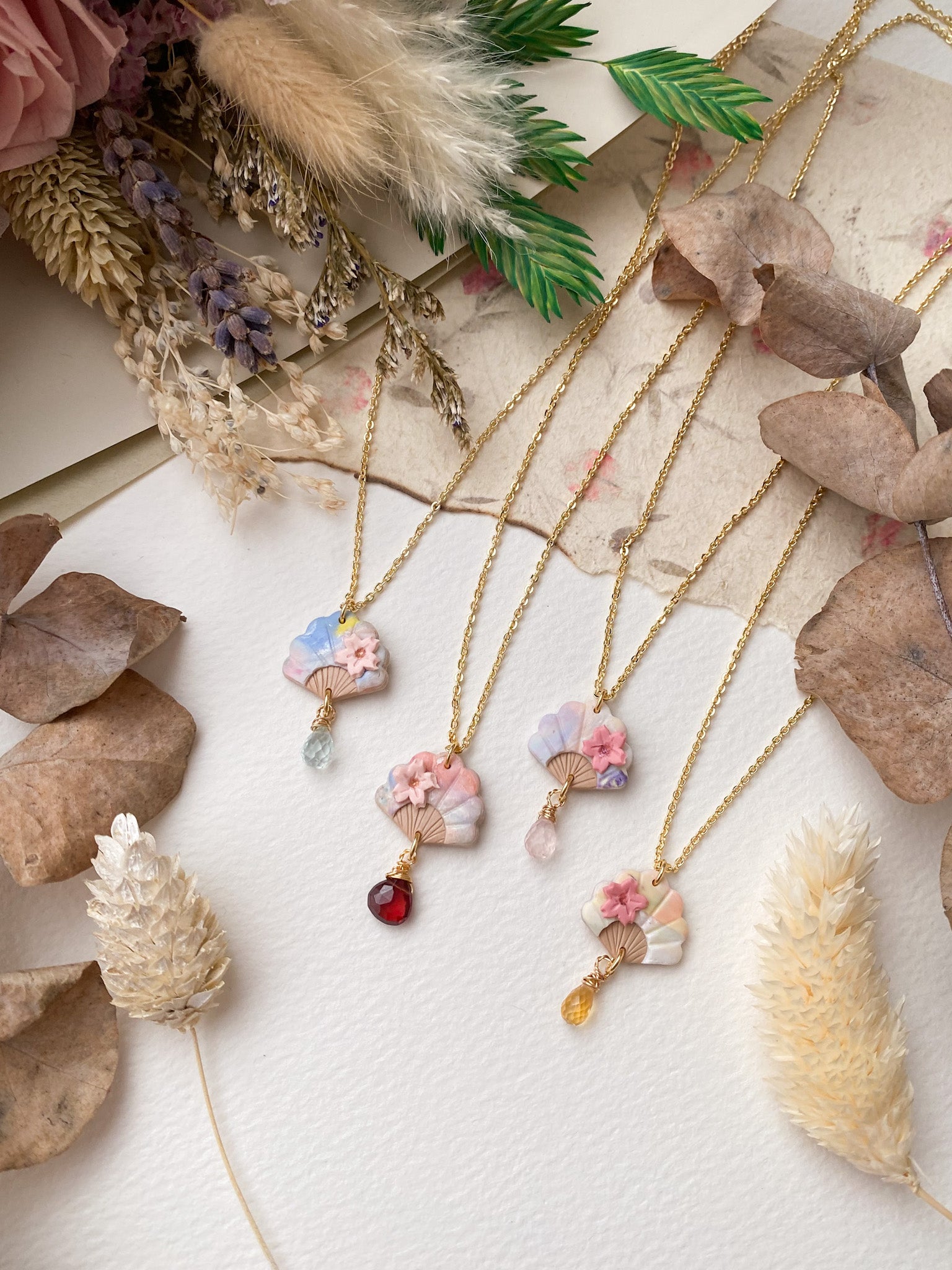 ⋆ Made from polymer clay, natural gemstone and 14K gold-plated chain