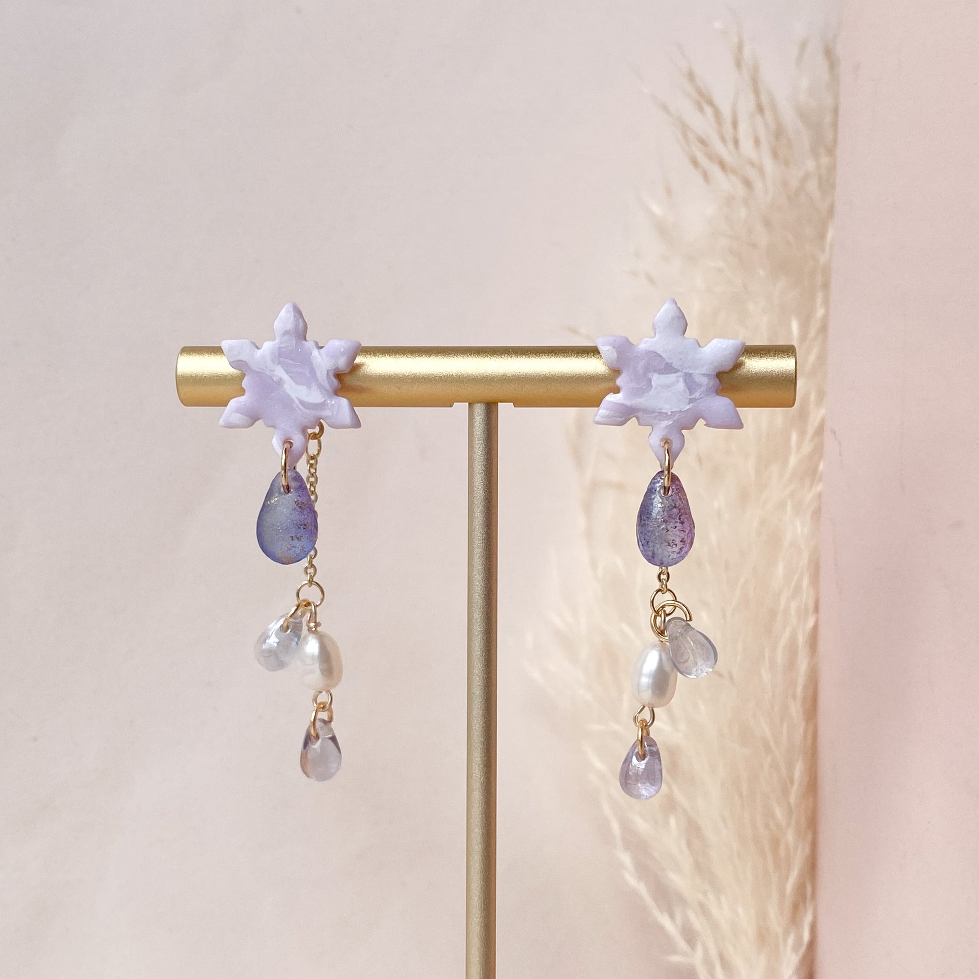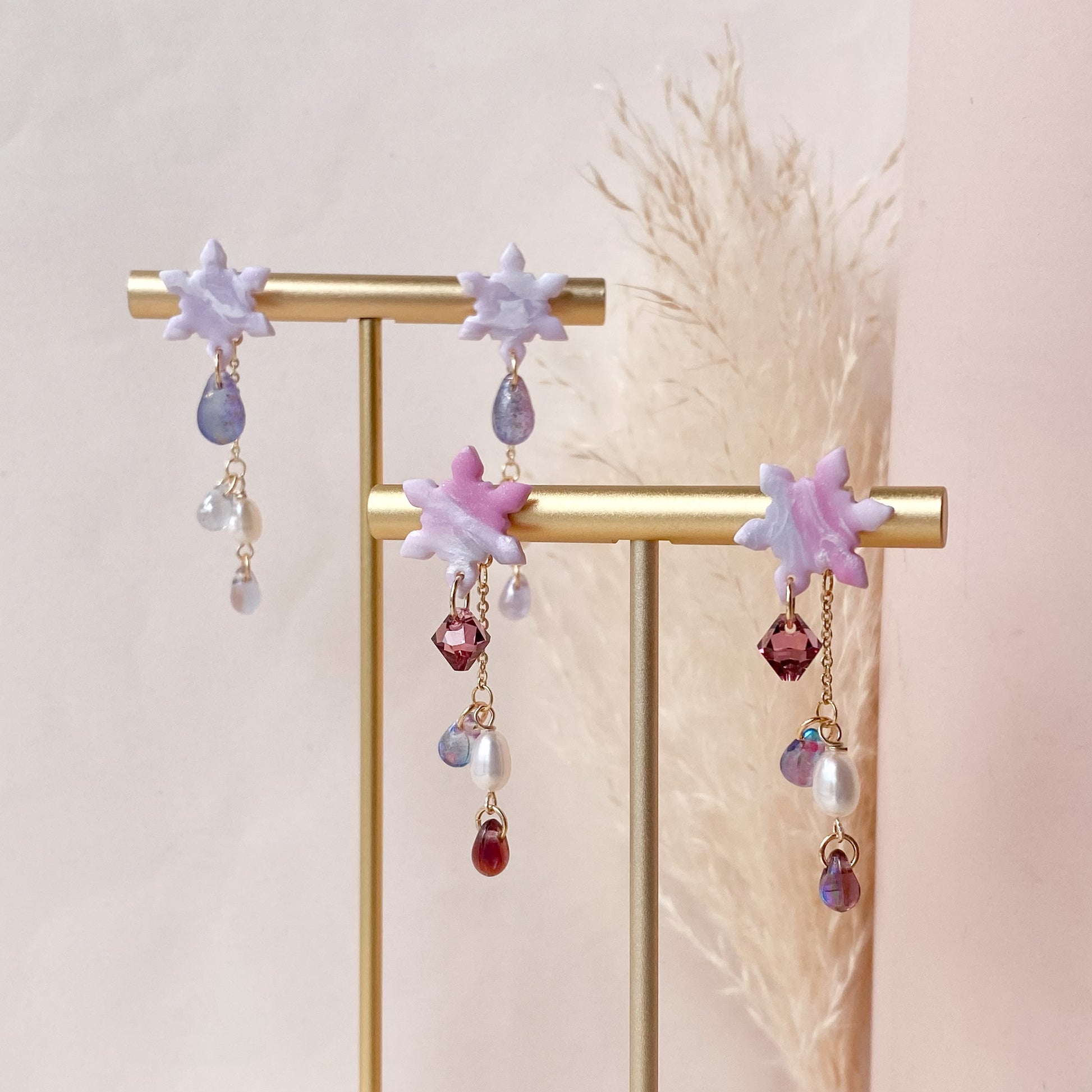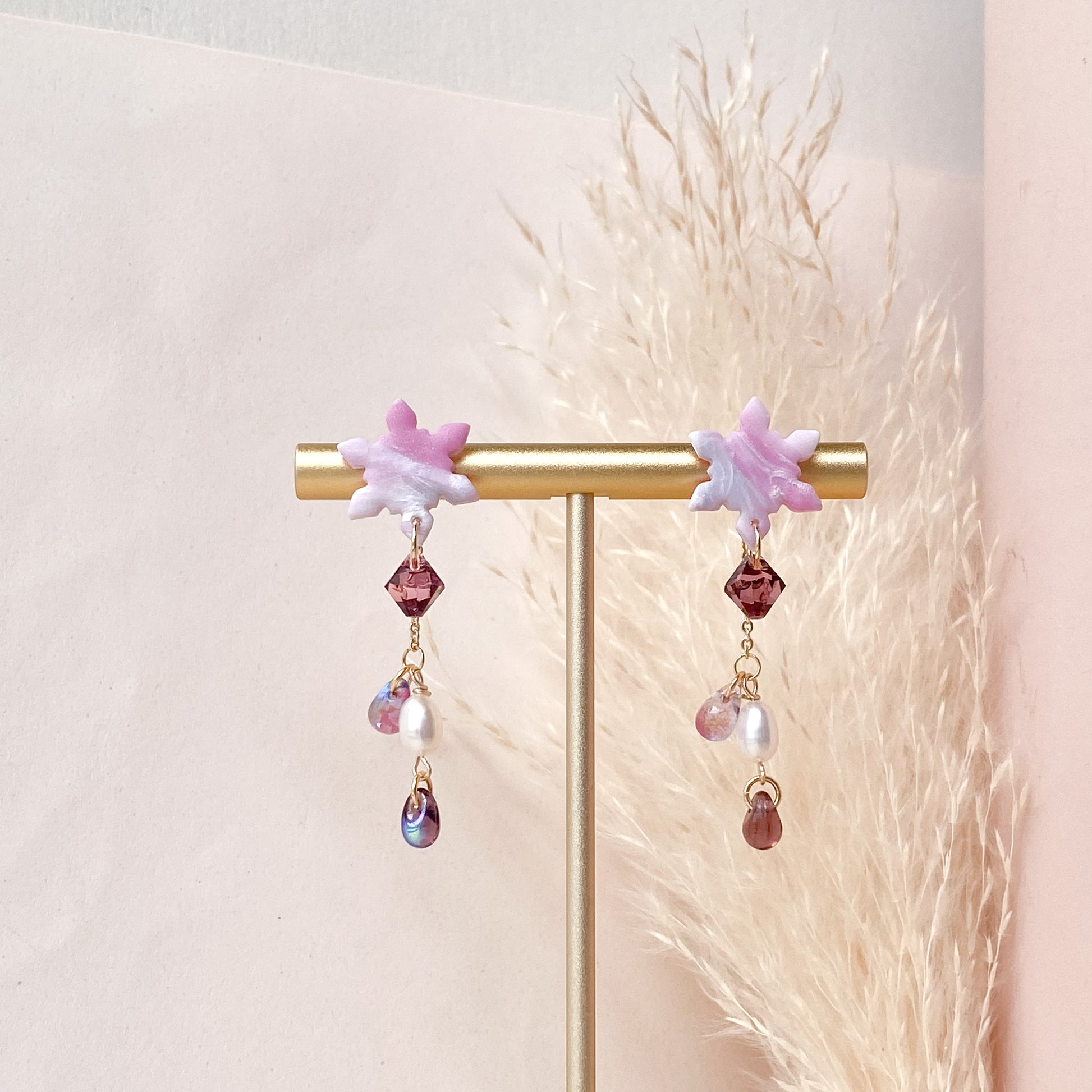 ⋆ Made from polymer clay, Czech beads, freshwater pearls and 14K gold-plated studs