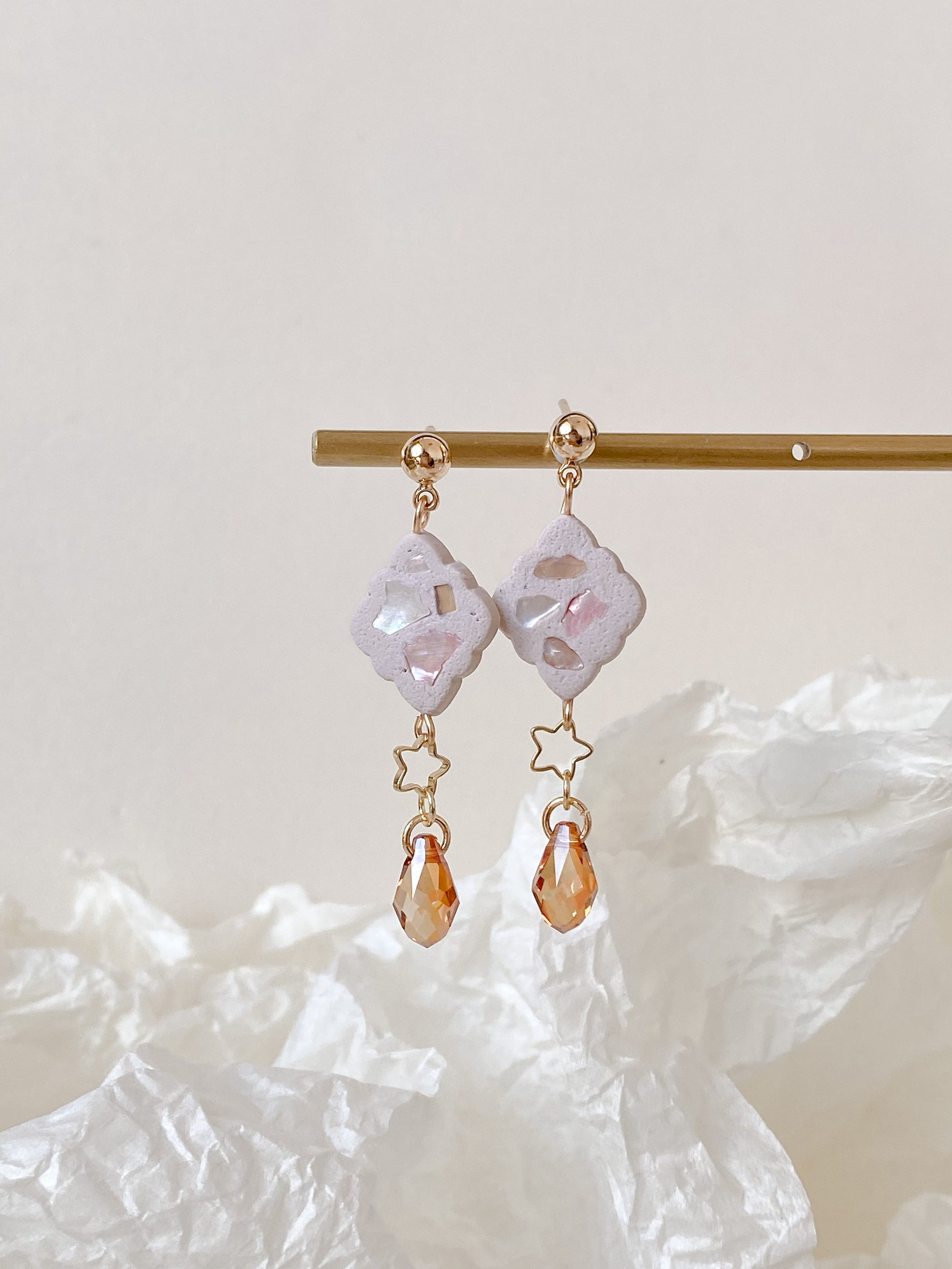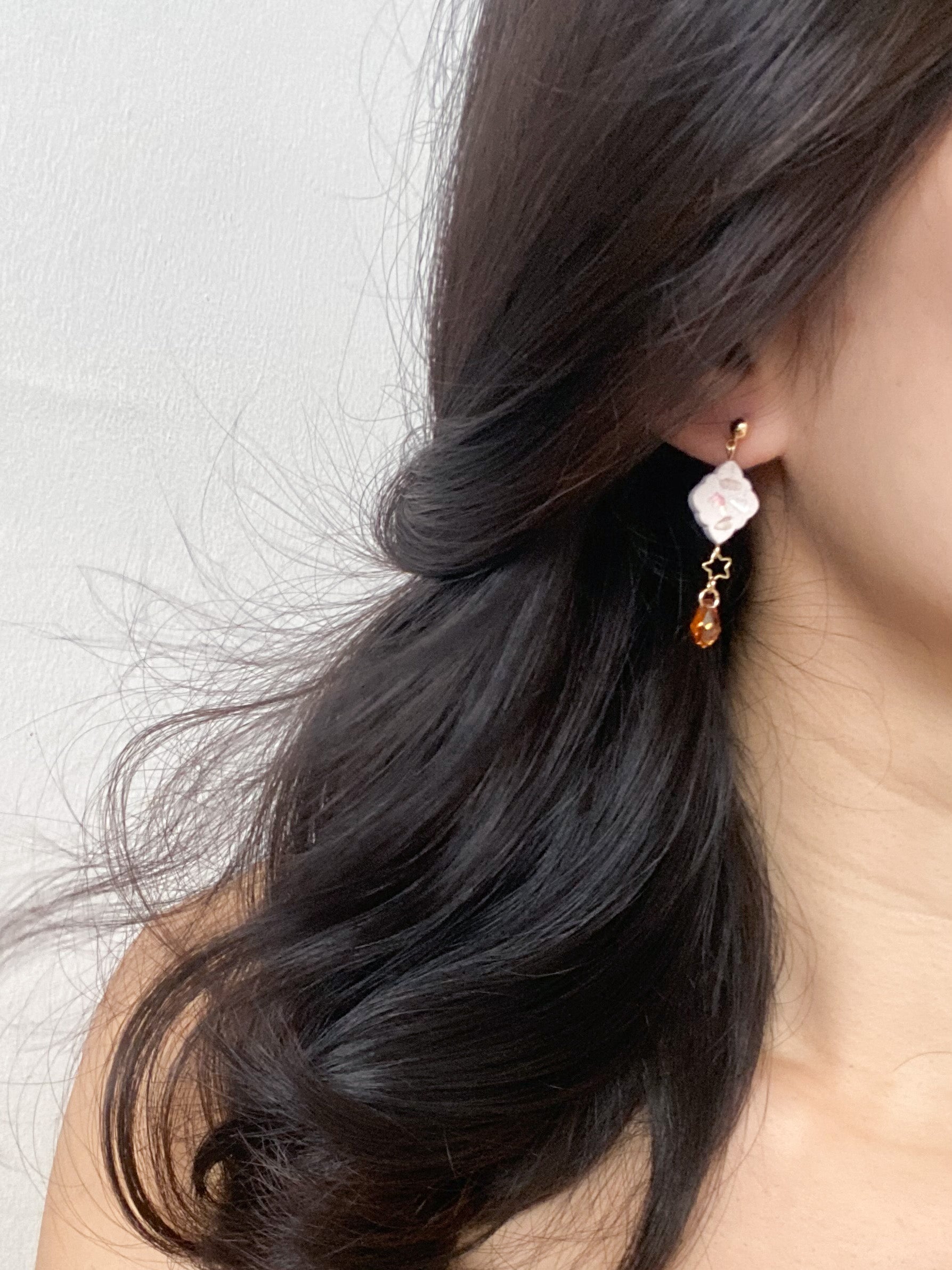 ⋆ Made from polymer clay, natural shells, swarovski'crystals and 14K gold-plated studs
