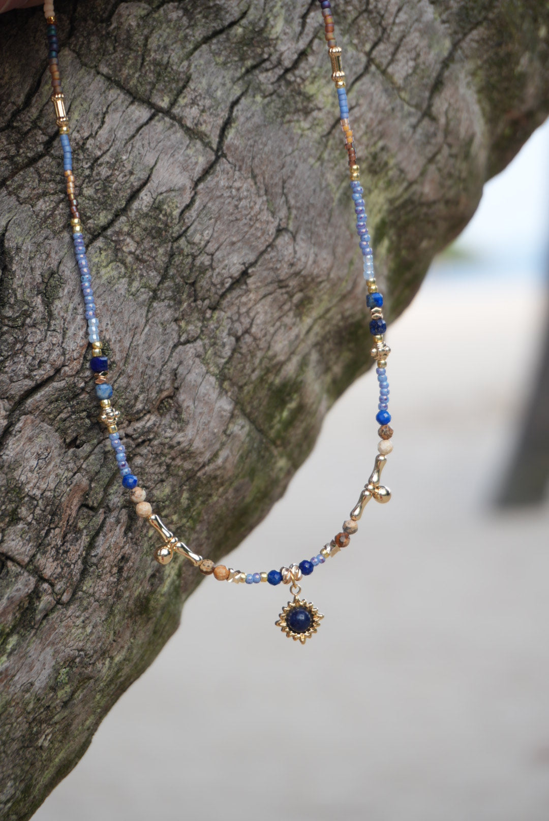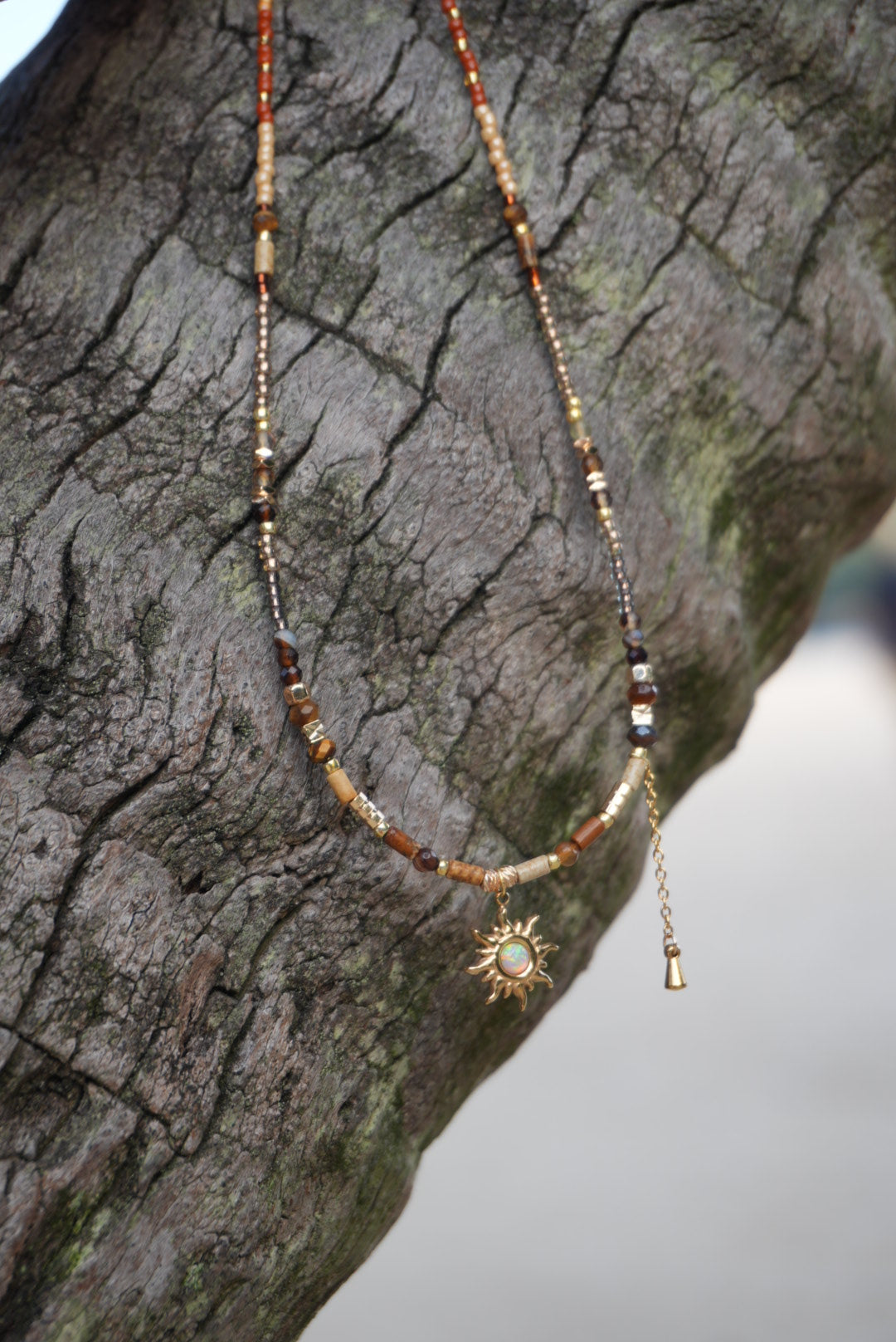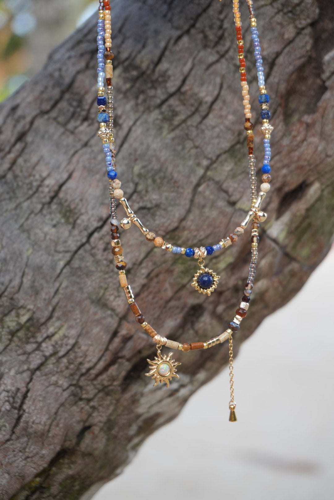 Materials: Natural gemstone, premium Japanese glass beads, and 18k gold-plated/stainless steel pendant and parts.