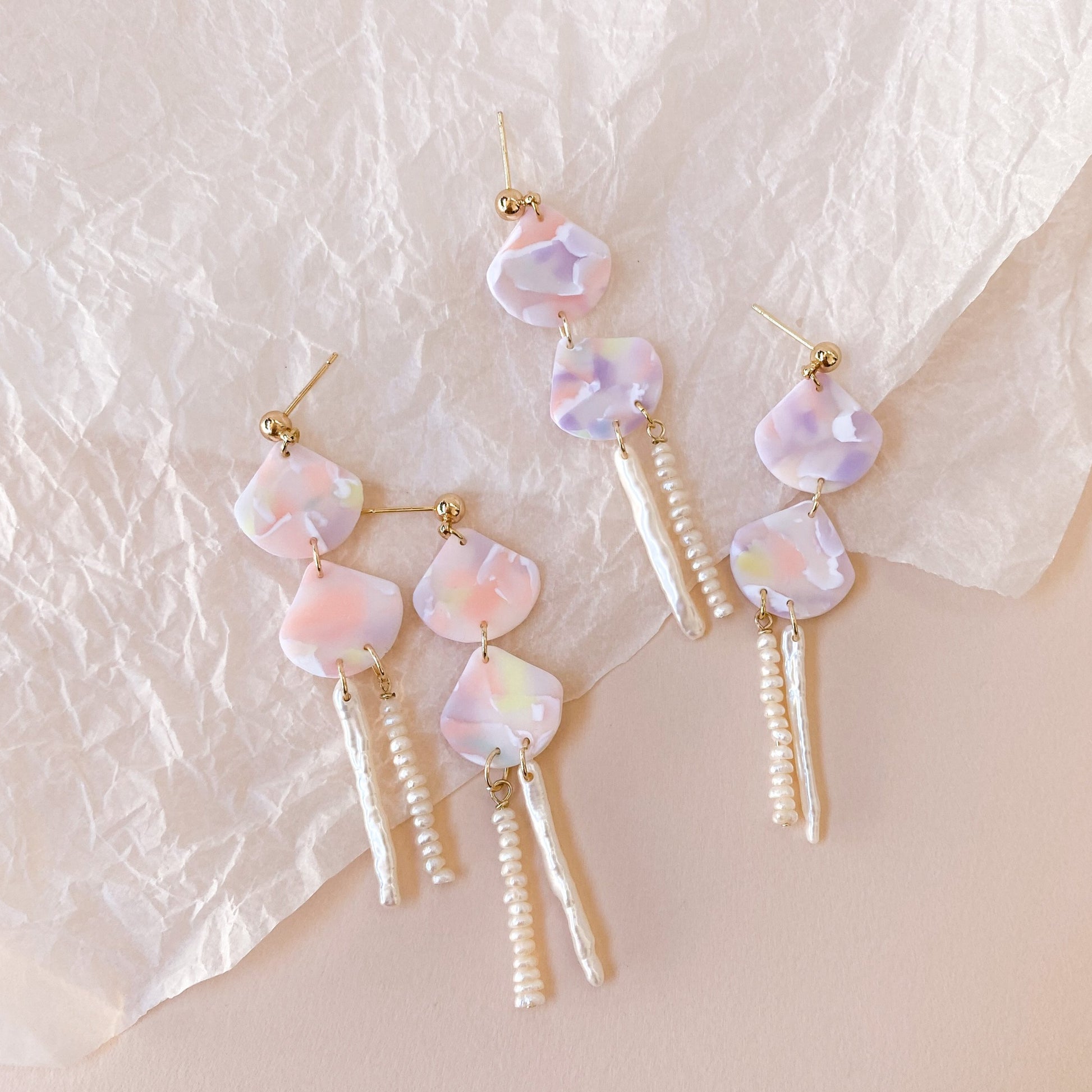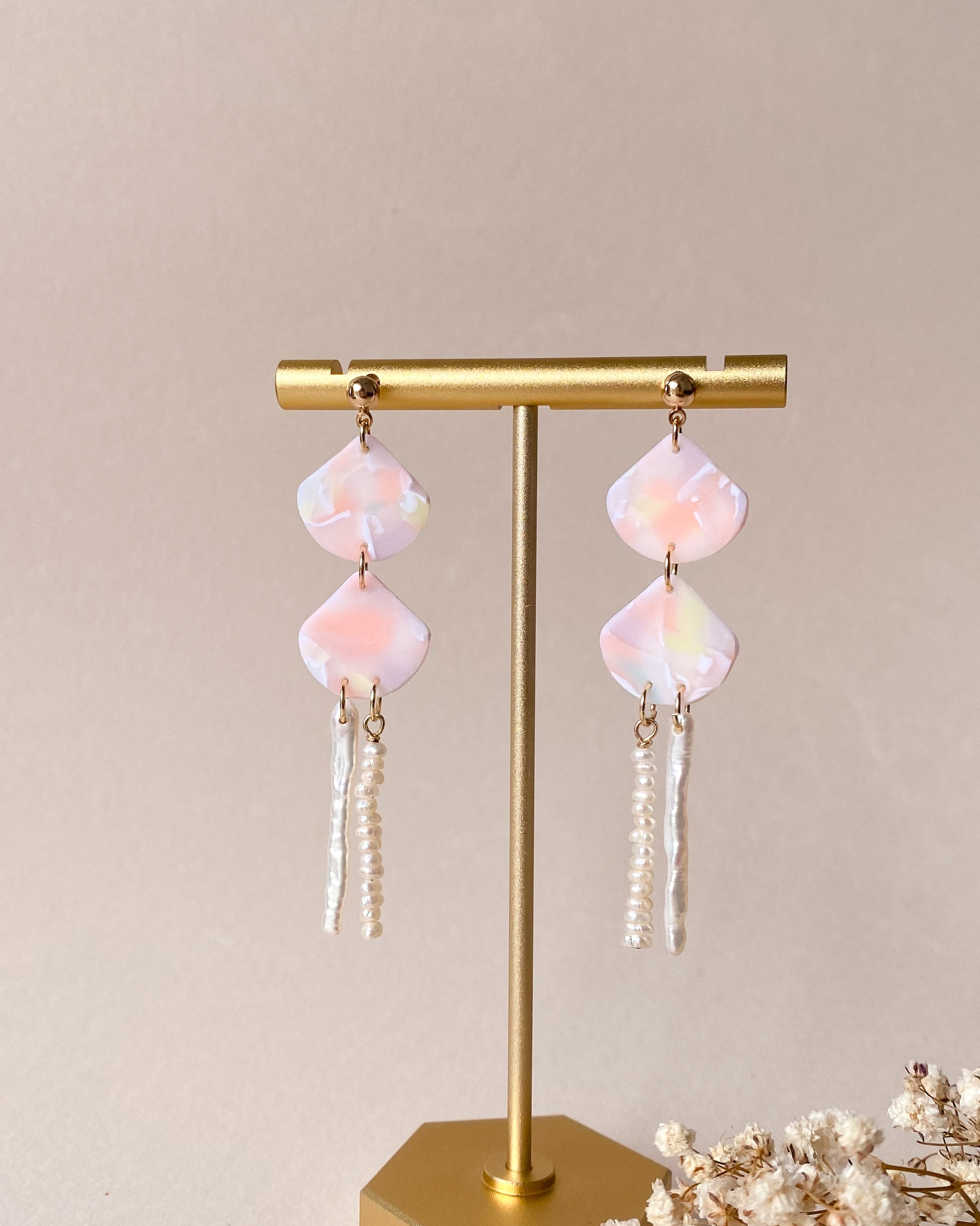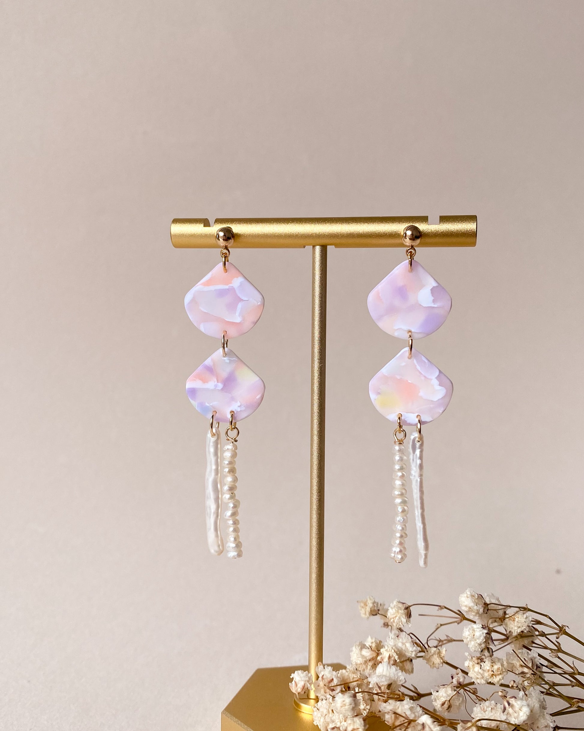 ⋆ Made from polymer clay, genuine freshwater pearls and 14K gold plated ball studs