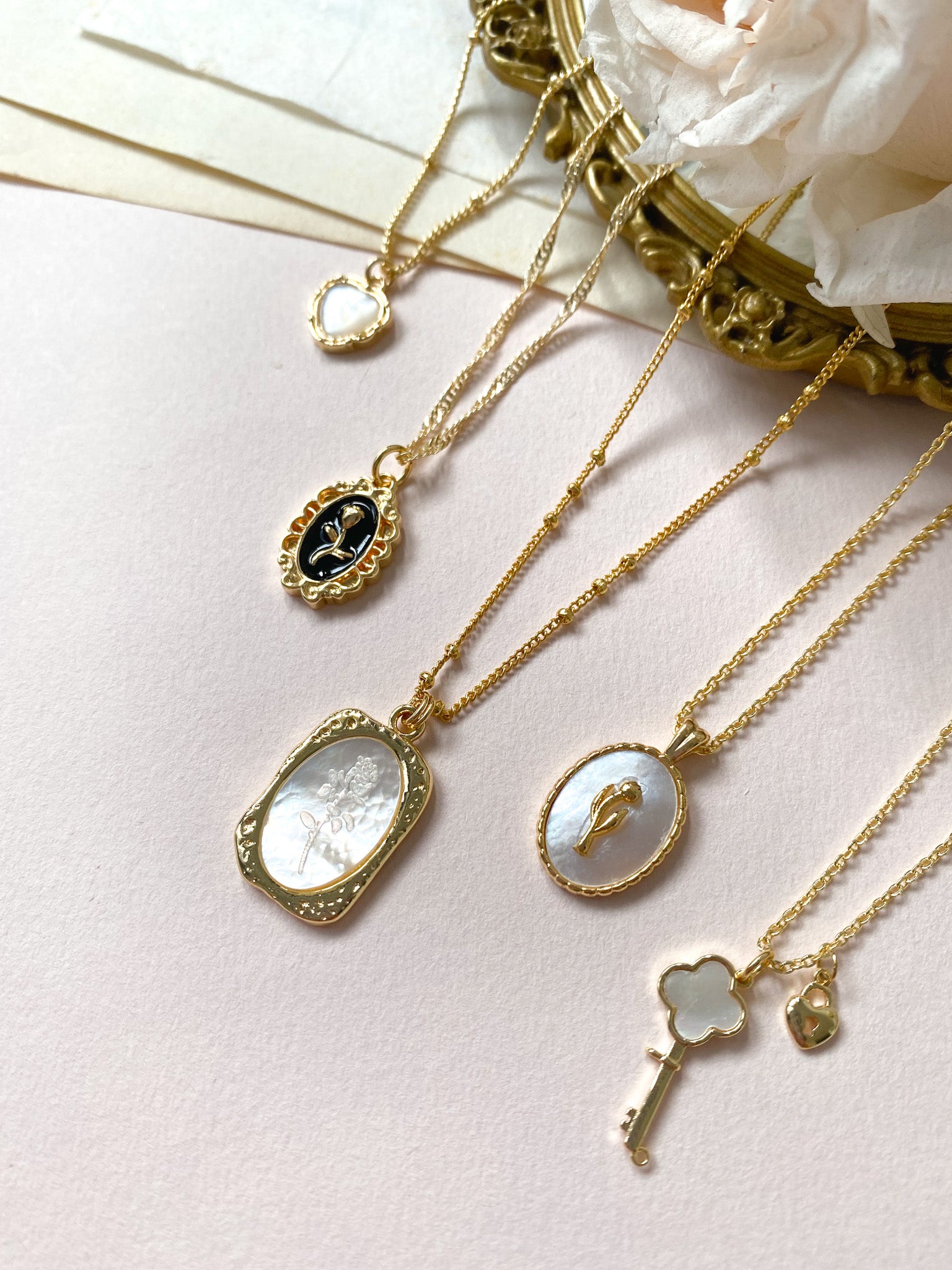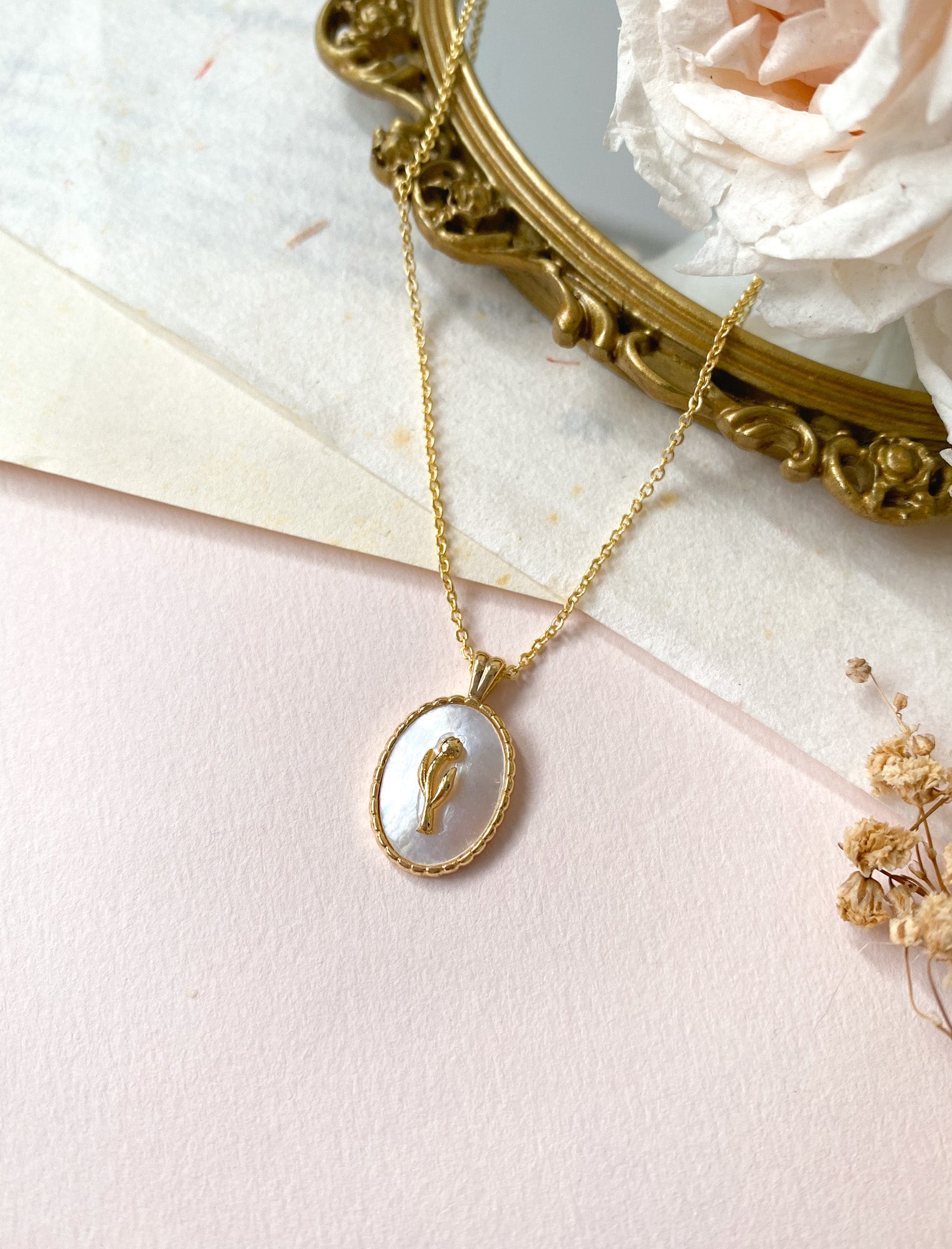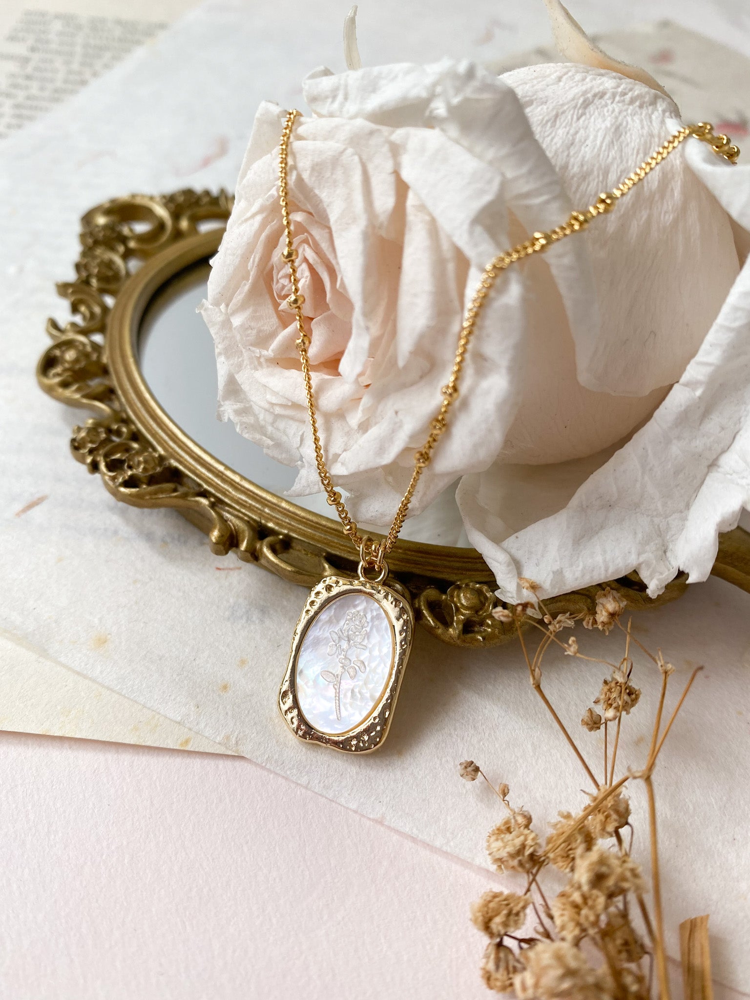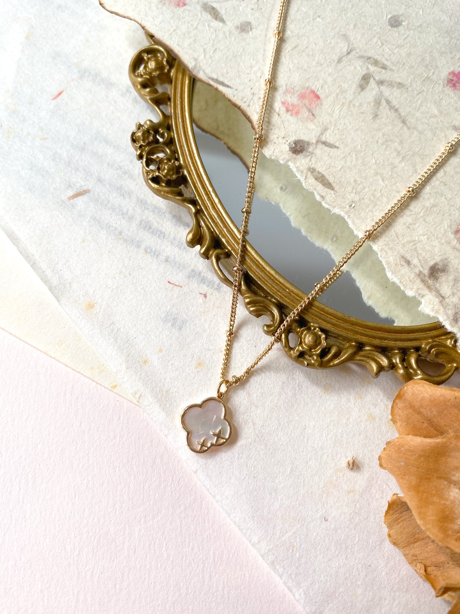 ⋆ Mother of pearl charm / 14K gold plated charm and chain