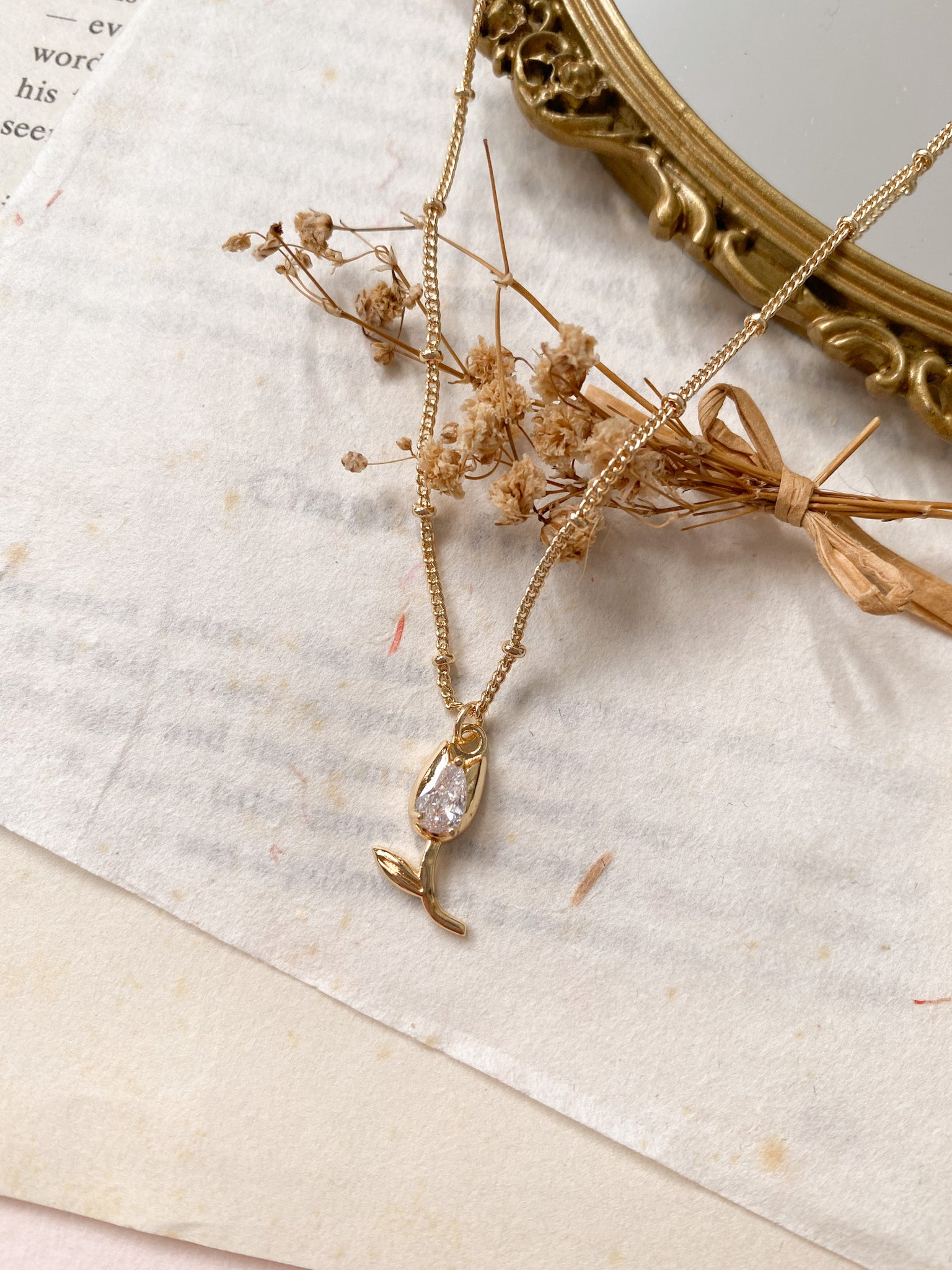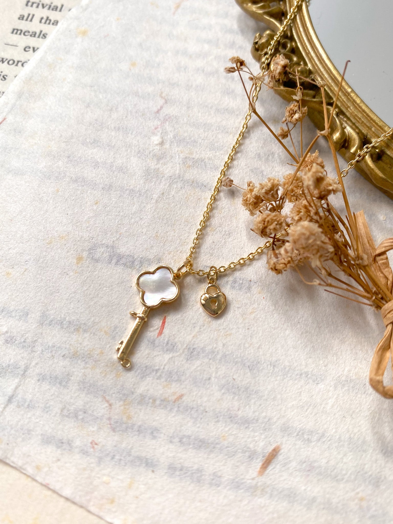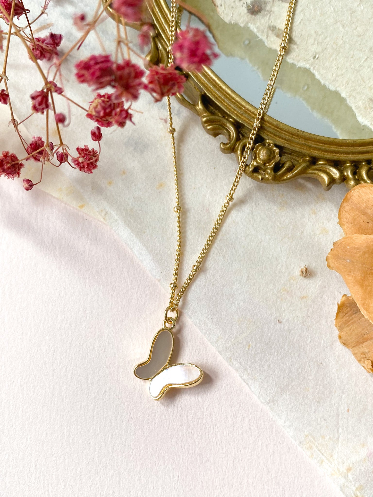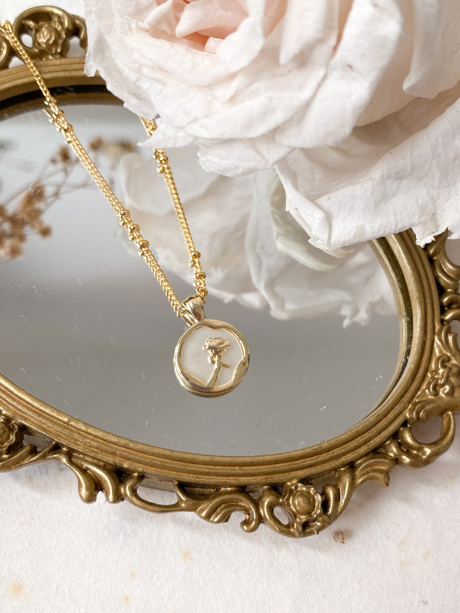 ⋆ Mother of pearl charm / 14K gold plated charm and chain