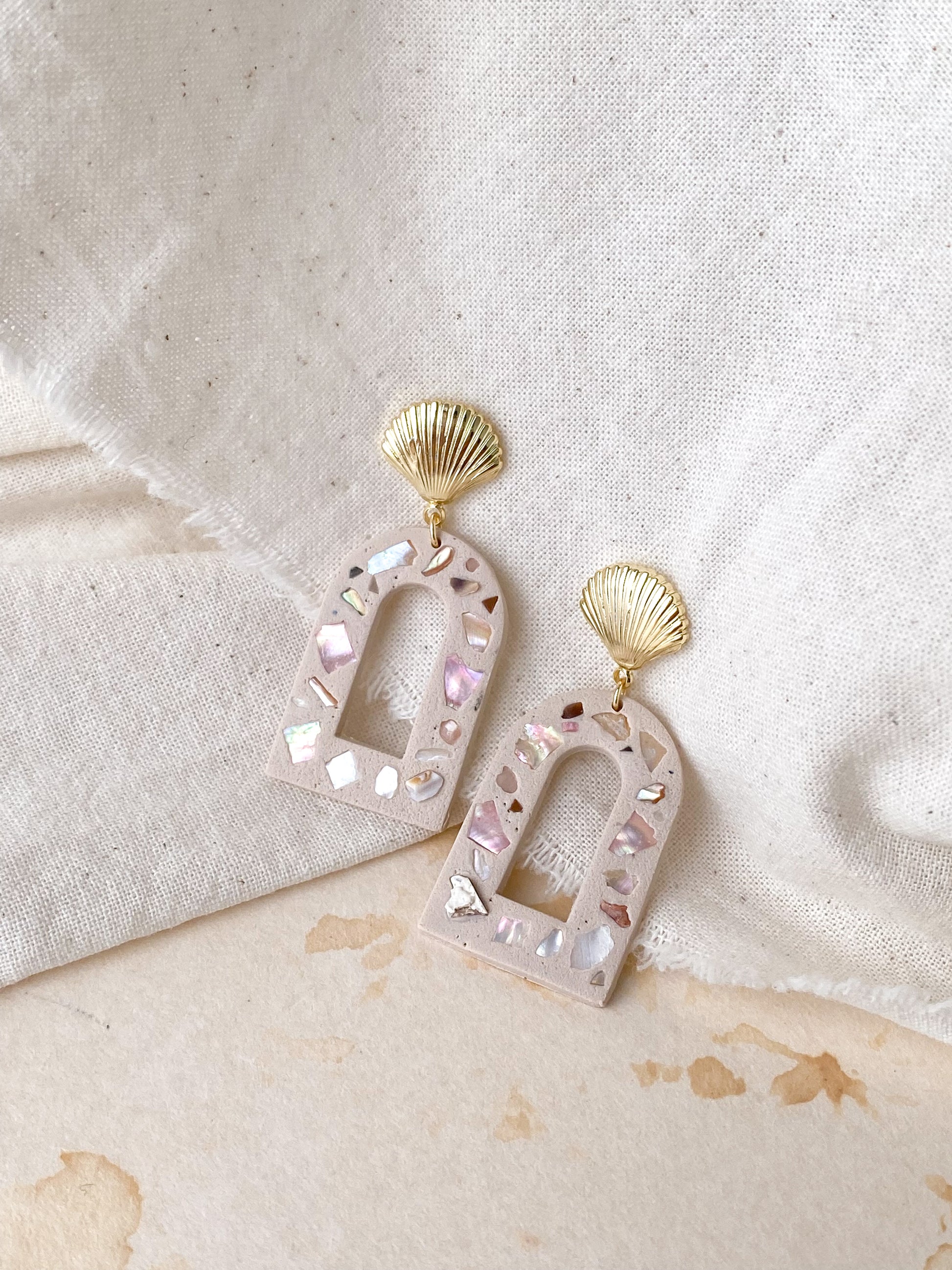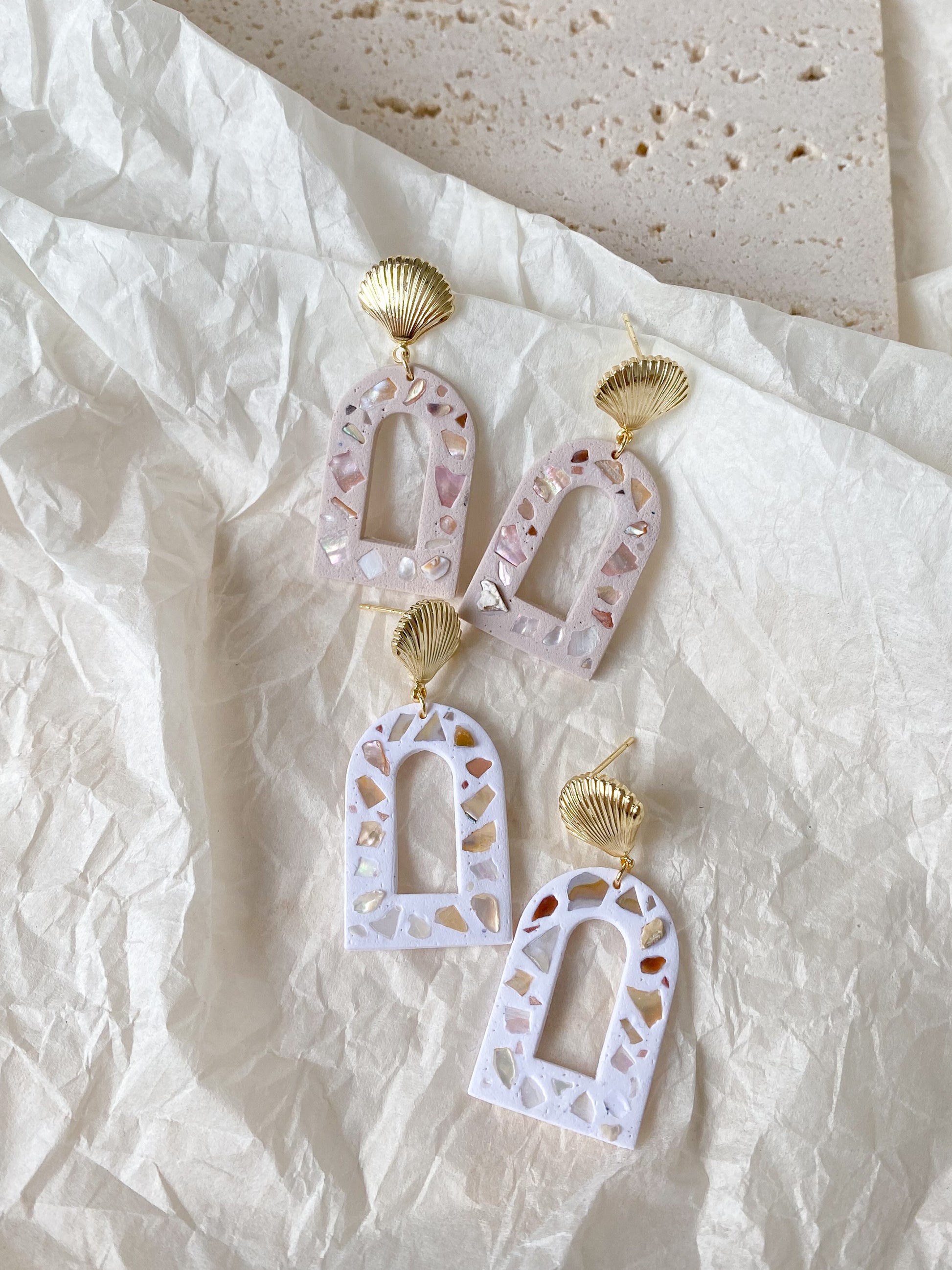 ⋆ Made from polymer clay, natural shells and 14K gold-plated over 925 sterling silver studs