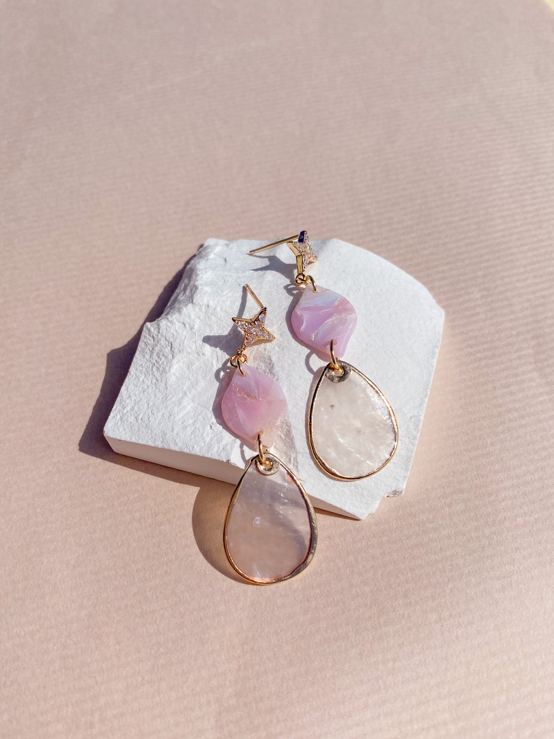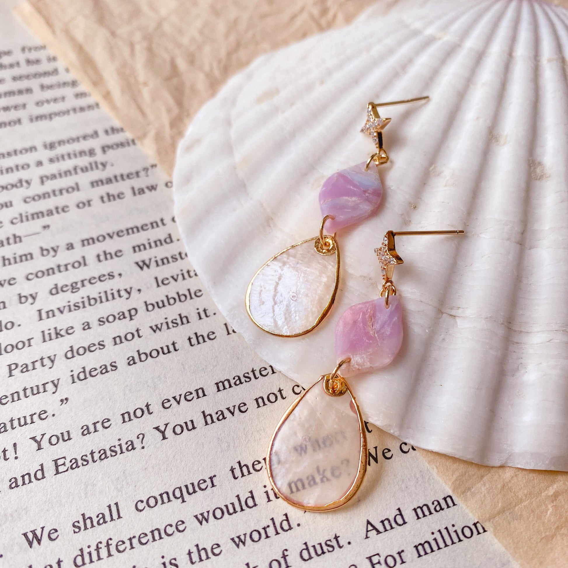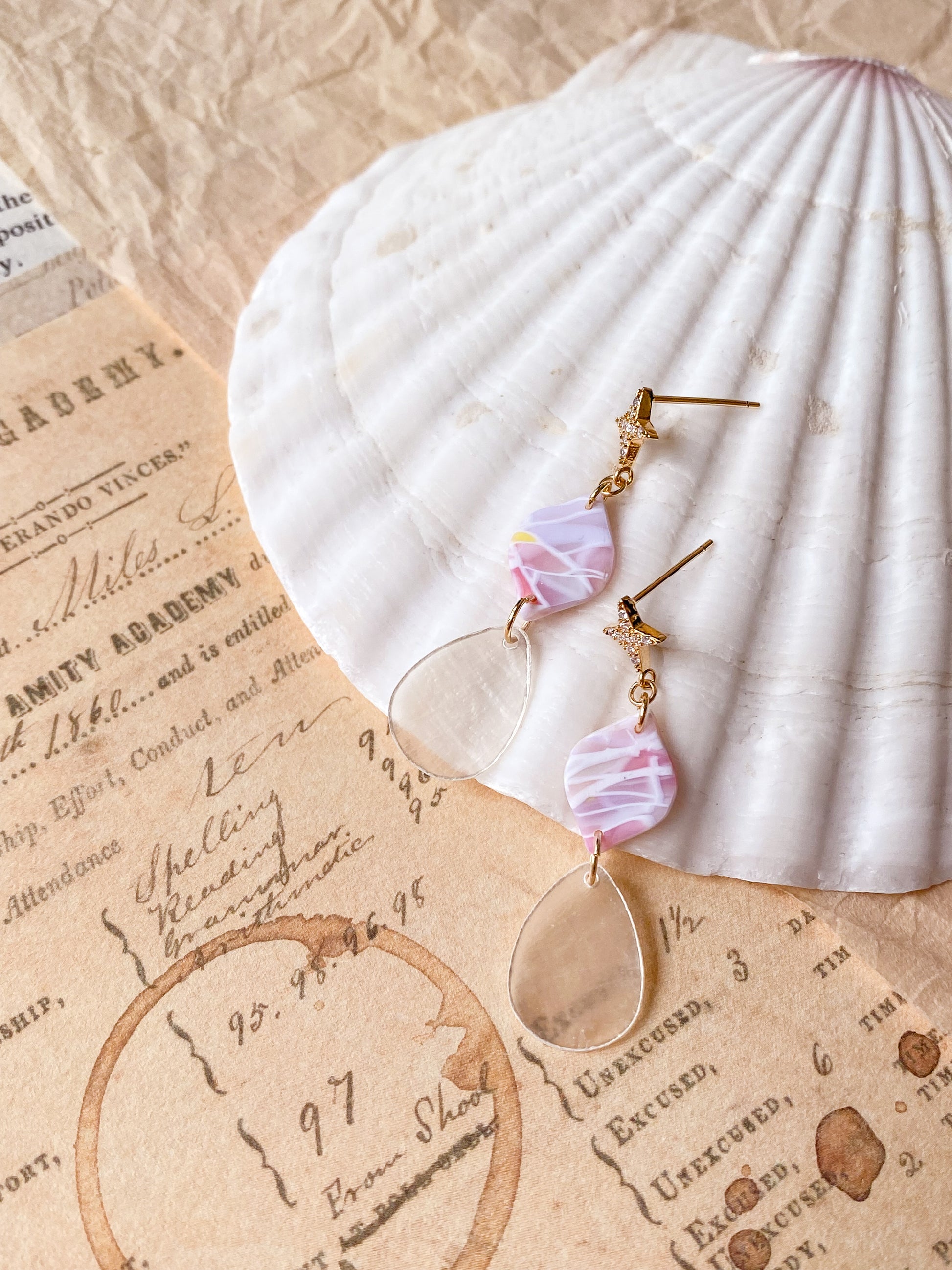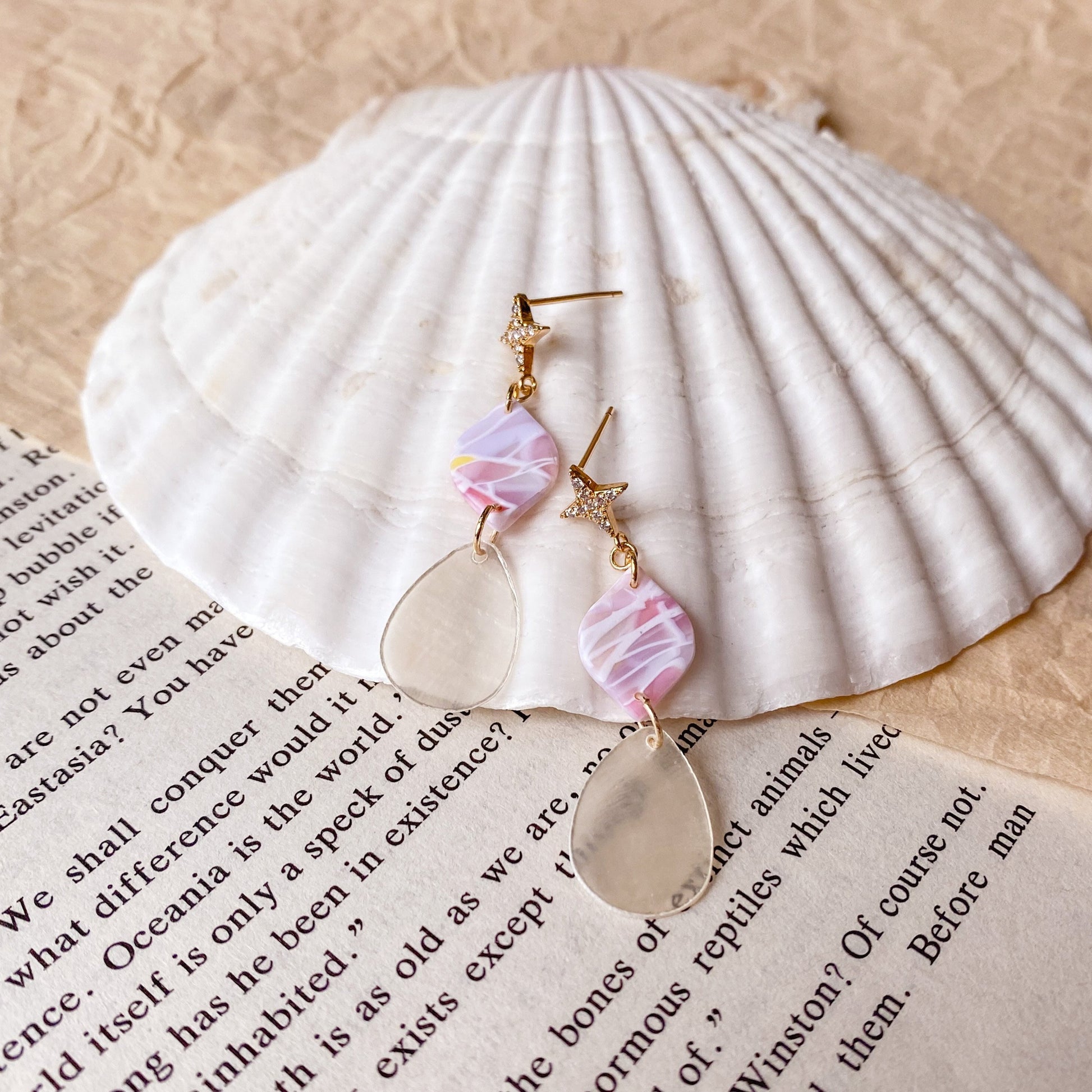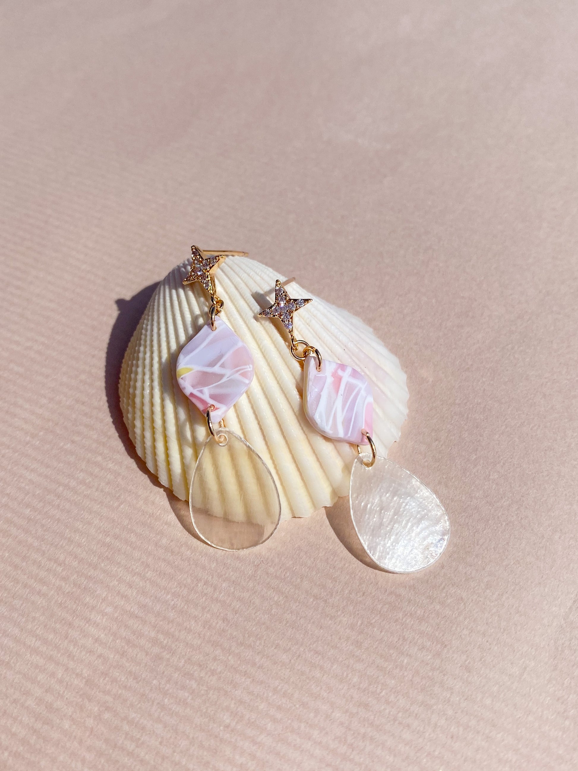 ⋆ Made from polymer clay, natural shell pendant and 14K gold-plated over 925 sterling silver studs